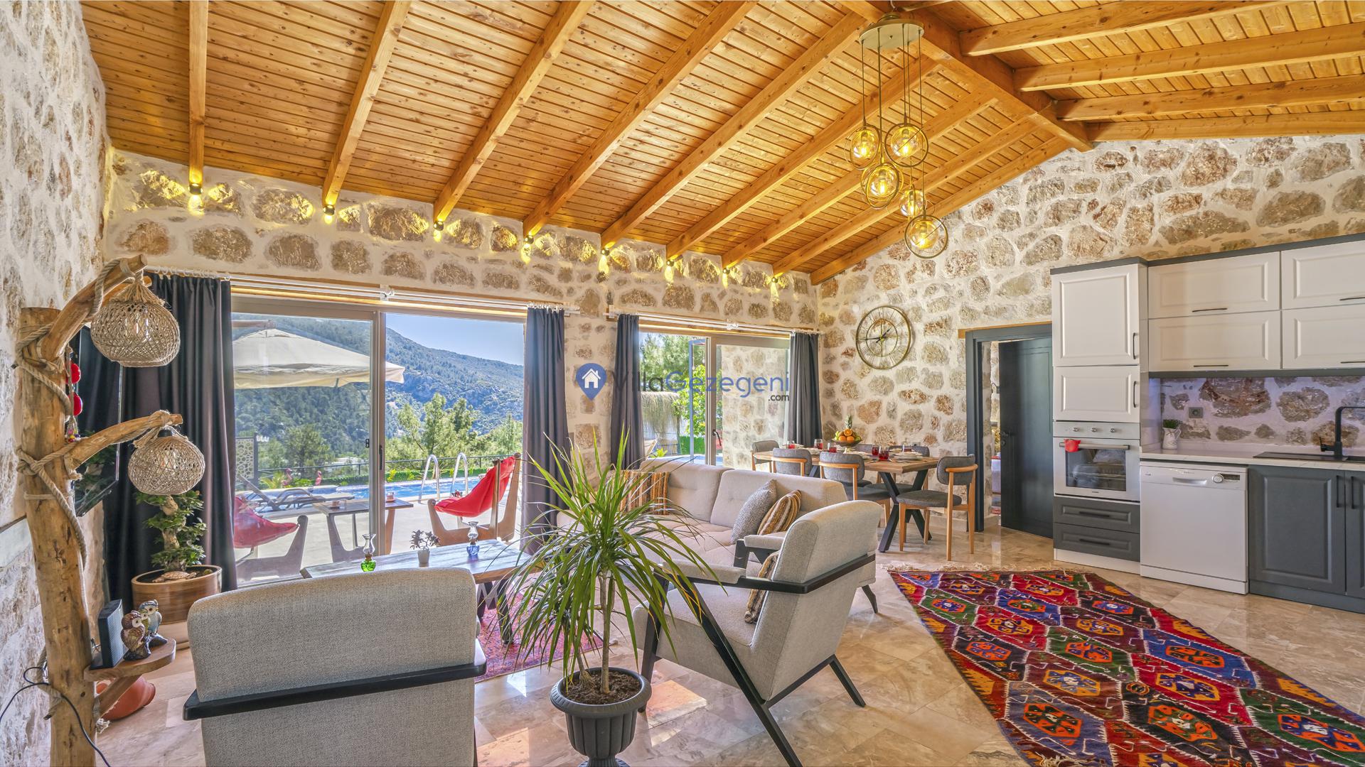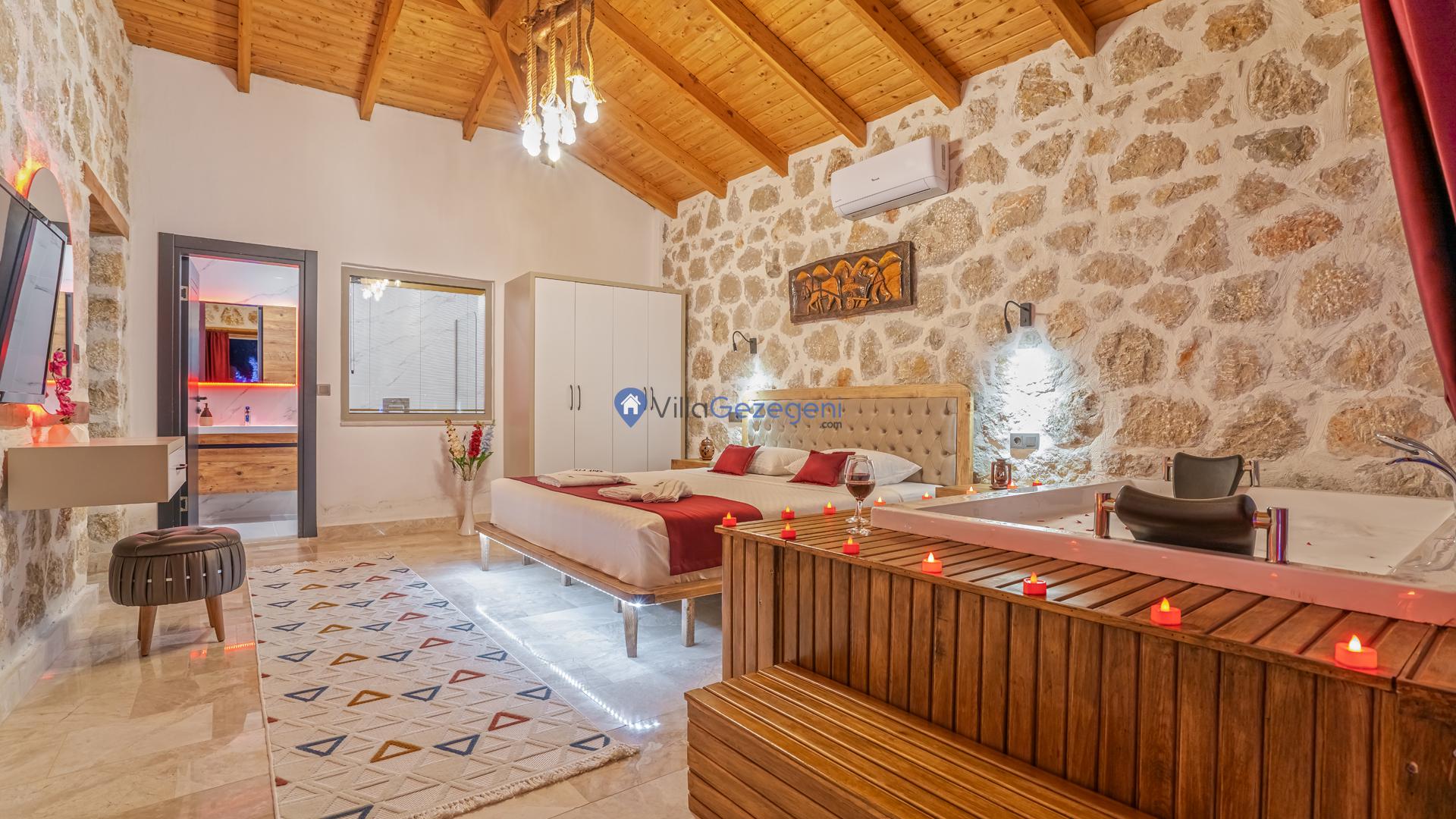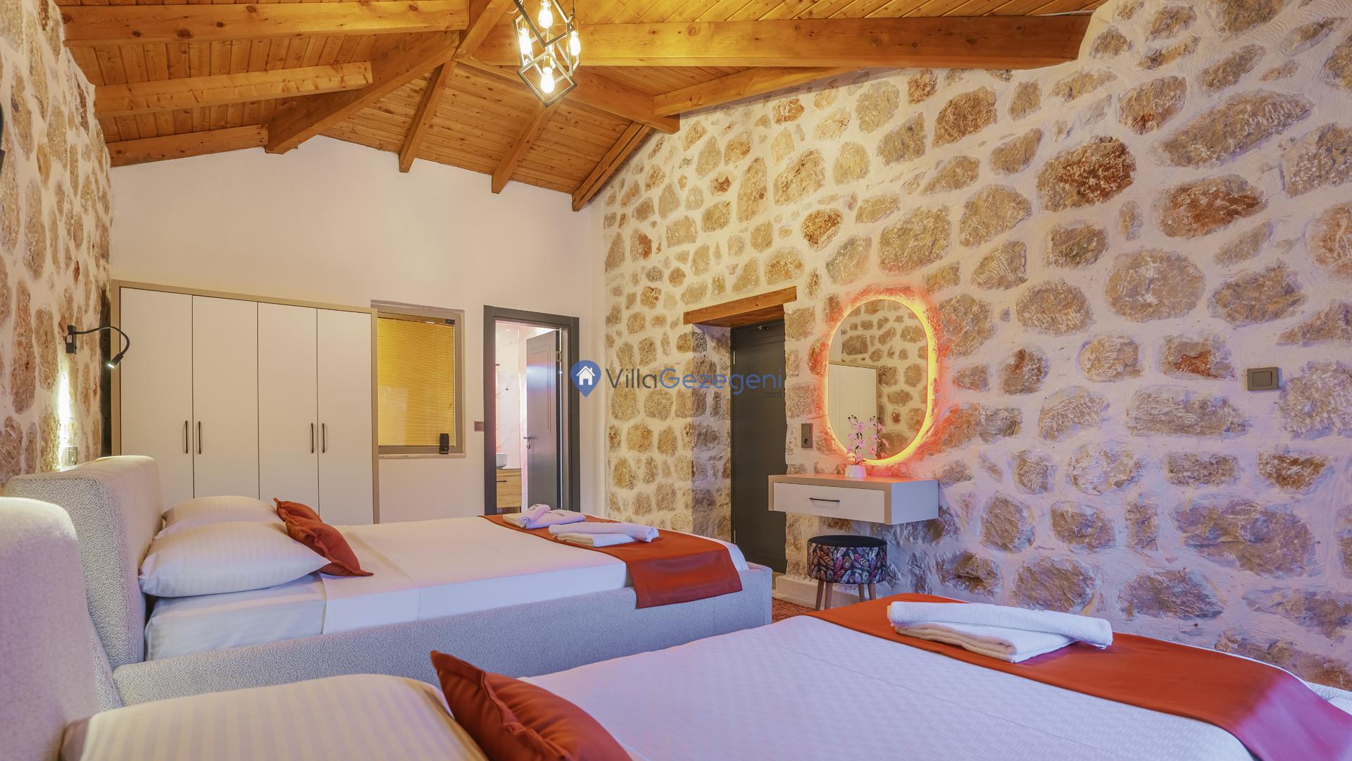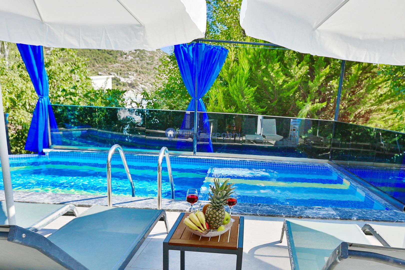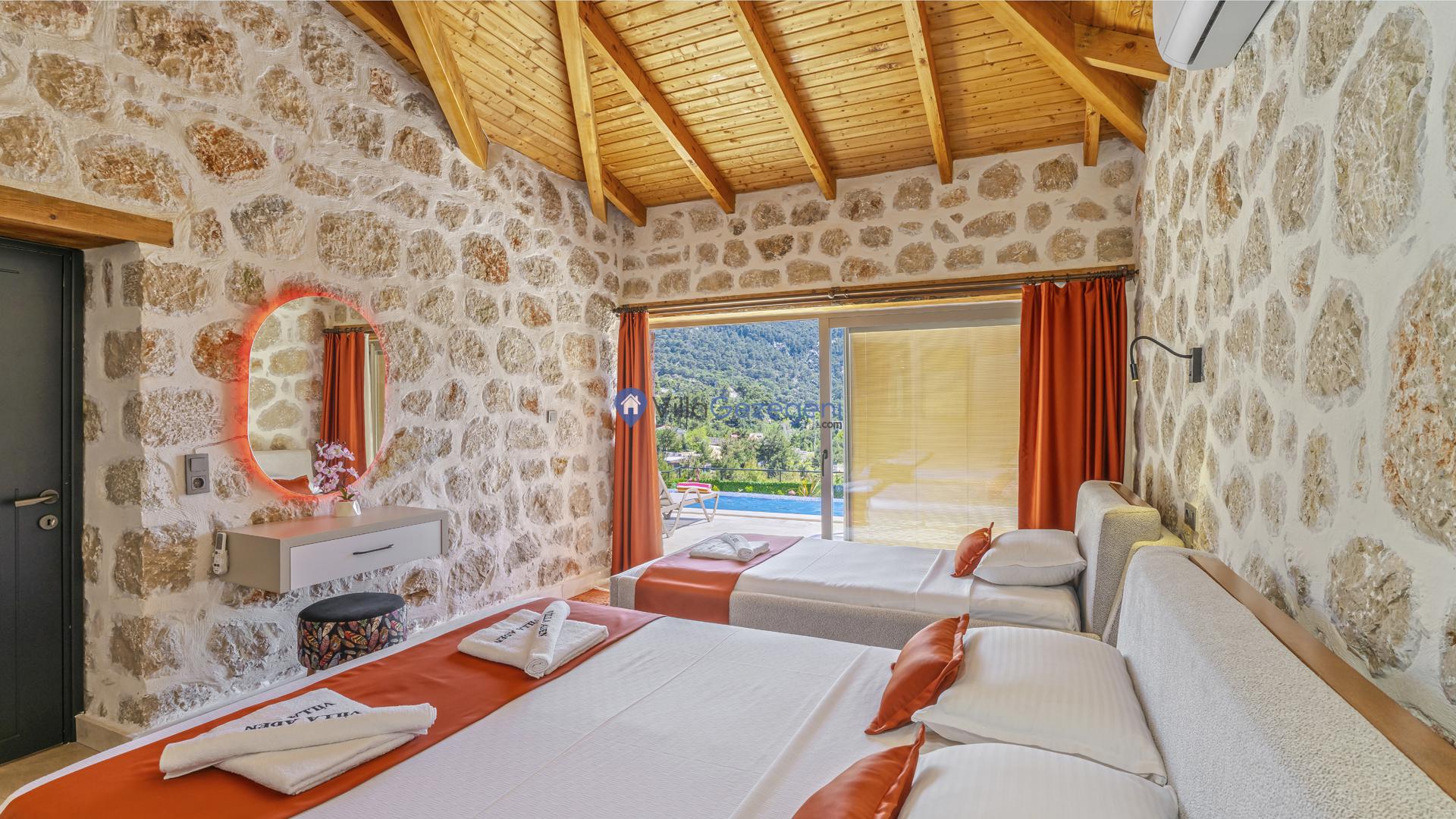 Kaş/Kalkan/İslamlar bölgesinde yer alan 2 yatak odalı 4 kişi kapasiteli muhafazakar doğa içerisinde balayı villası.