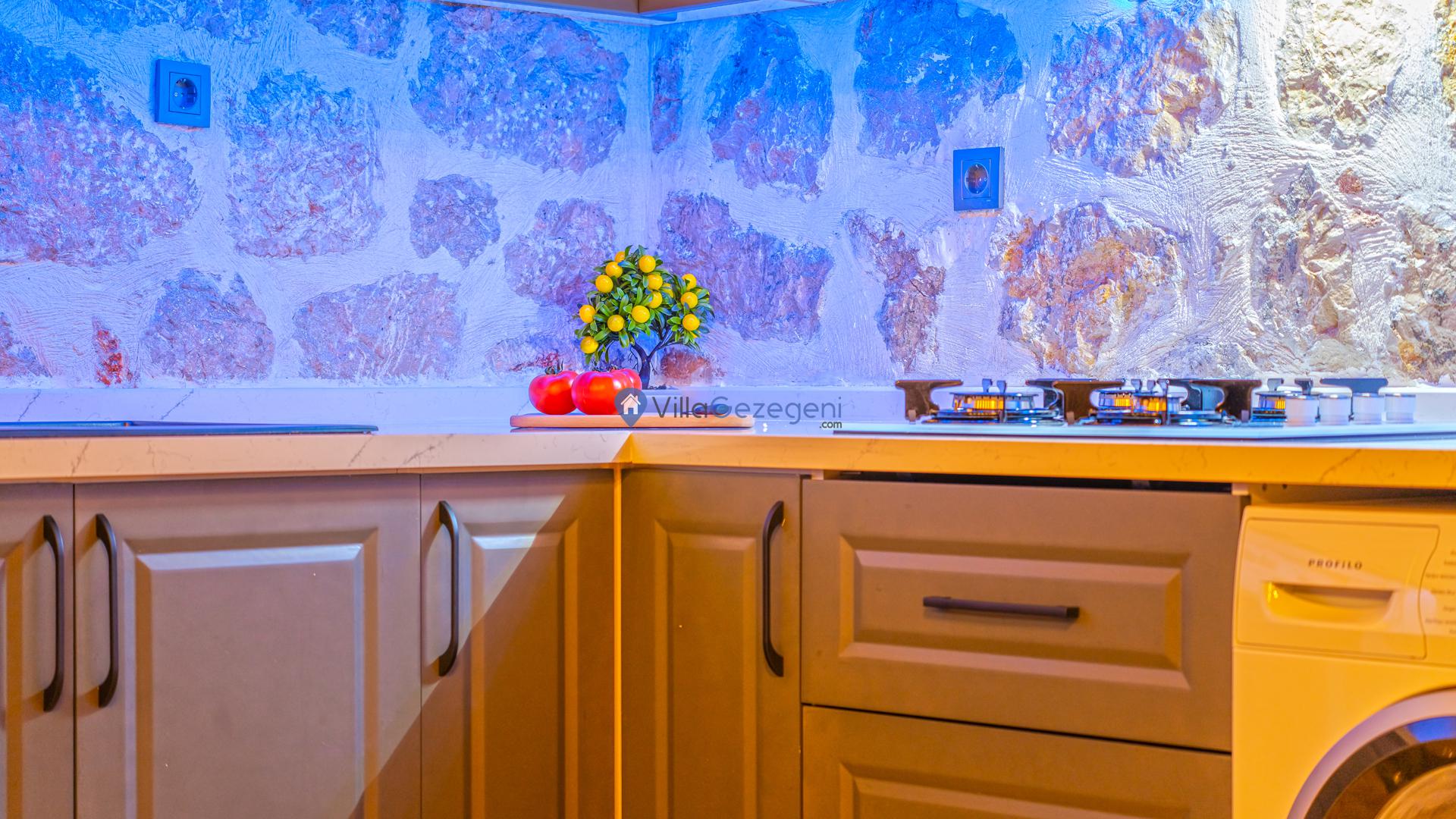 Villamız günlük hayatta sık kullanılan; Mikrodalga fırın, ankastre fırın, buzdolabı, çamaşır makinası, bulaşık makinesi, elektrikli su ısıtıcı kettle, ankastre 4’lü ocak, 2 kişilik yemek takımı, kaşık ve çatal takımı, tencere ve tava takımı, bardaklar yer almaktadır. İhtiyacınız durumunda villamızda bulunmayan malzemeler hakkında bizle iletişime geçebilir ve yardım isteyebilirsiniz.
