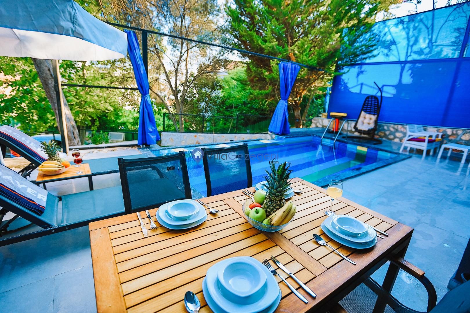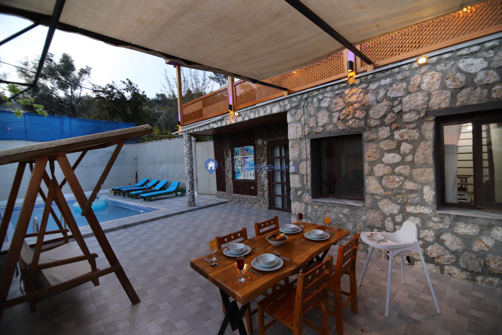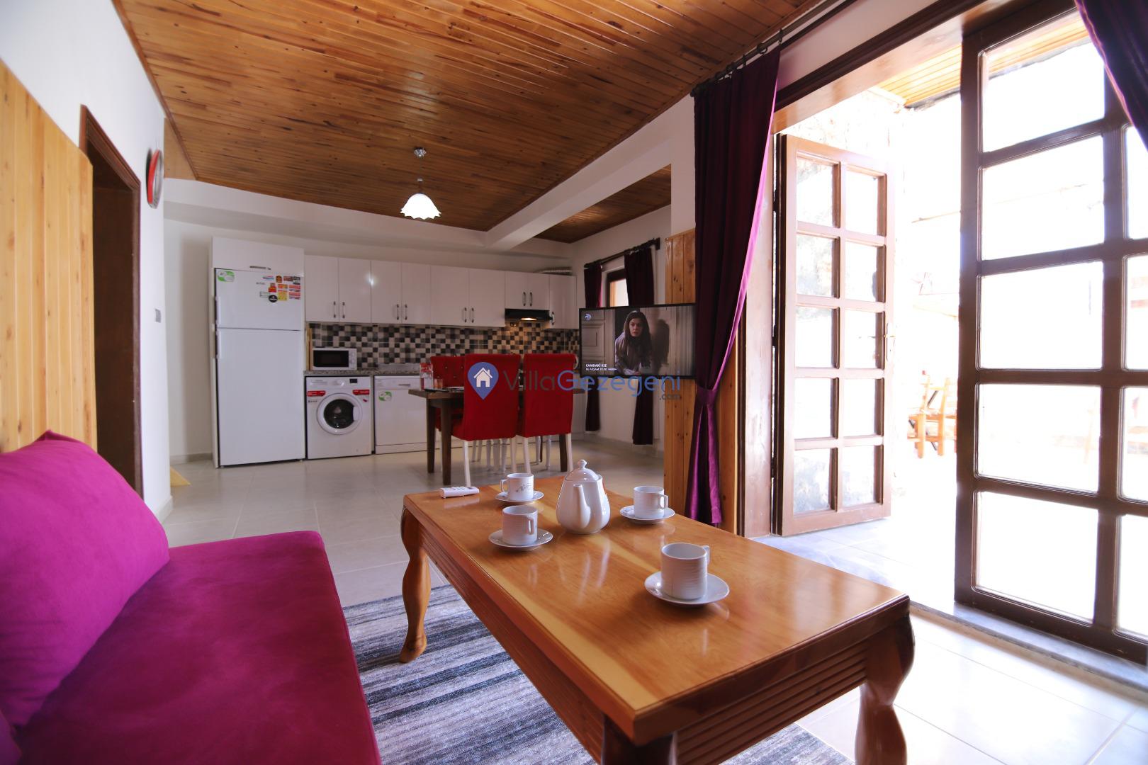 Kalkan İslamlar Mevkiinde yer alan 2 yatak odalı 4 kişi kapasiteli muhafazakar doğa içerisinde kiralık balayı villası.