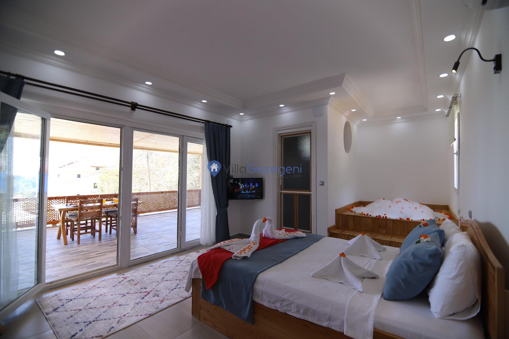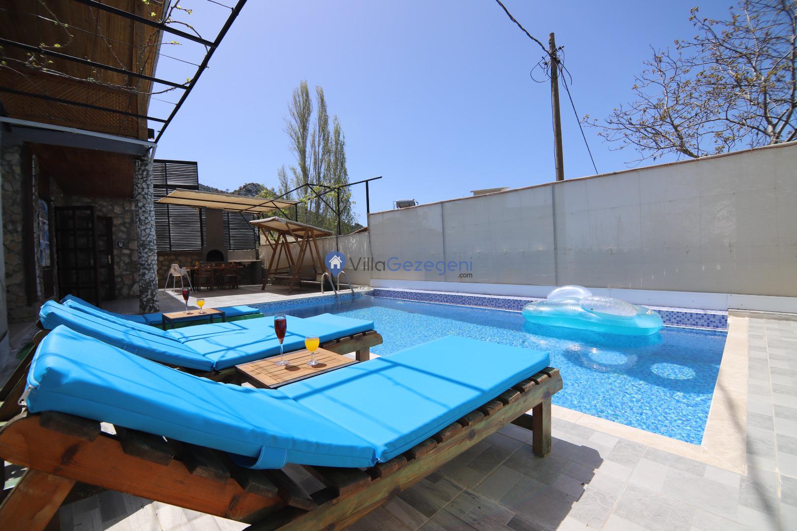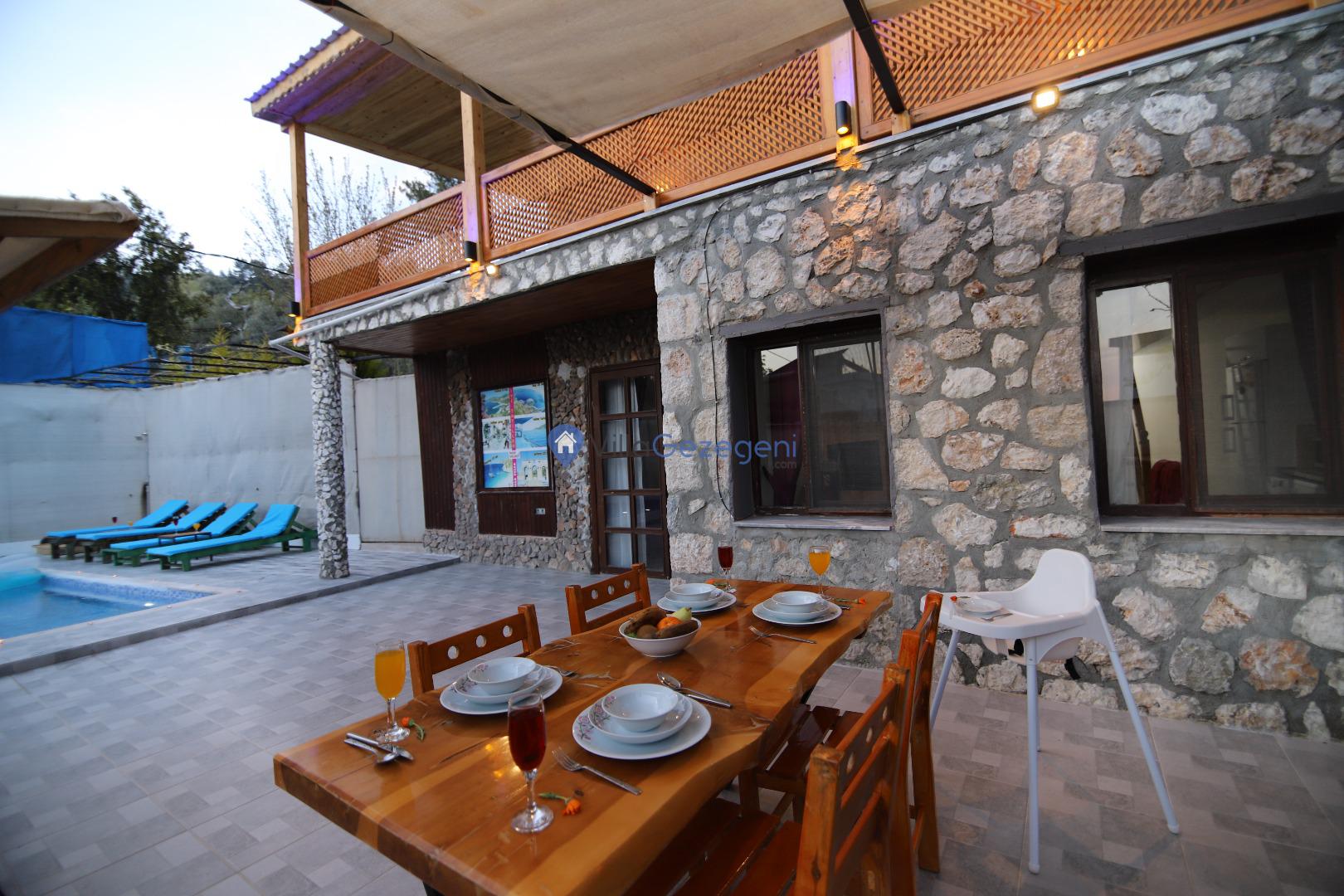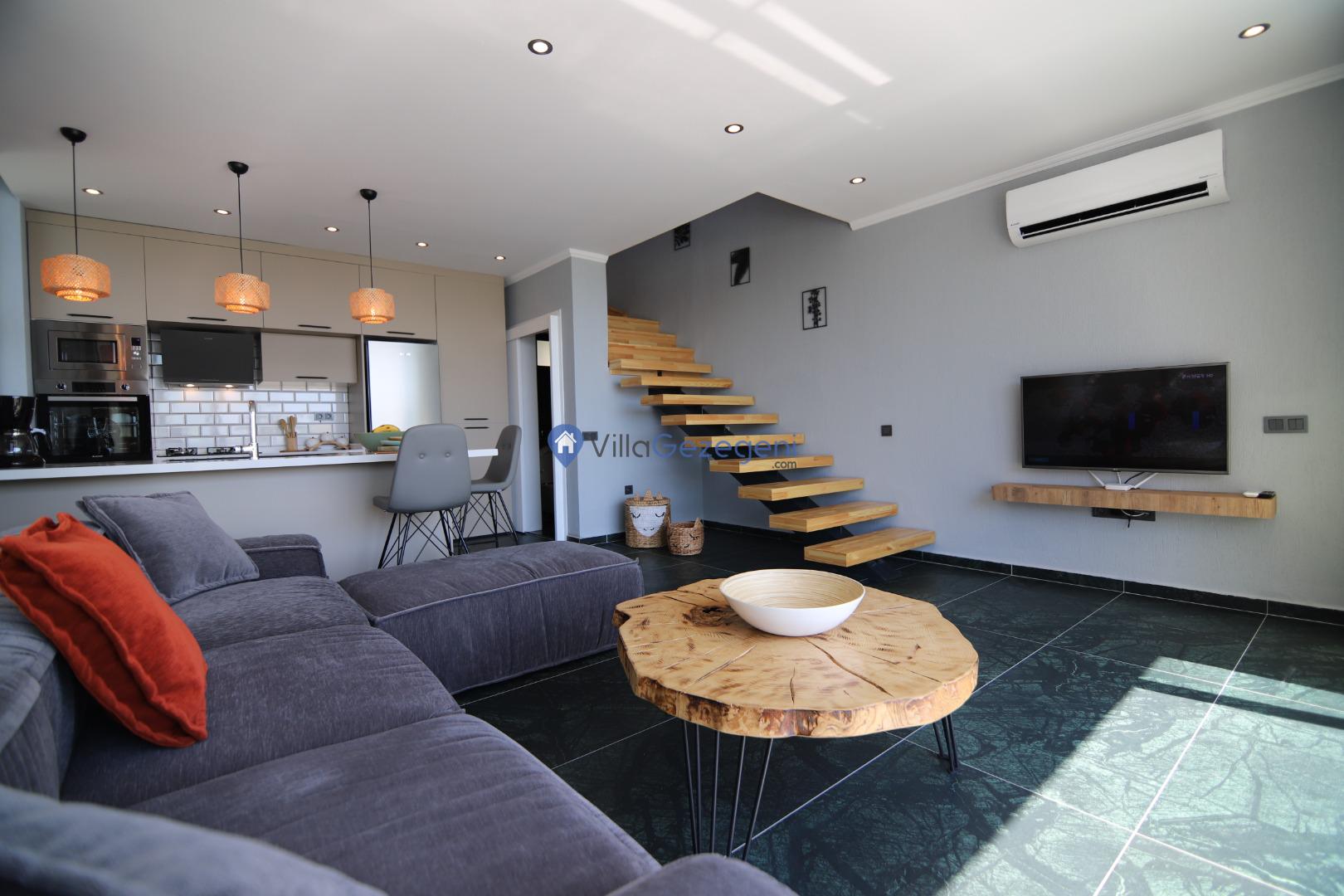 Kalkan İslamlar Mevkiinde yer alan 2 yatak odalı 4 kişi kapasiteli muhafazakar doğa içerisinde kiralık balayı villası.