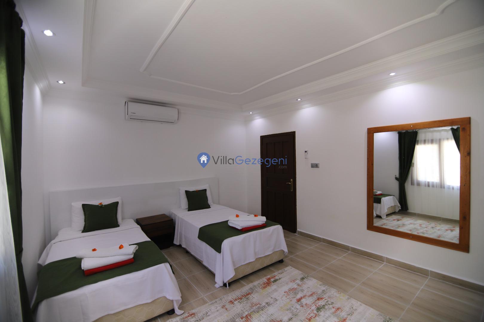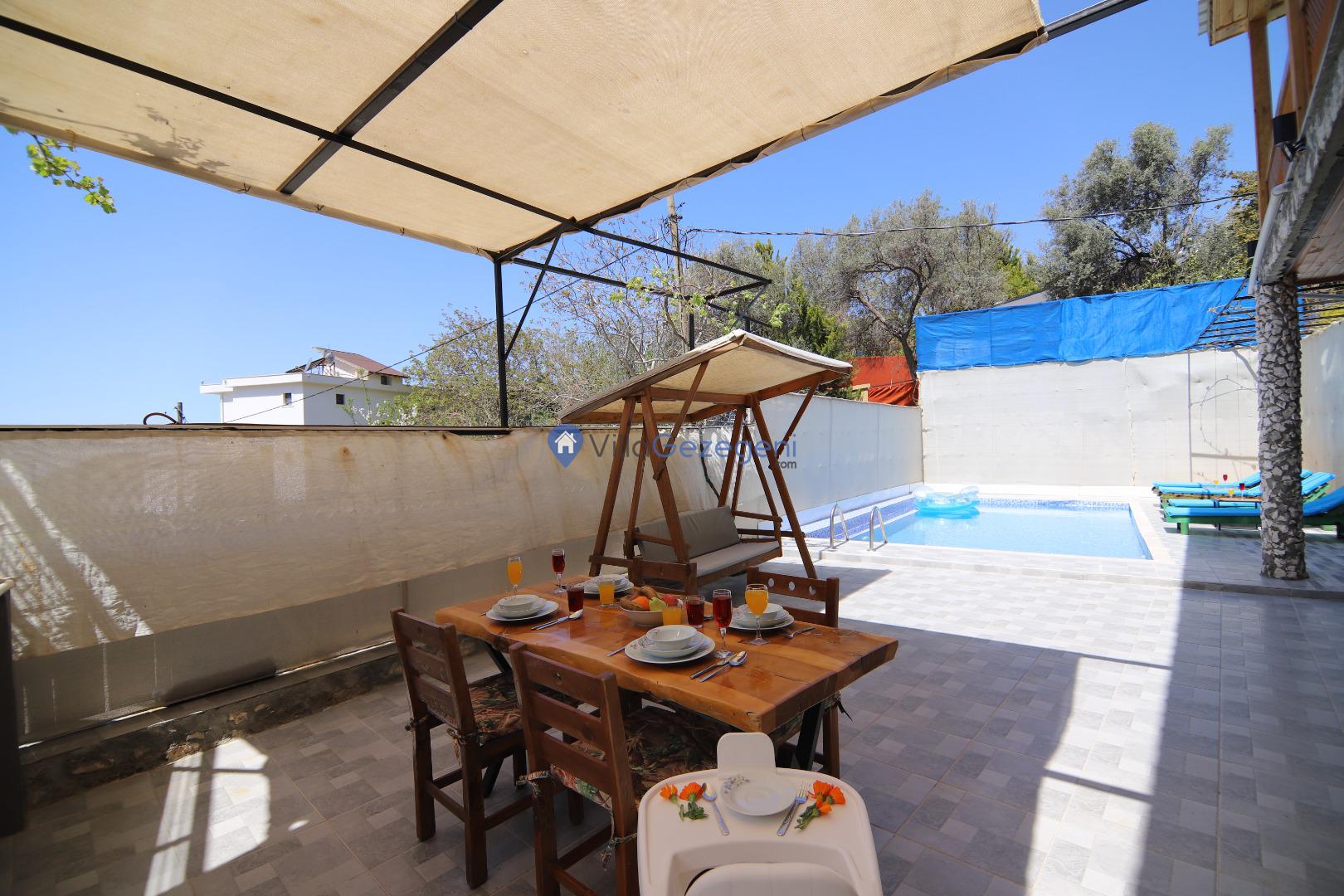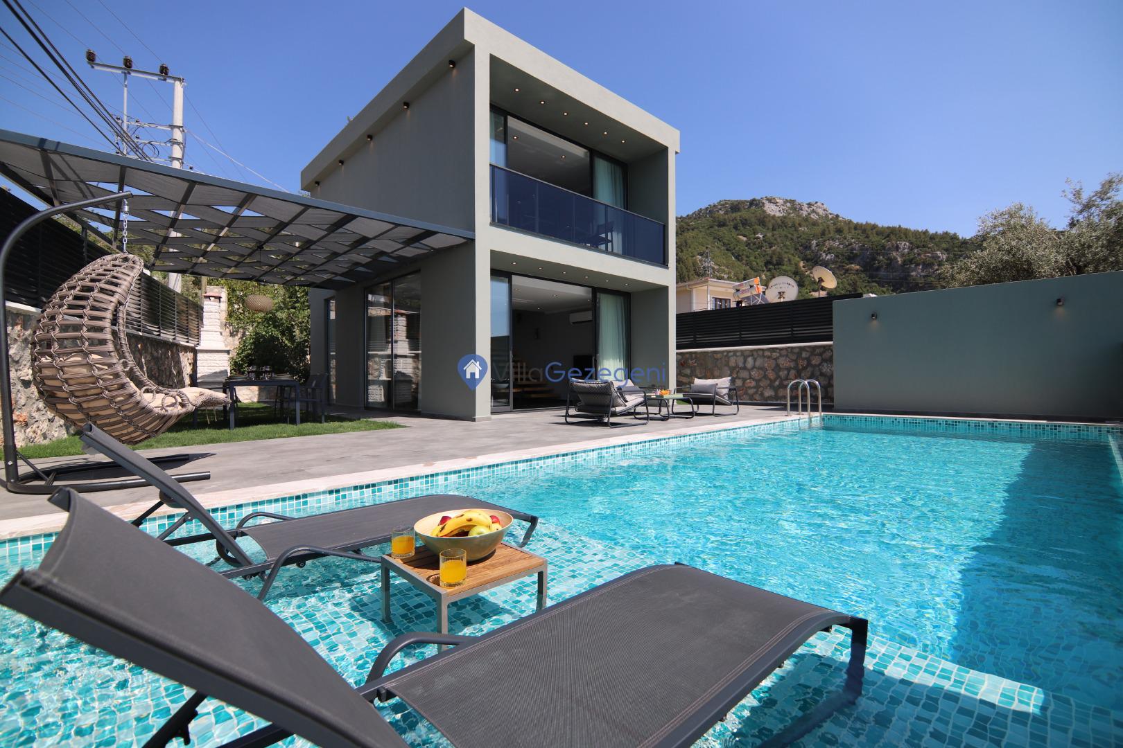 Villamızın genel konsept ve özelliklerinden tekrar bahsedecek olursak; villamızın 1 adet müstakil özel havuzu bulunmaktadır. Ortalama bir bahçeye sahip olan villamız rahatlığı ön planda tutan 2 adet yatak odası, 3 yatak, 2 banyo, hareket alanı geniş bir mutfak ve 4 kişinin geniş aralıklarla rahatlıkla oturabileceği koltuklara sahip salonu bulunmaktadır.