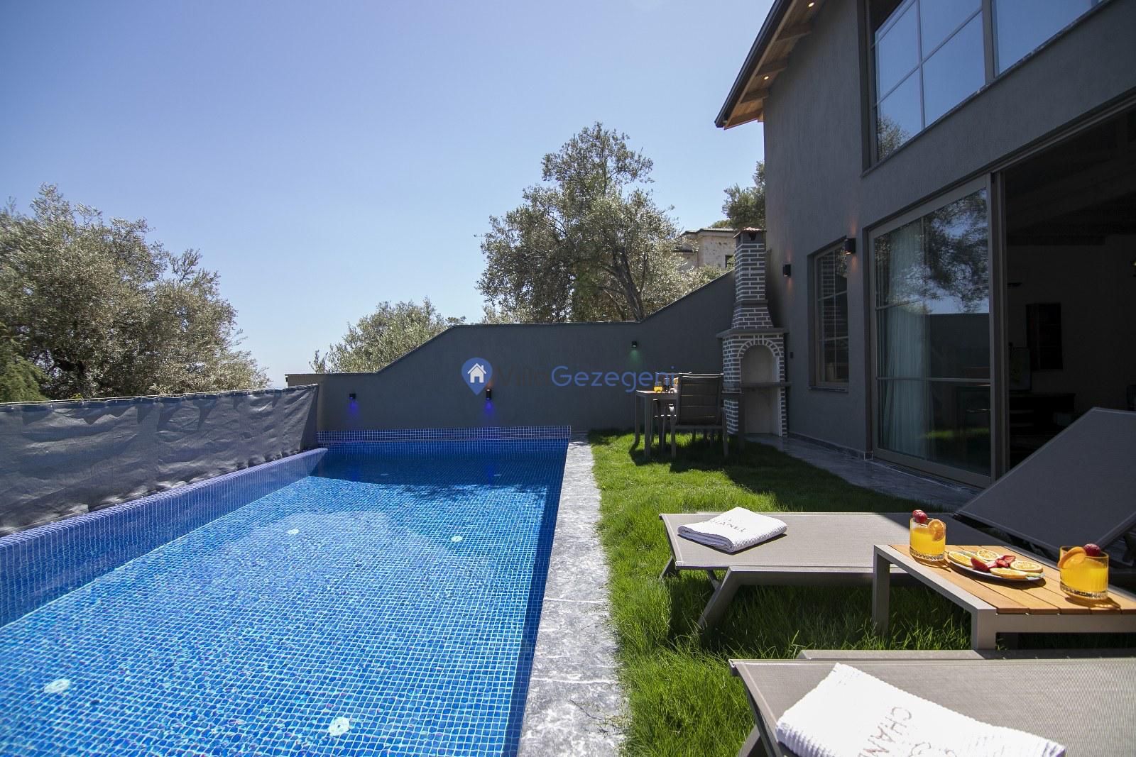 Villamızın genel konsept ve özelliklerinden tekrar bahsedecek olursak; villamızın 1 adet müstakil özel havuzu bulunmaktadır. Ortalama bir bahçeye sahip olan villamız rahatlığı ön planda tutan 3 adet yatak odası,4 yatak,3 banyo, hareket alanı geniş bir mutfak ve 6 kişinin geniş aralıklarla rahatlıkla oturabileceği koltuklara sahip salonu bulunmaktadır.