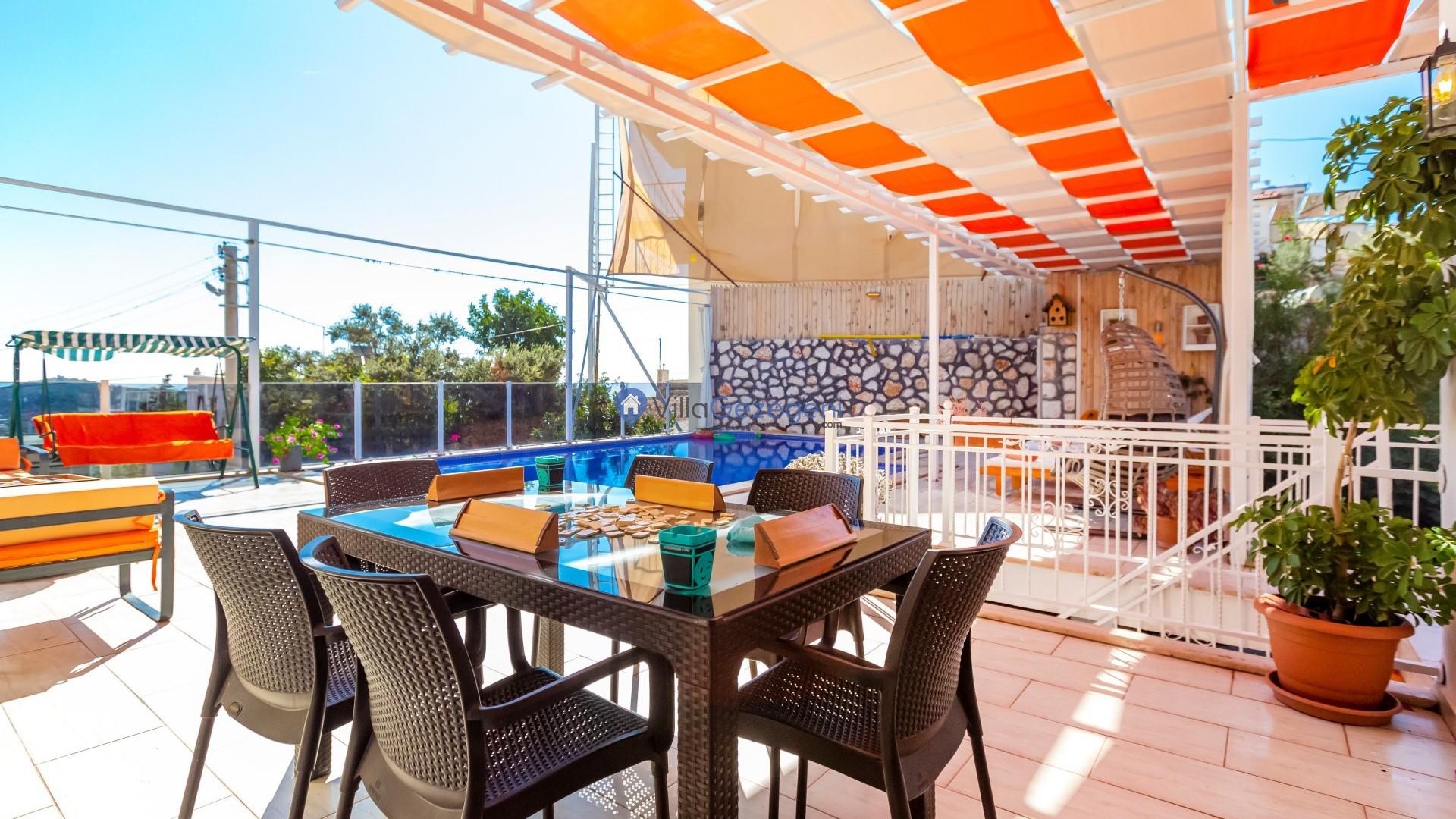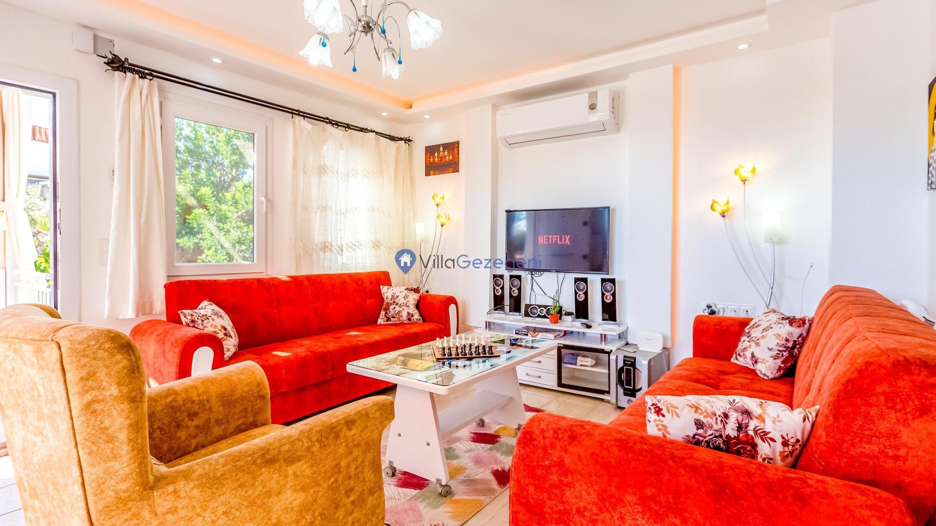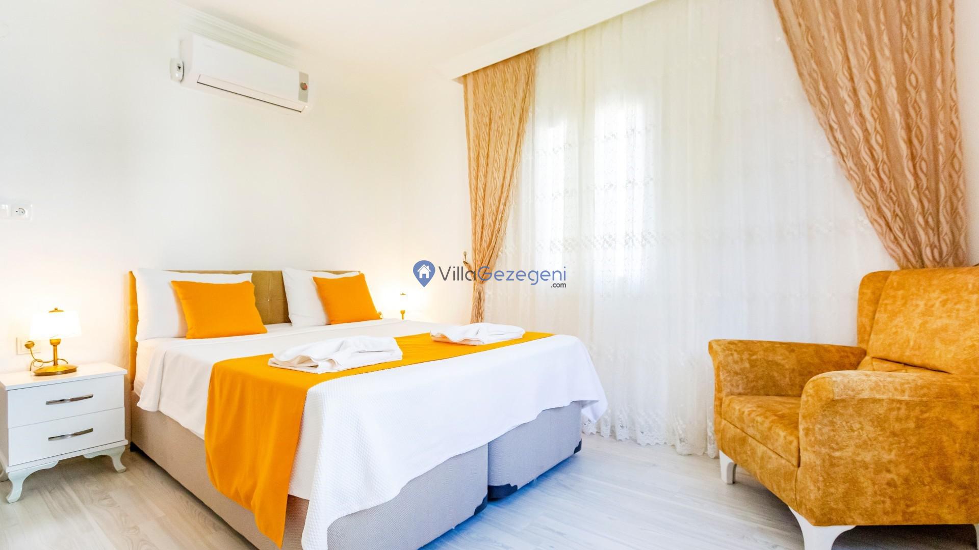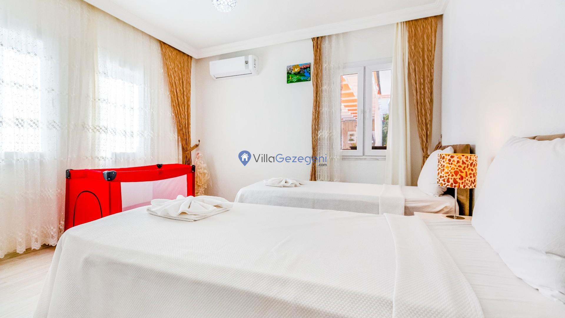 Villamızın genel konsept ve özelliklerinden tekrar bahsedecek olursak; villamızın 1 adet müstakil özel havuzu bulunmaktadır. Ferah bir bahçeye sahip olan villamız rahatlığı ön planda tutan 2 adet yatak odası, 3 yatak, 2 banyo, rahat bir mutfak ve 4 kişinin rahatlıkla oturabileceği koltuklara sahip büyük salonu bulunmaktadır.