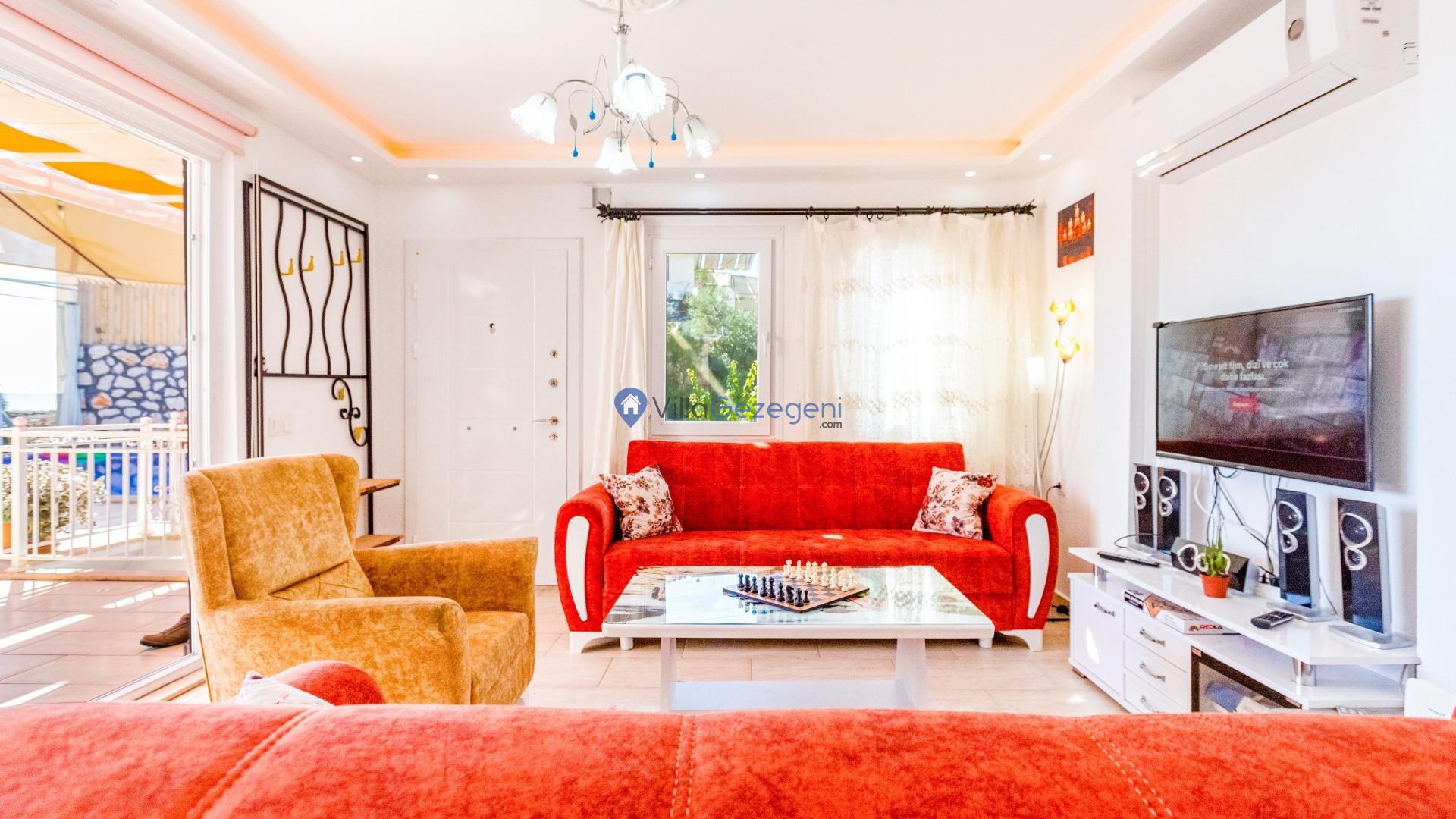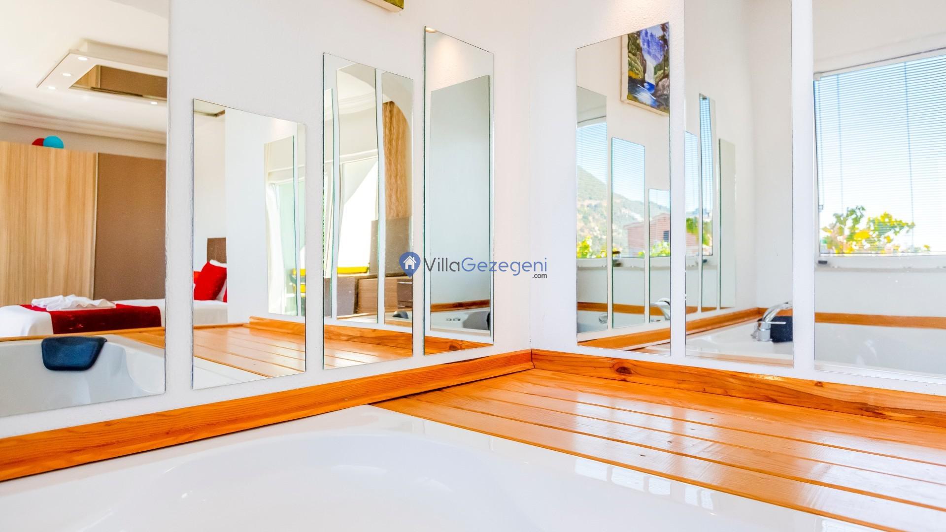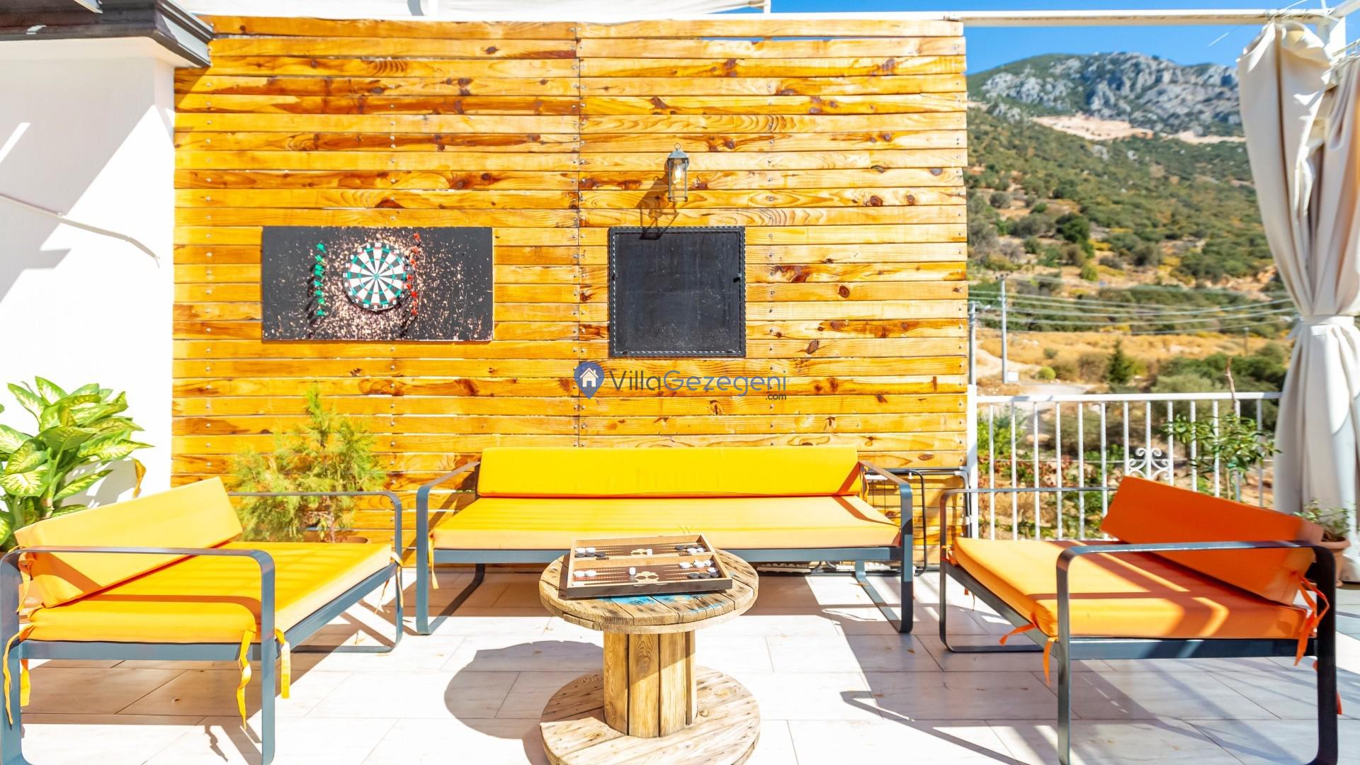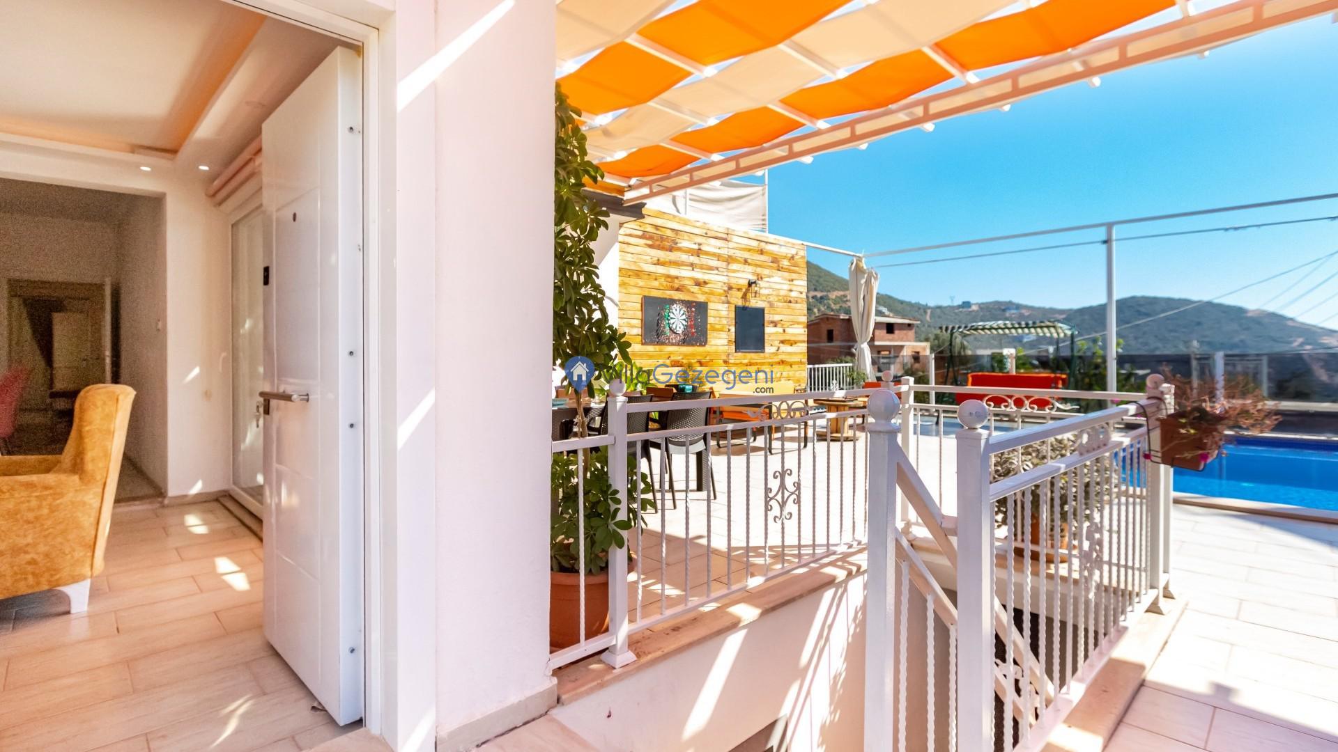 Kaş Kalkan Kördere bölgesinde yer alan 3 yatak odalı 6 kişi kapasiteli kiralık tatil villası.