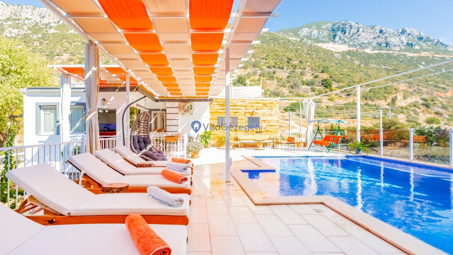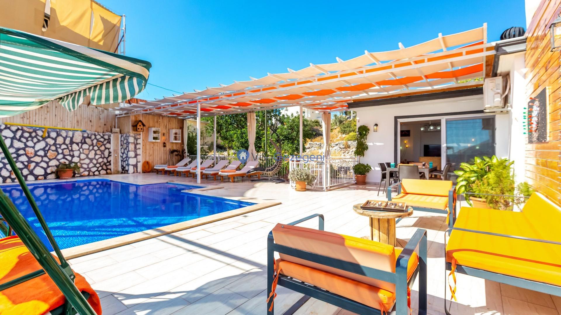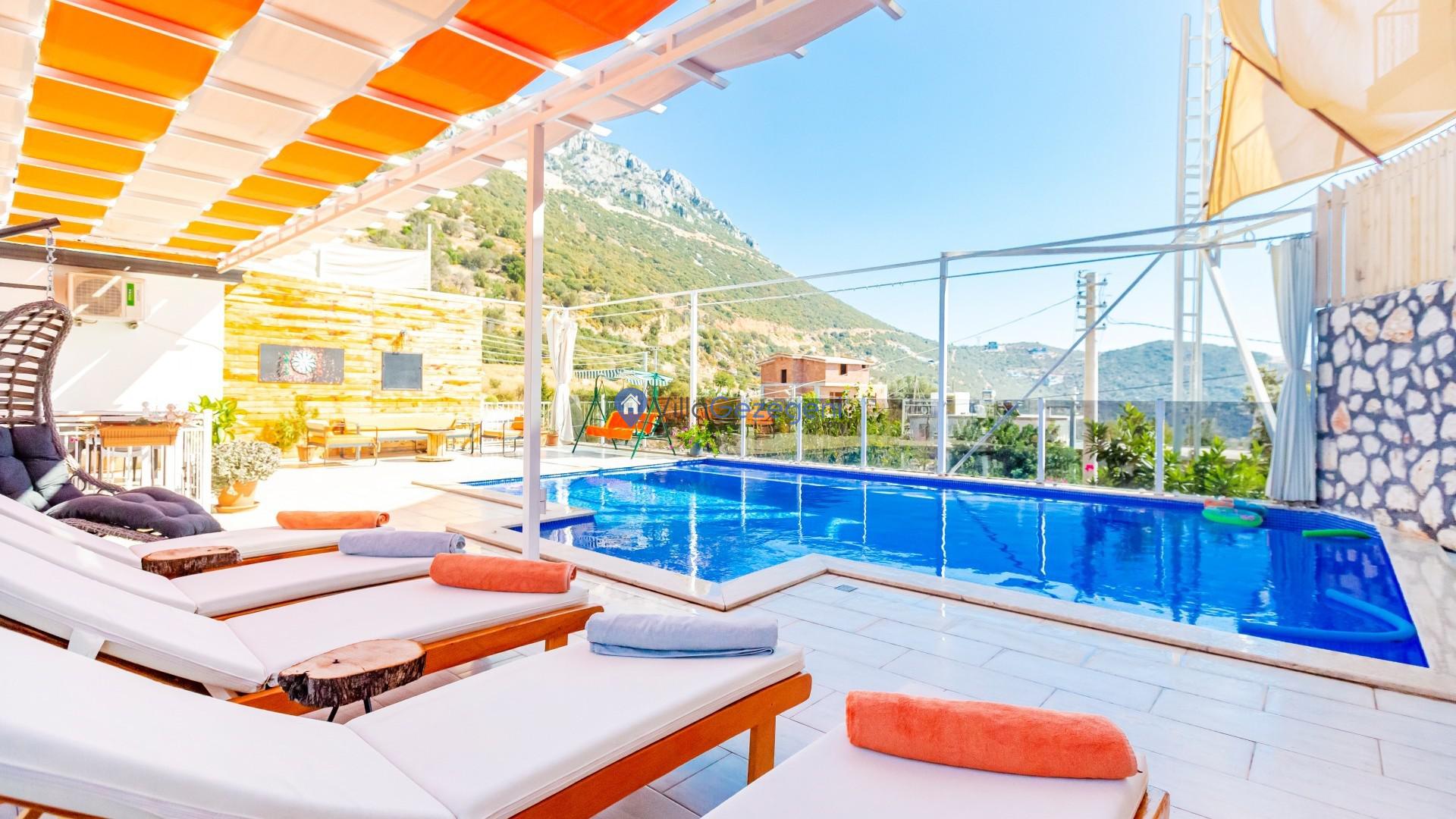 Kaş/Kalkan/Kördere mevkiisinde konumlanmış 4 yatak odalı, 8 kişilik konaklama kapasitesine sahip özel havuzlu tatil villasıdır.