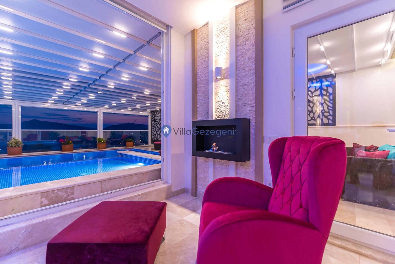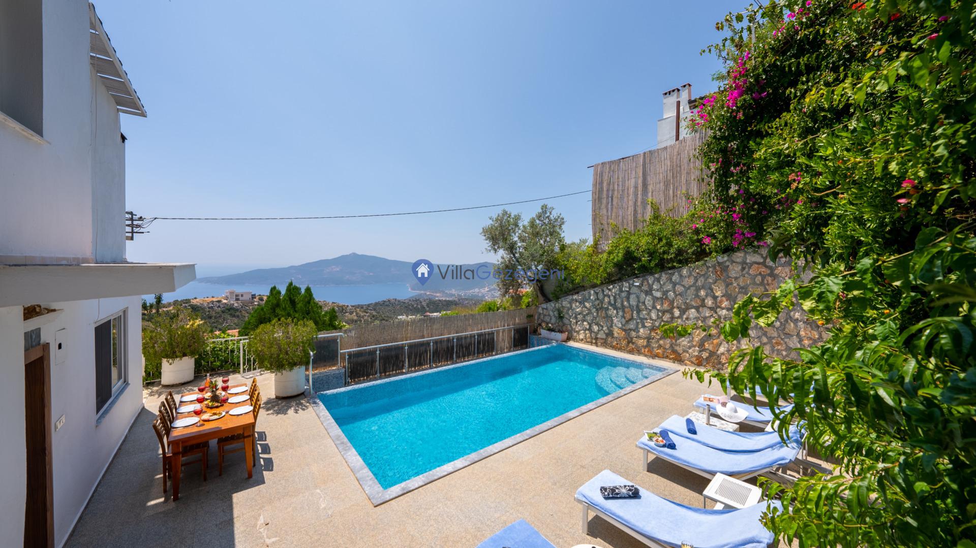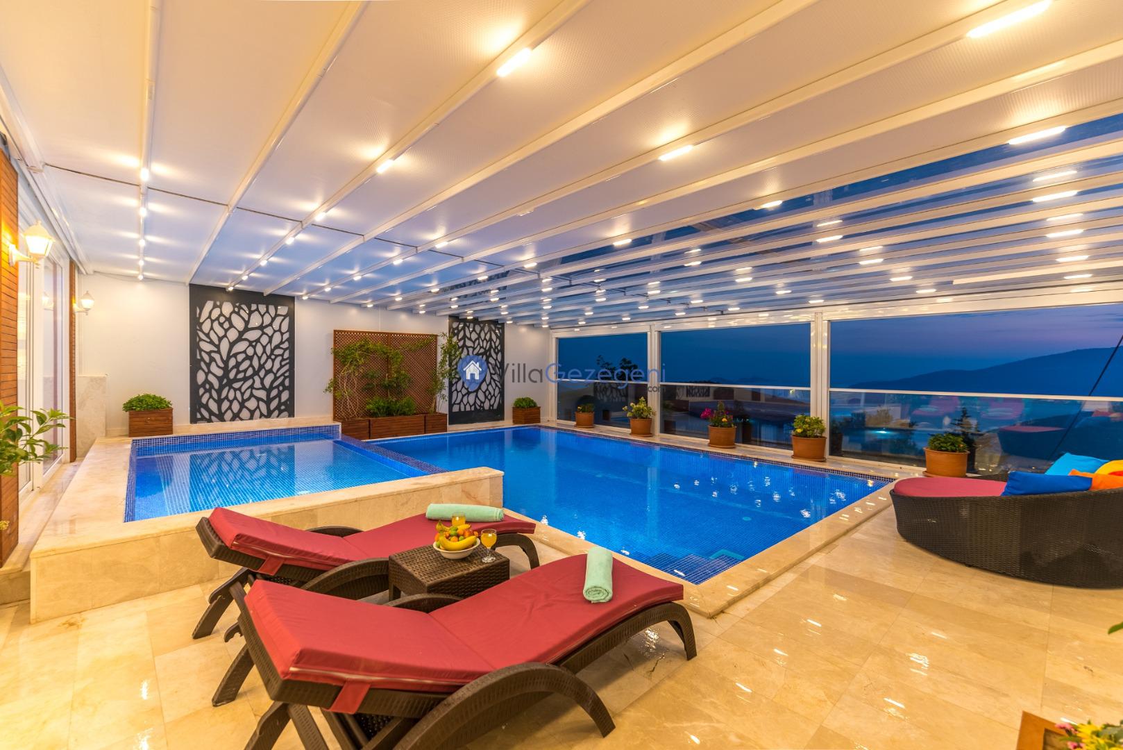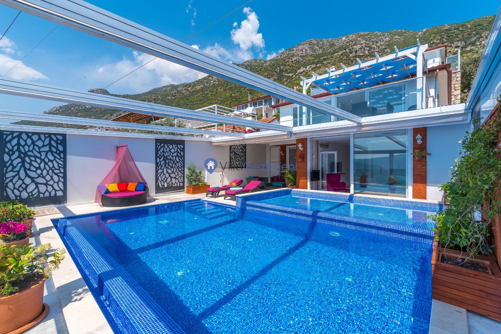 Kalkan Kördere Bölgesinde yer alan 3 yatak odalı 6 kişi kapasiteli Kapalı Isıtmalı Havuzlu Geniş Aile Tatil Villası.