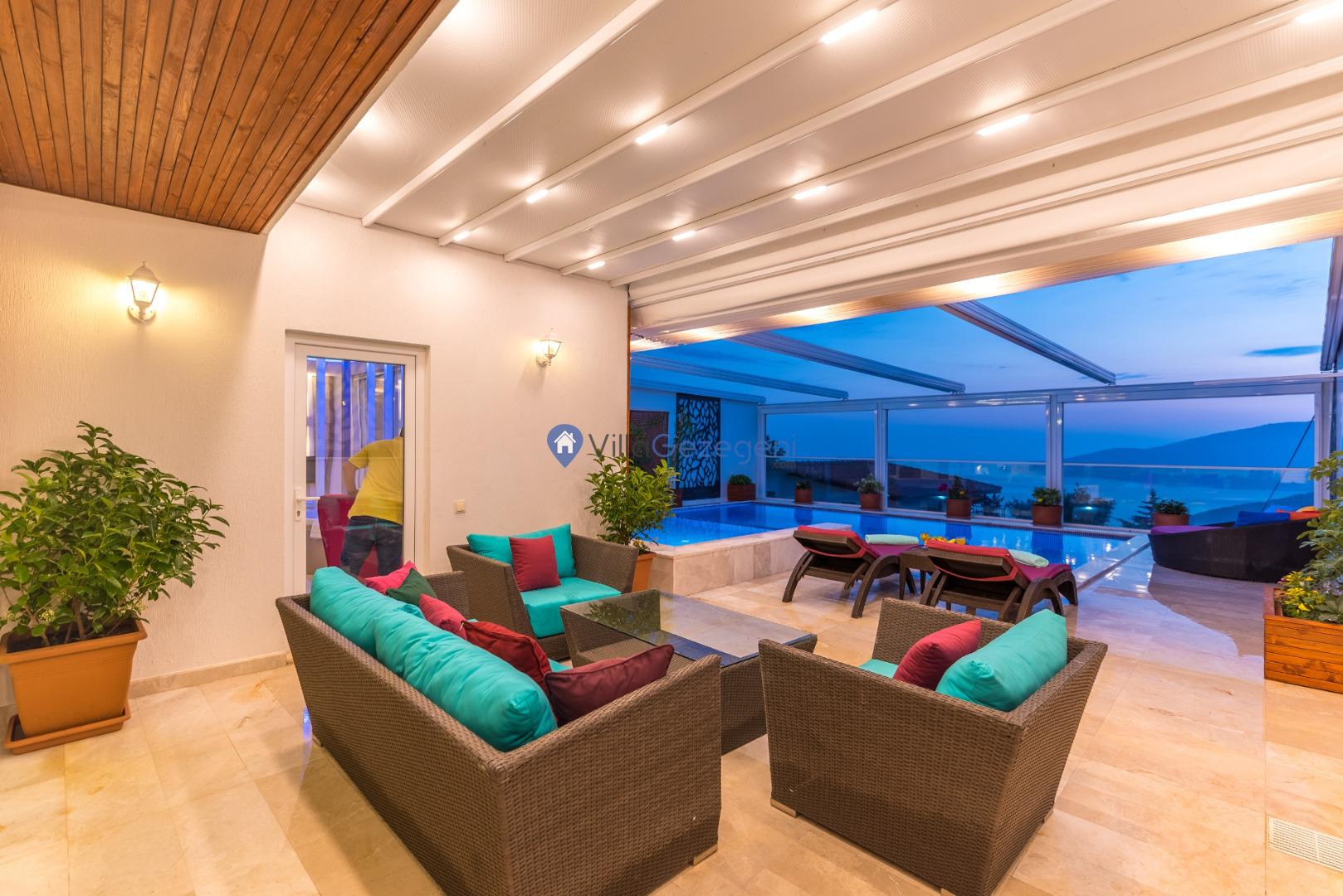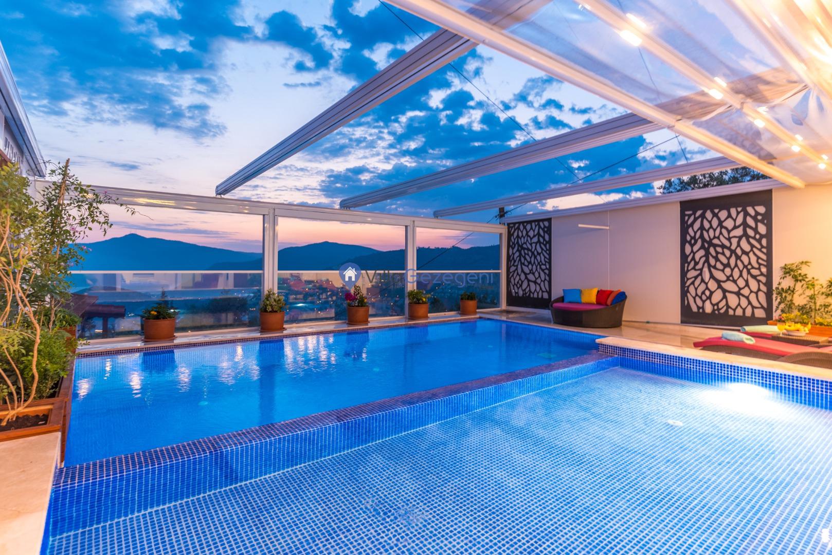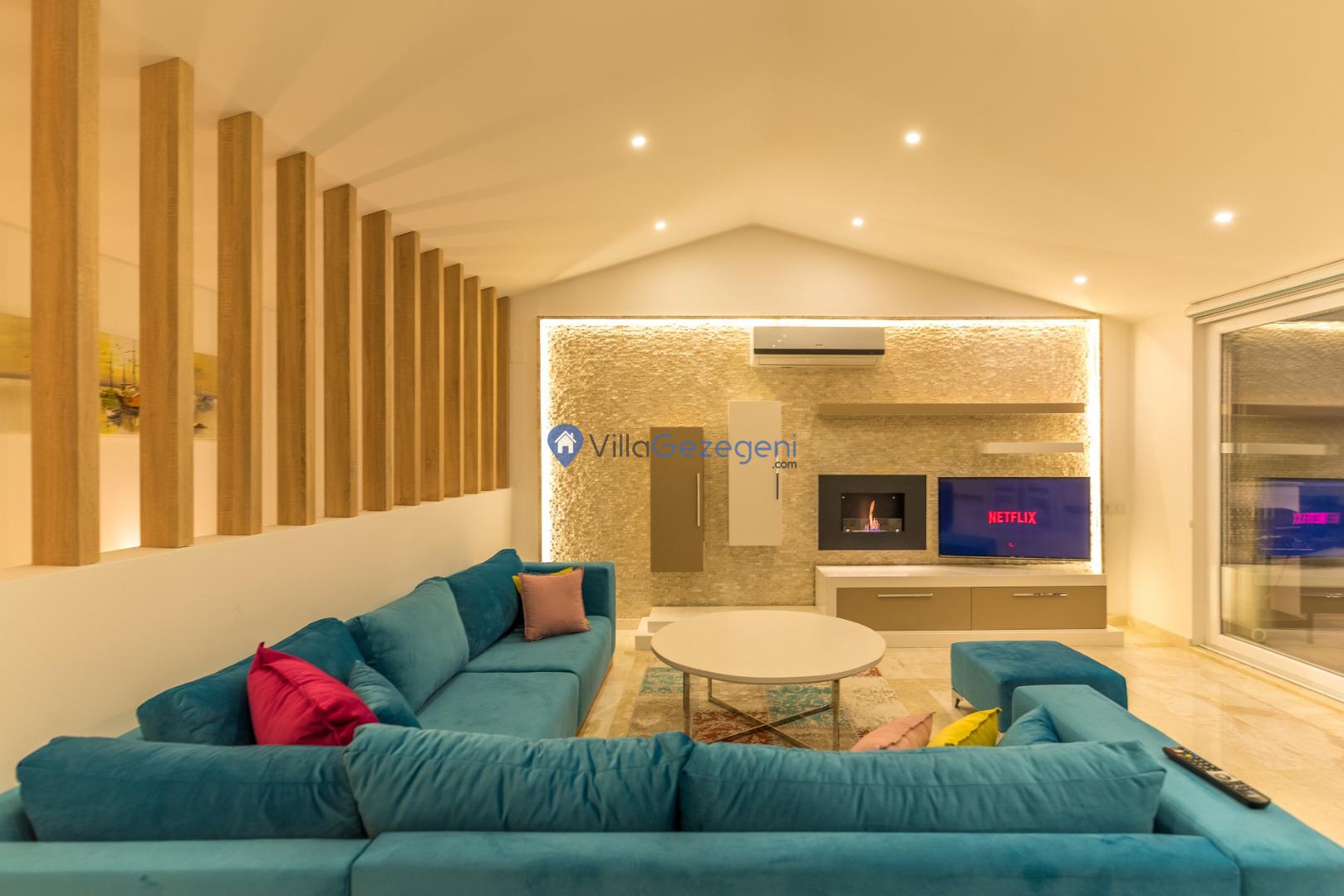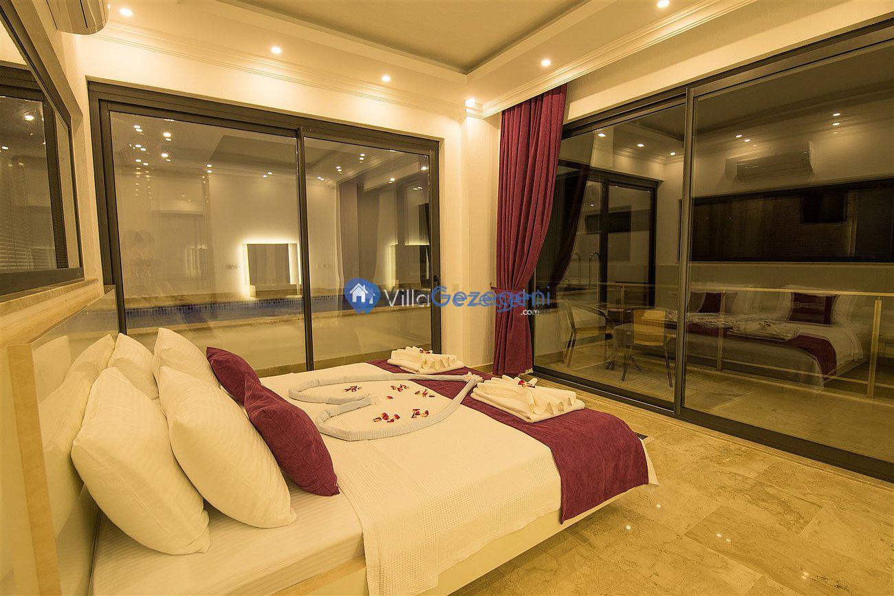Kalkan Kördere Bölgesinde yer alan 3 yatak odalı 6 kişi kapasiteli Kapalı Isıtmalı Havuzlu Geniş Aile Tatil Villası.