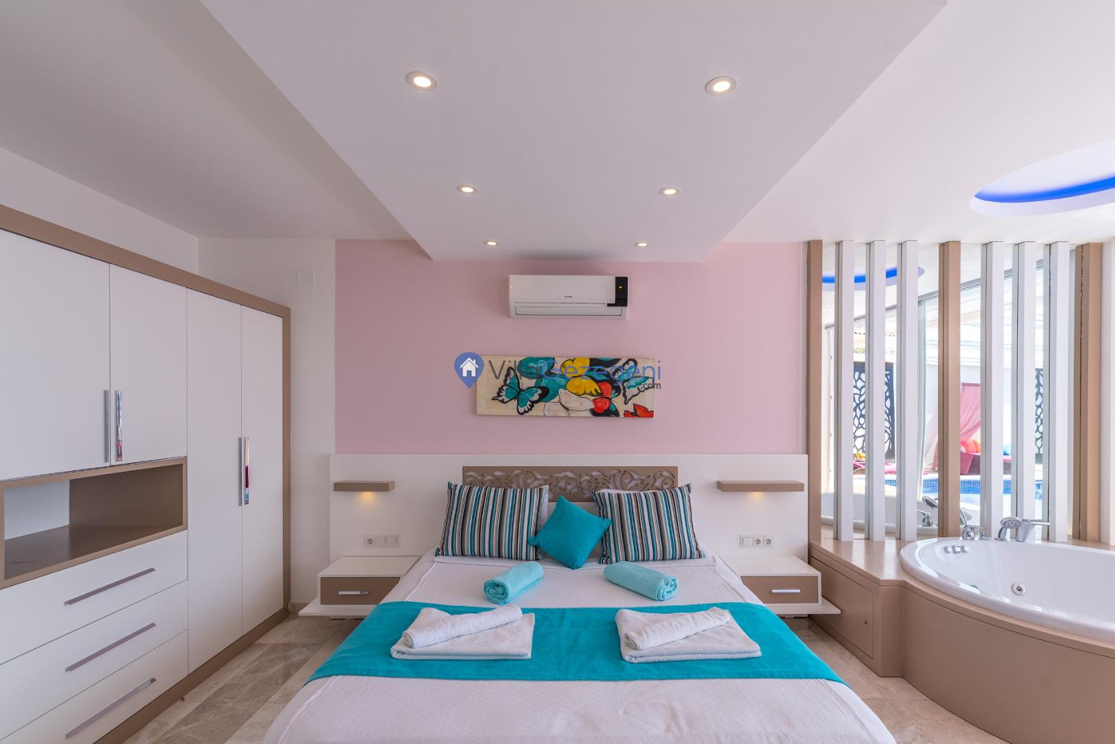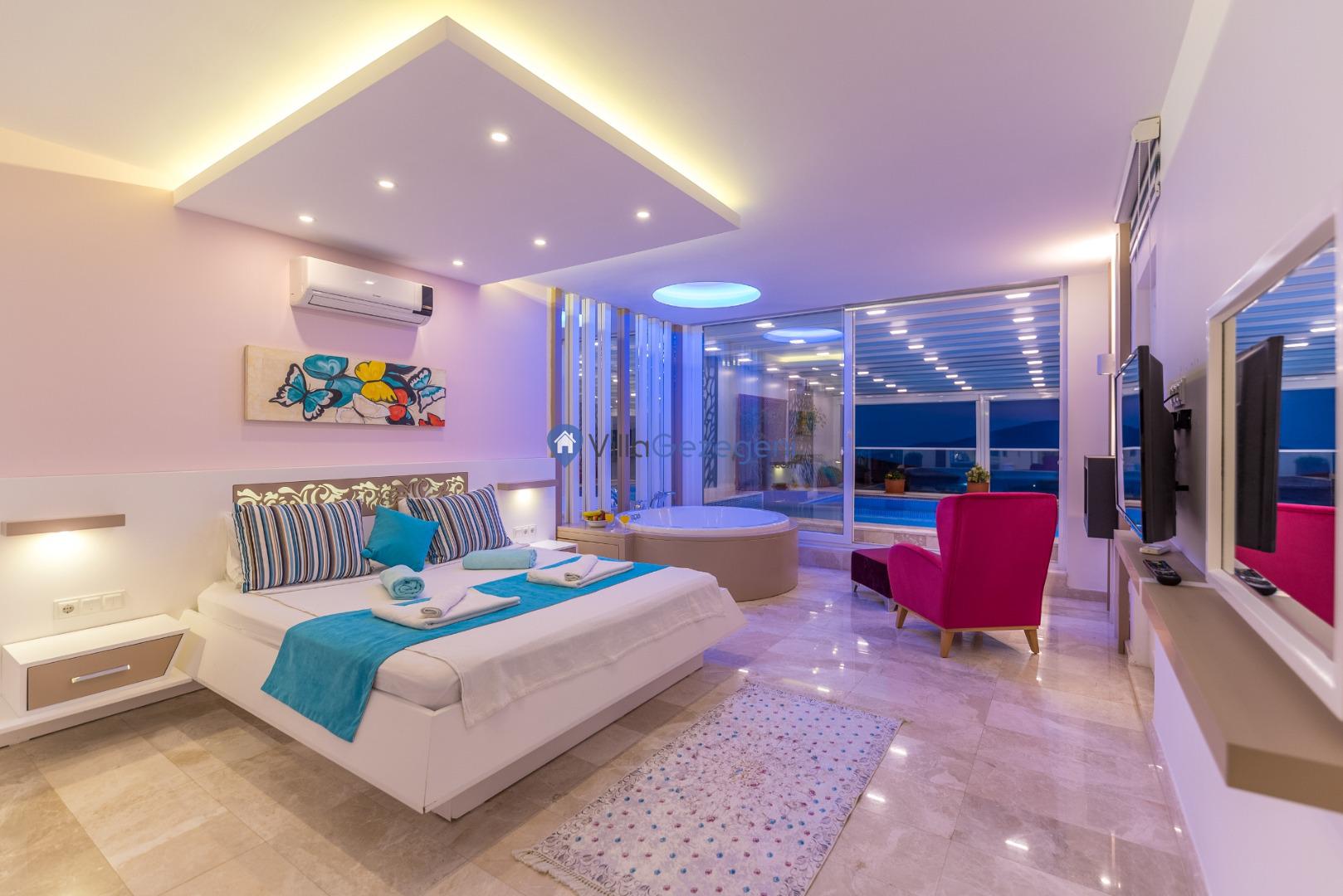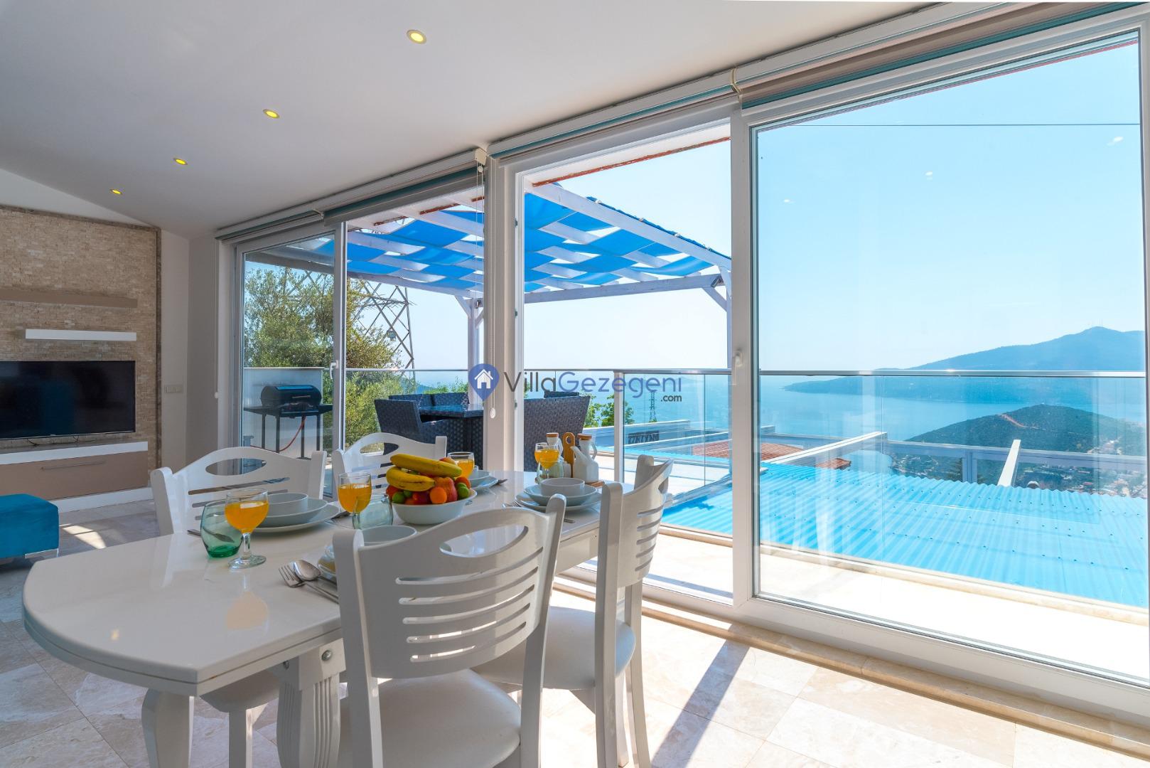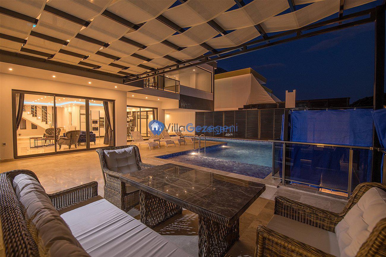Kalkan Kördere Bölgesinde yer alan 3 yatak odalı 6 kişi kapasiteli Kapalı Isıtmalı Havuzlu Geniş Aile Tatil Villası.