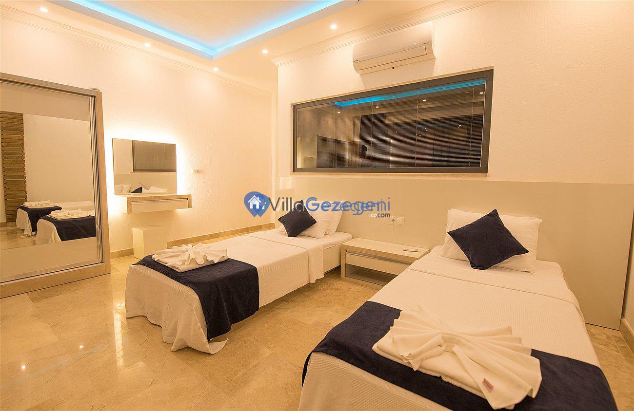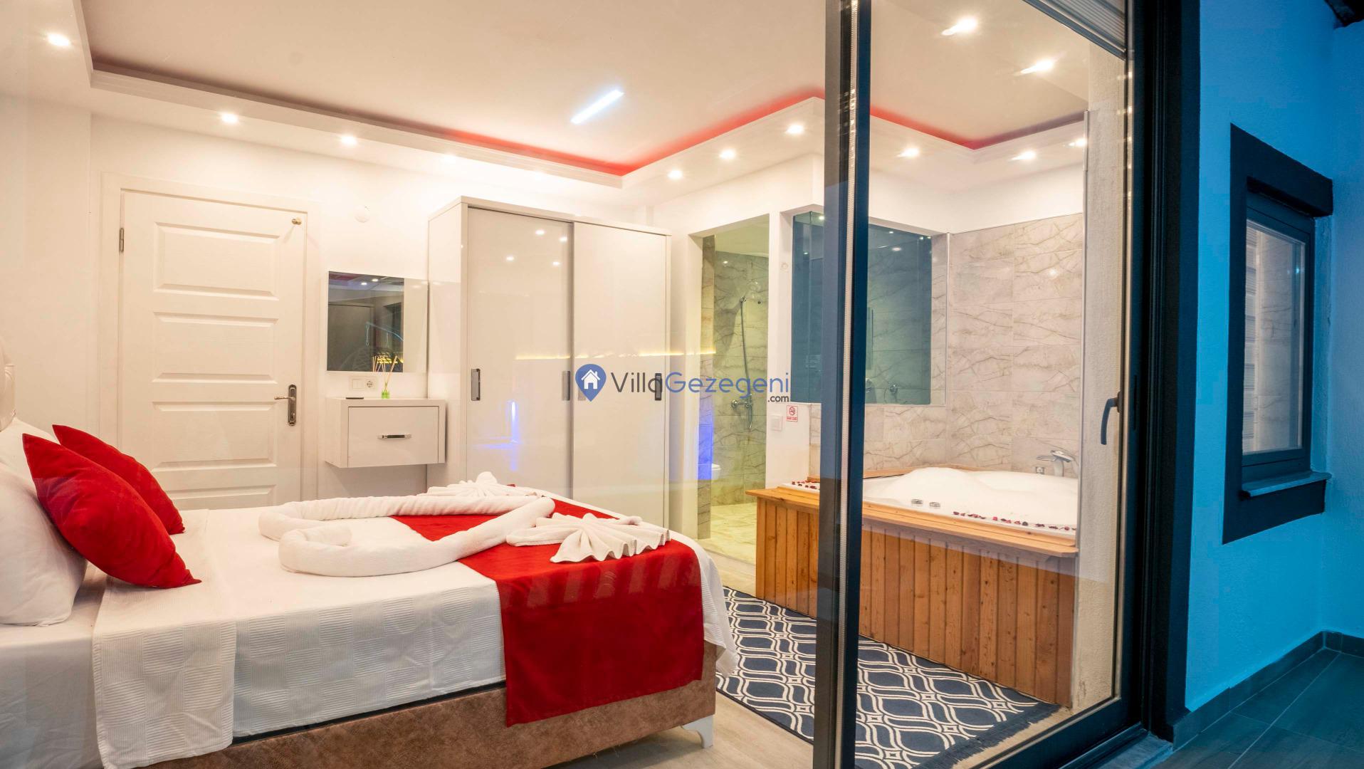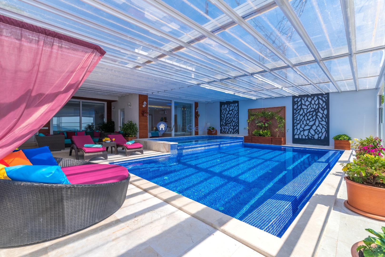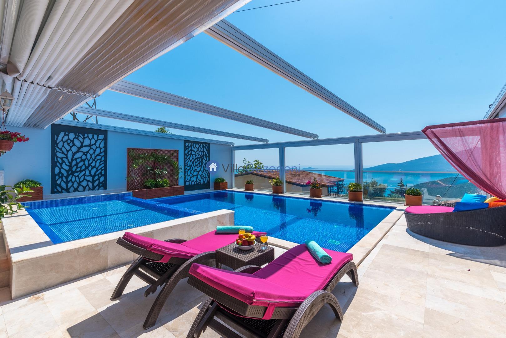 Kalkan Kördere Bölgesinde yer alan 3 yatak odalı 6 kişi kapasiteli Kapalı Isıtmalı Havuzlu Geniş Aile Tatil Villası.
