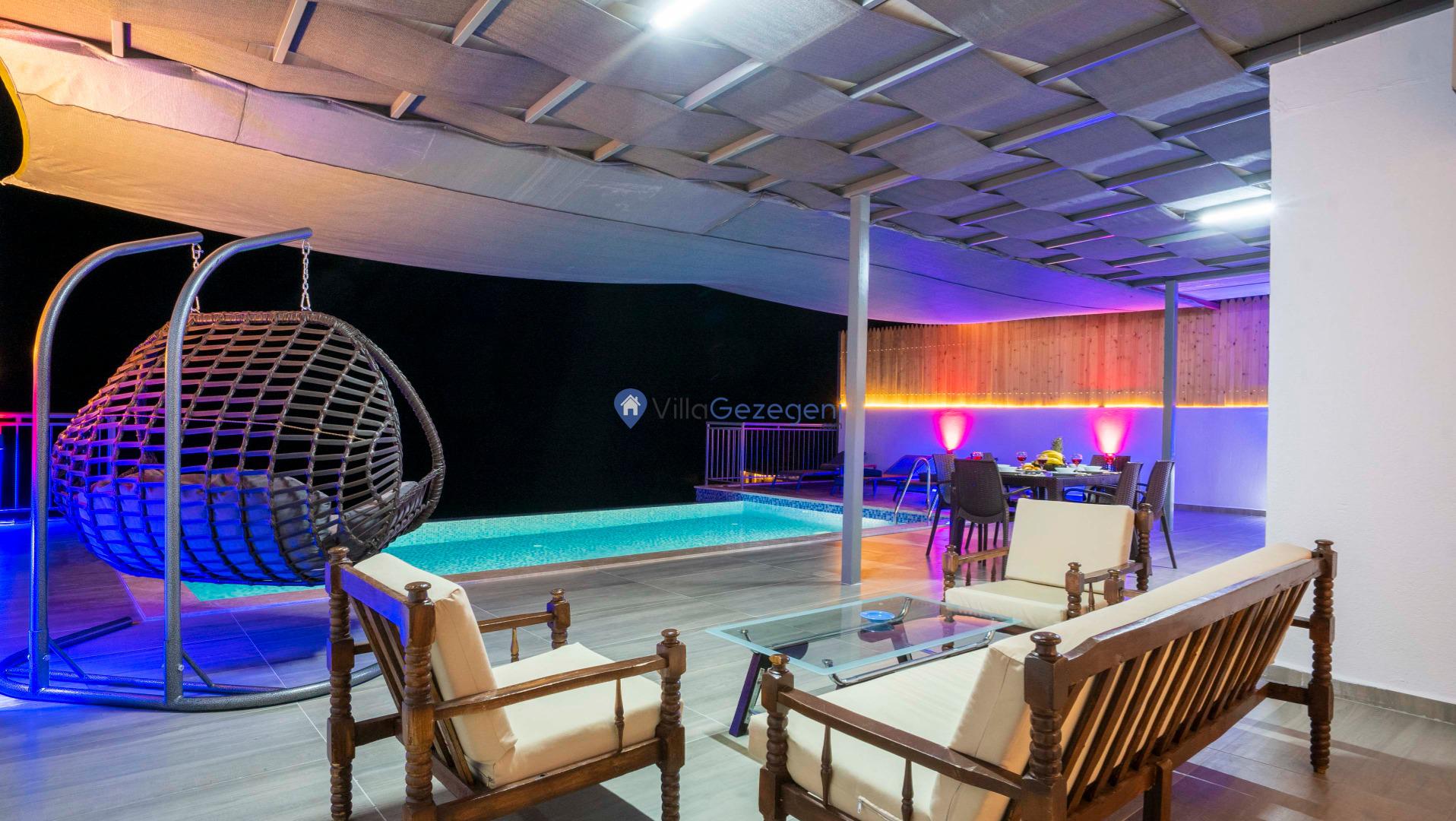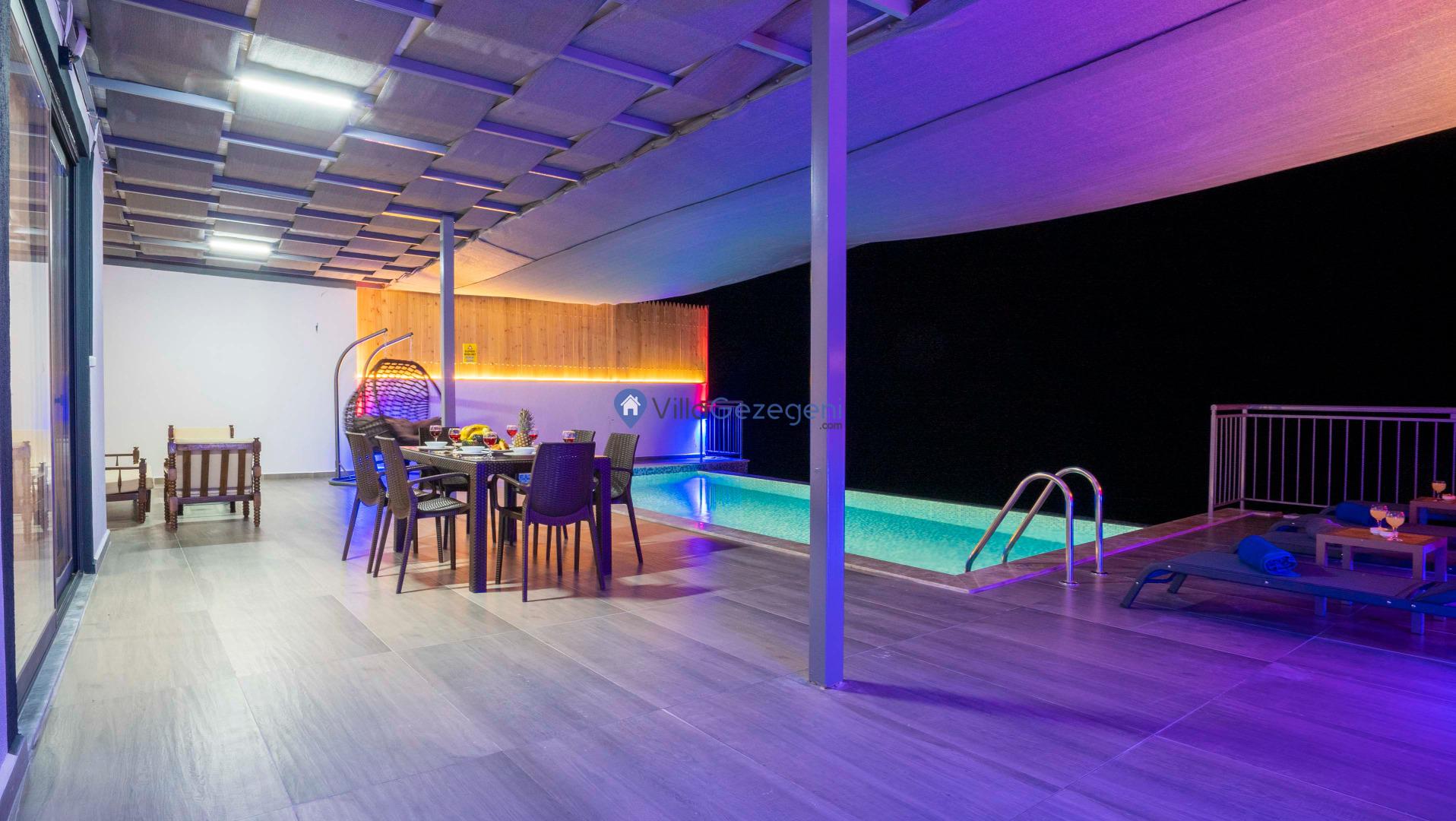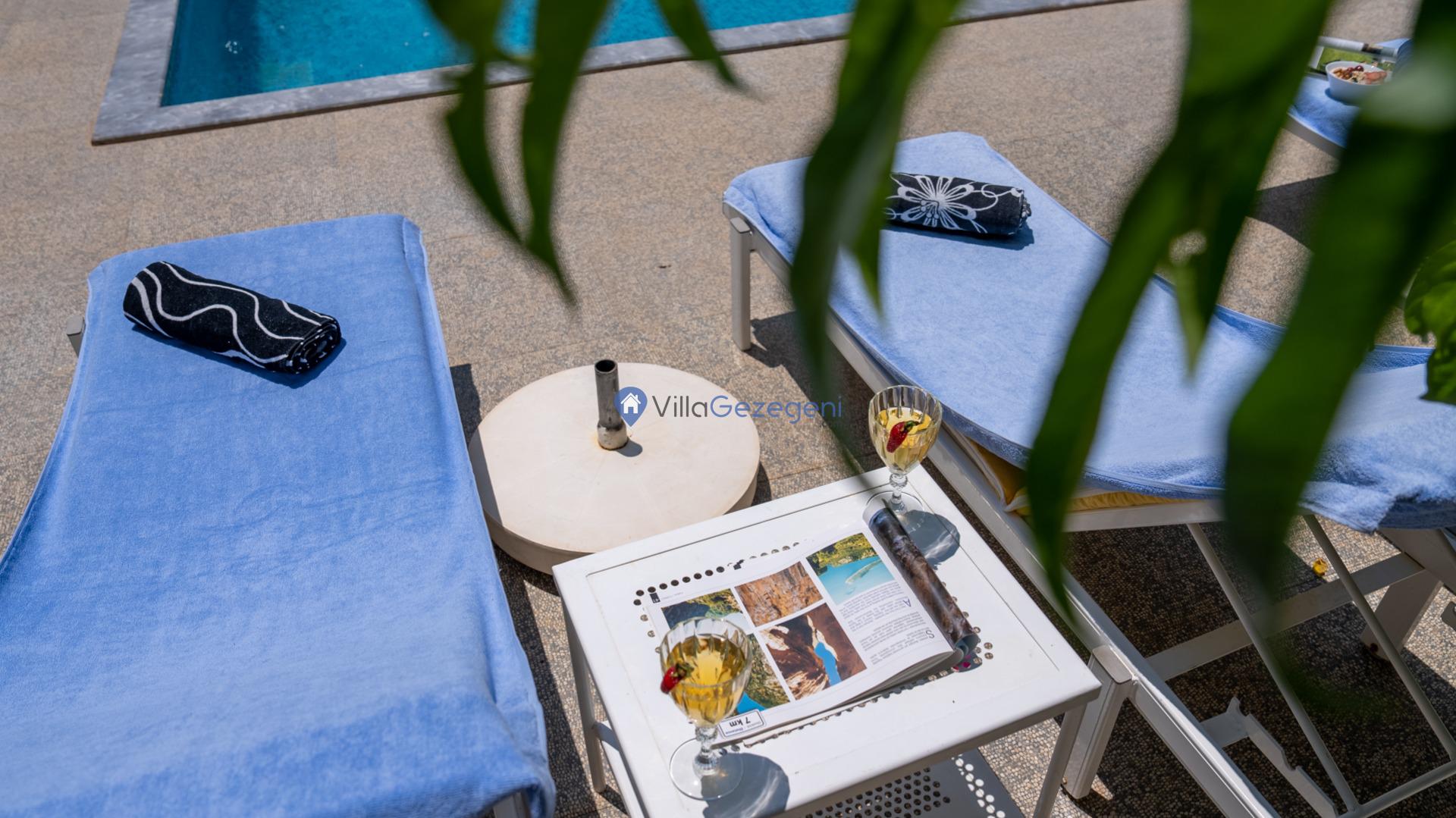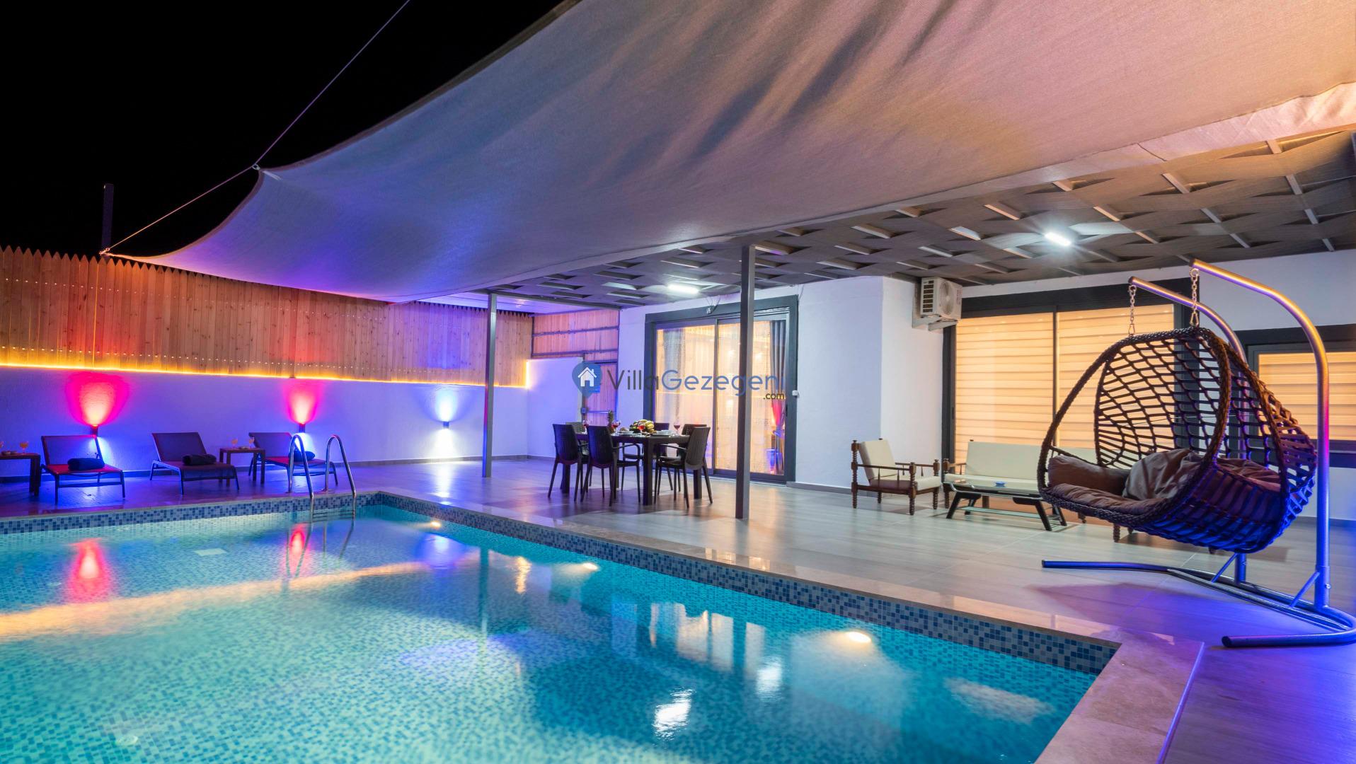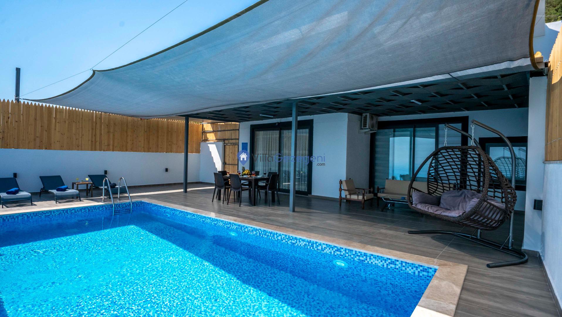 Villamızın genel konsept ve özelliklerinden tekrar bahsedecek olursak; villamızın 1 adet müstakil özel havuzu bulunmaktadır. Ortalama bir bahçeye sahip olan villamız rahatlığı ön planda tutan 3 adet yatak odası,4 yatak,3 banyo, hareket alanı geniş bir mutfak ve 6 kişinin geniş aralıklarla rahatlıkla oturabileceği koltuklara sahip salonu bulunmaktadır.