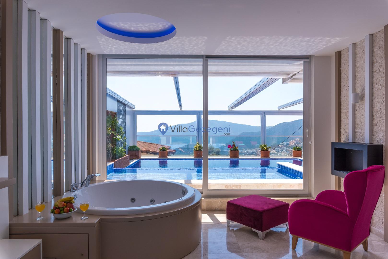 Kalkan'da Deniz Manzaralı, Jakuzili, Geniş Aile ve Arkadaş Gruplarına Uygun Kiralık Villa