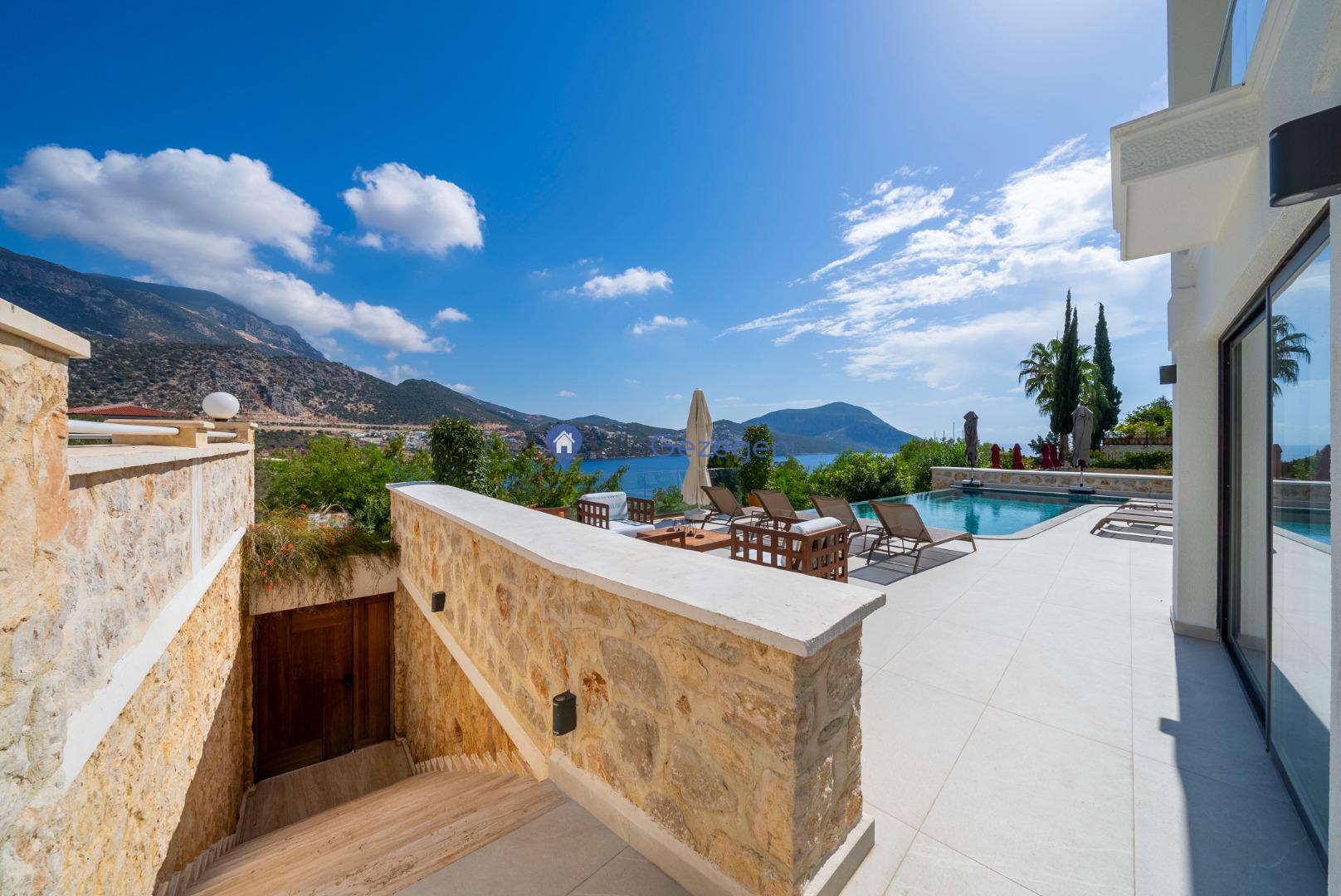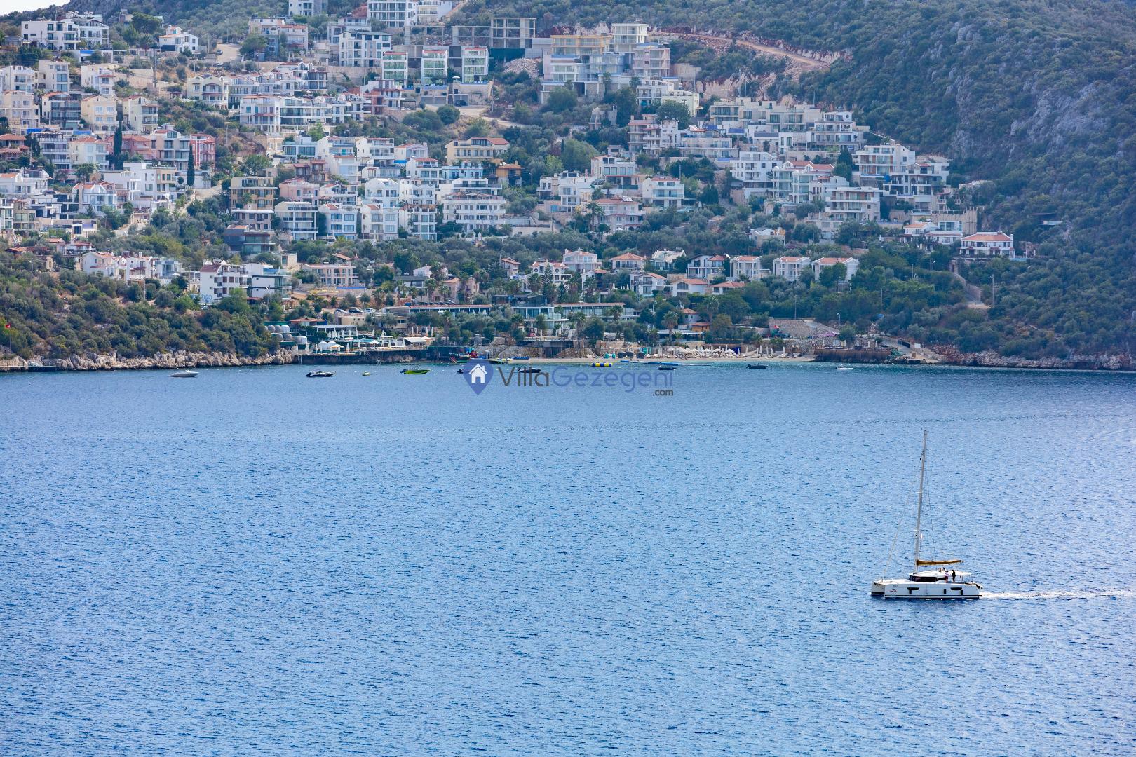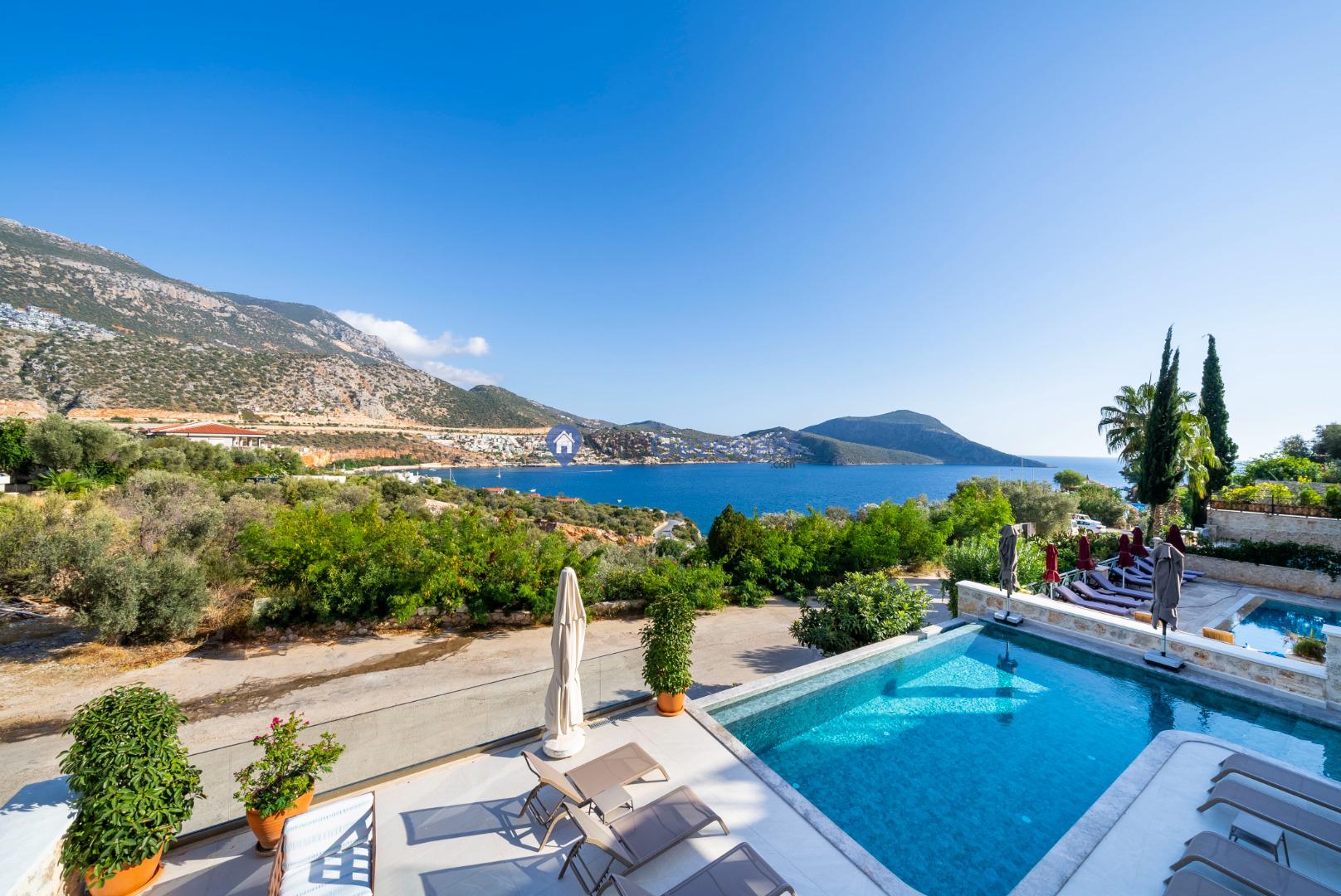 Kalkan merkeze yakın konumda bulunan deniz manzaralı kiralık tatil villası