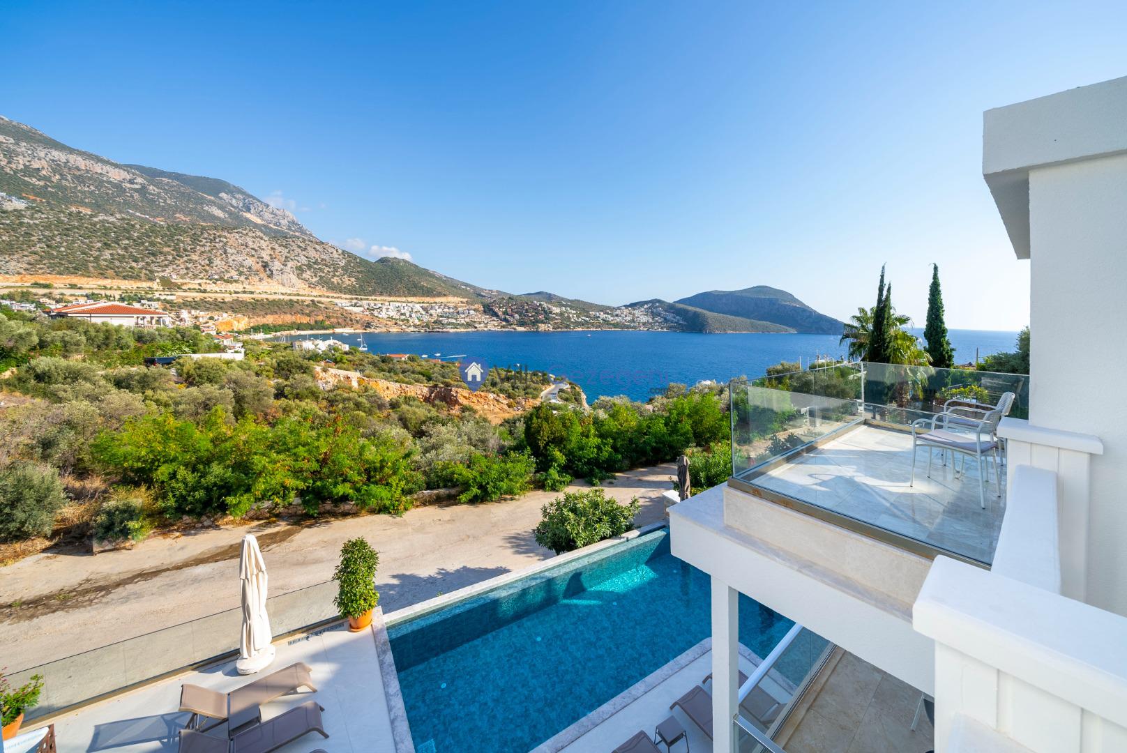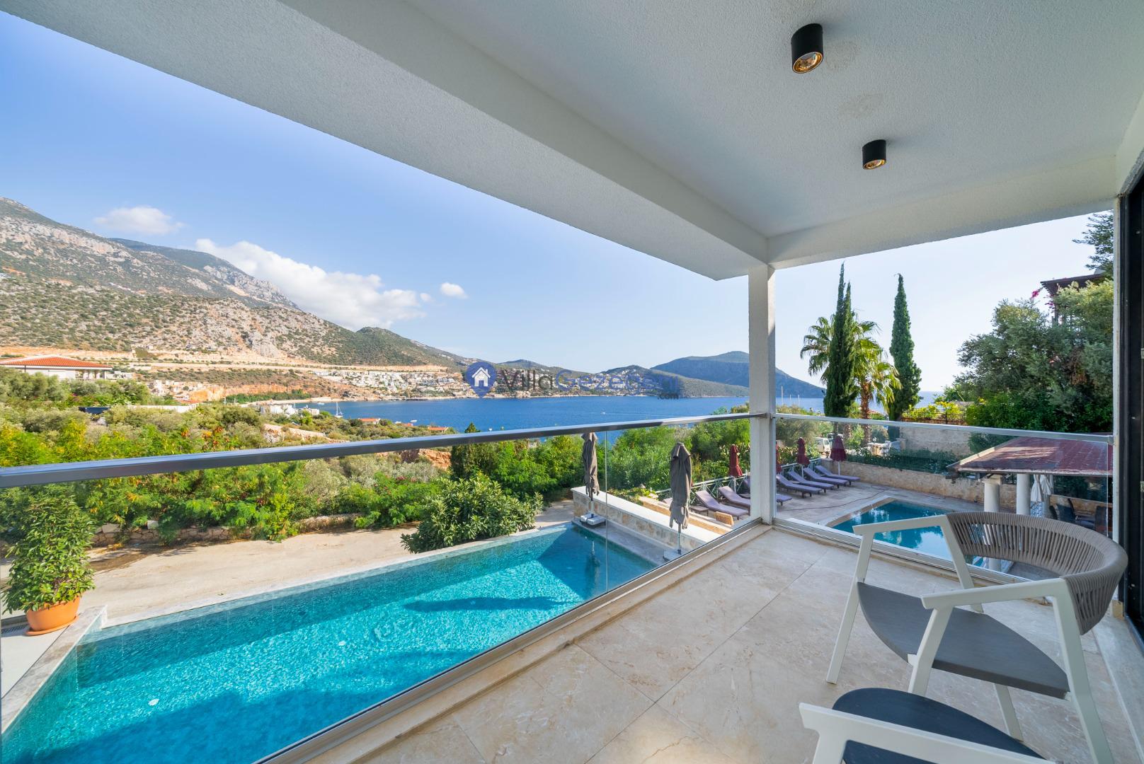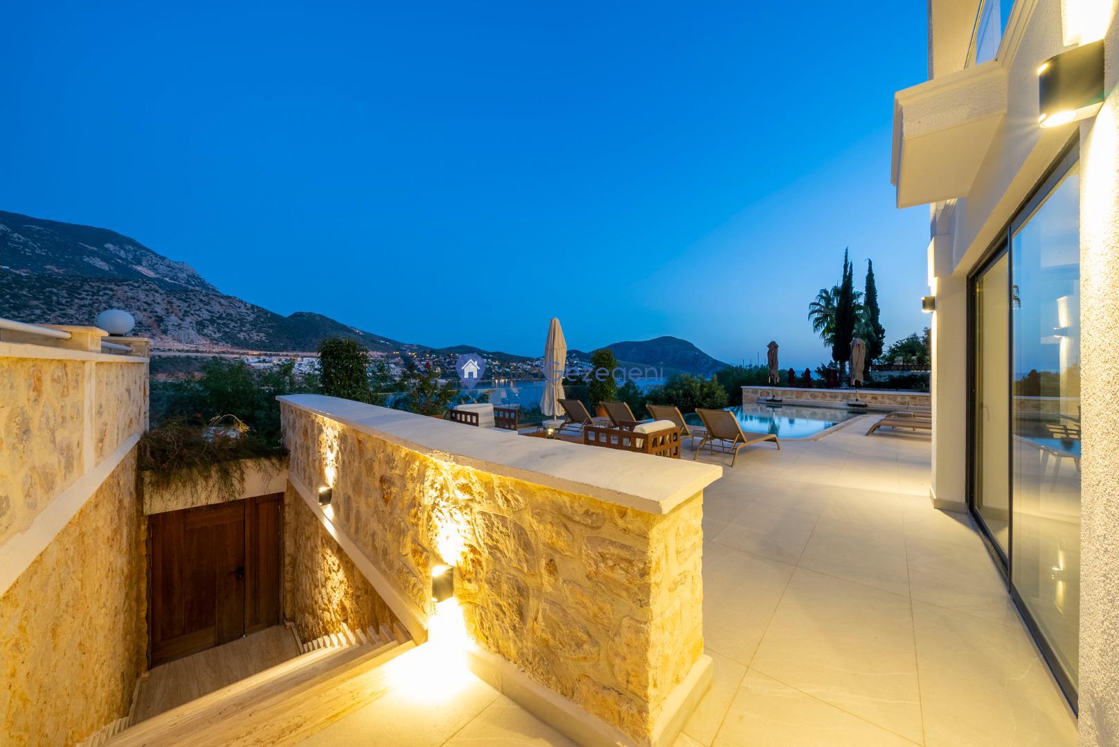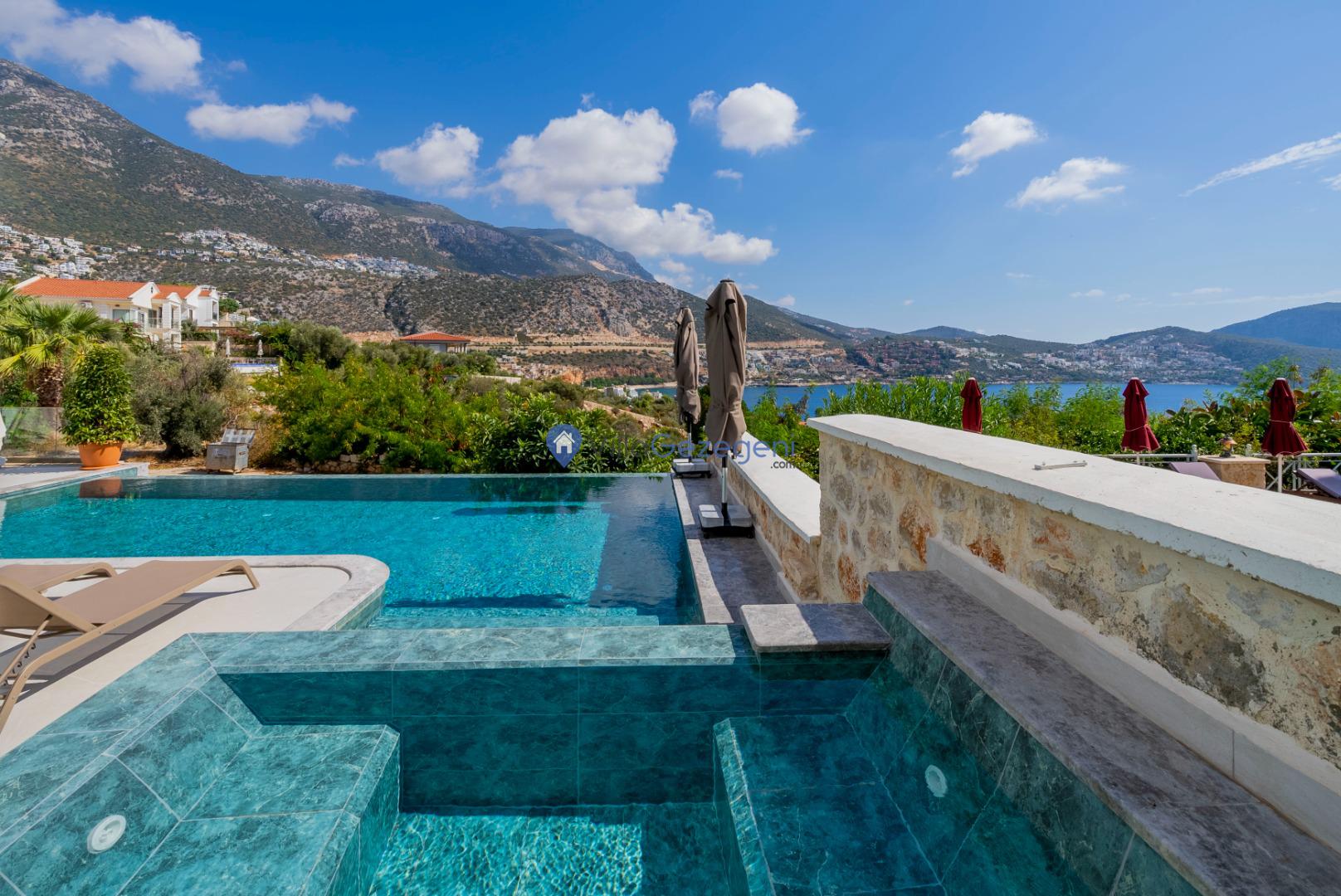 Kalkan merkeze yakın konumda bulunan deniz manzaralı kiralık tatil villası