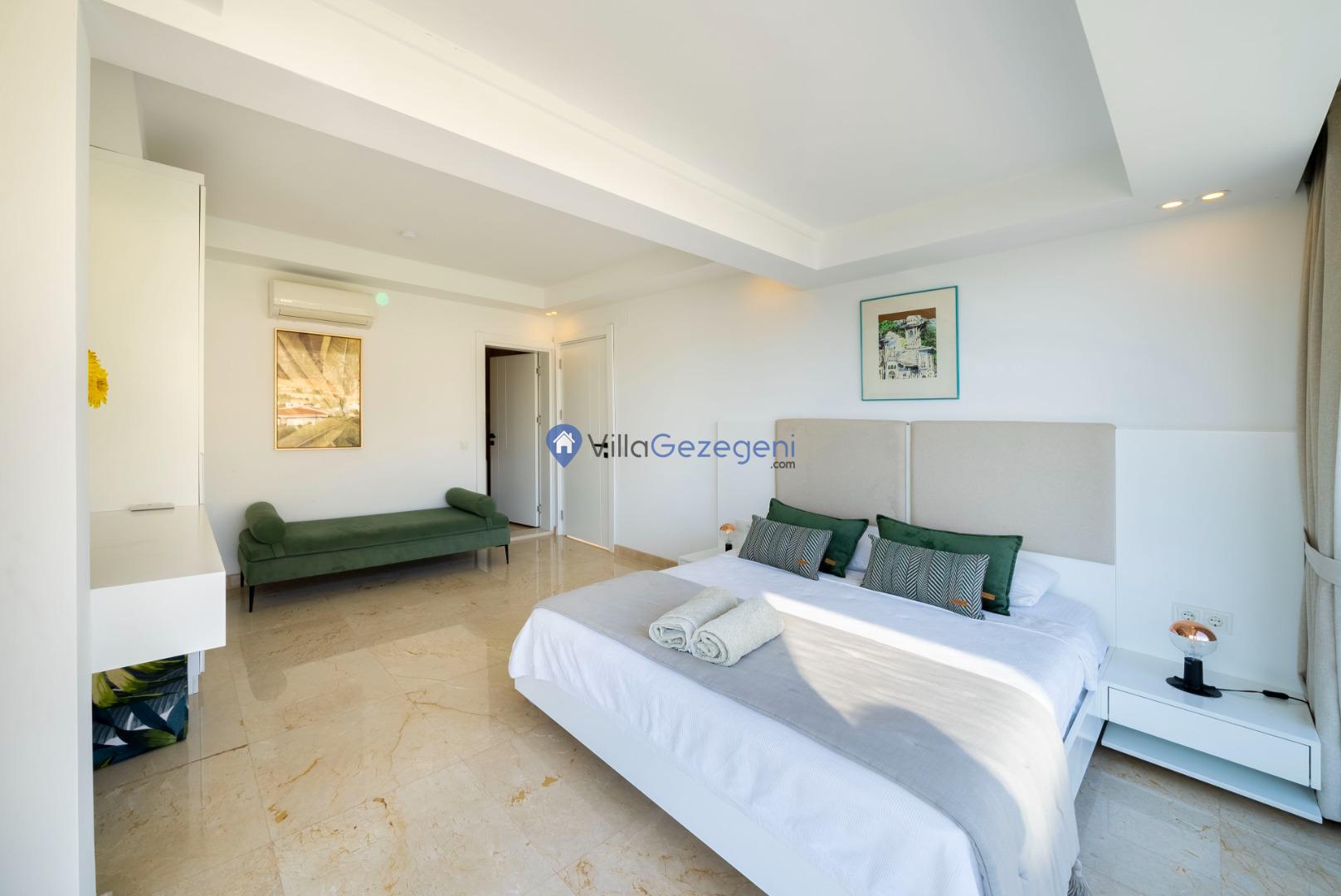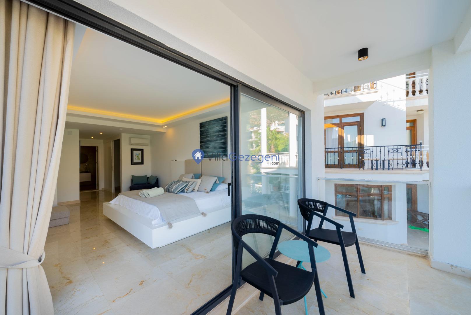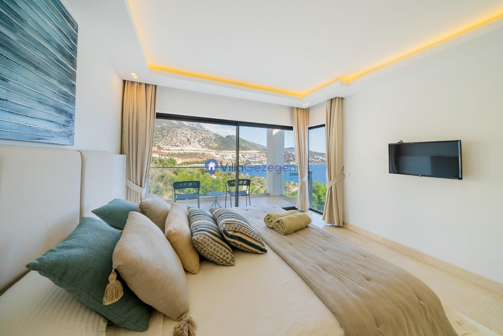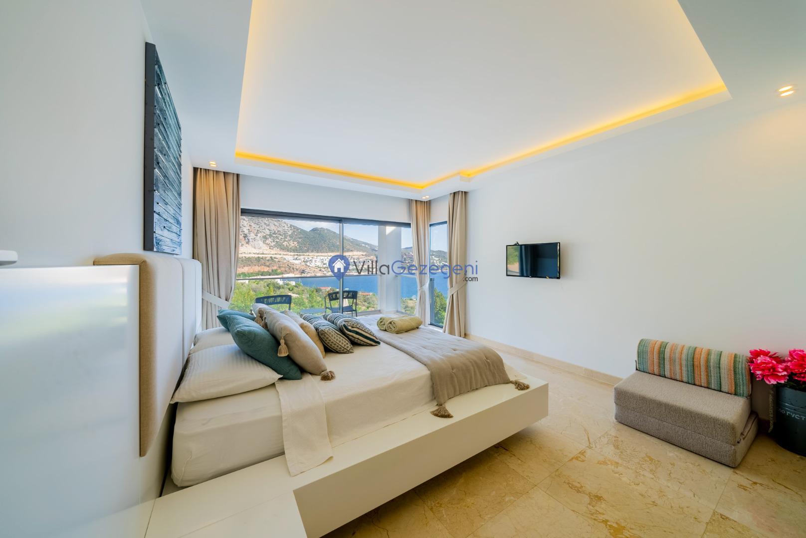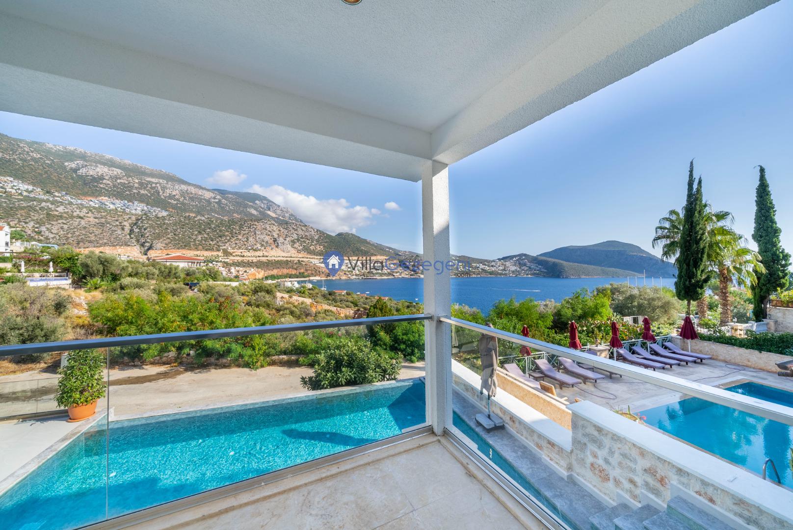 Kaş/Kalkan/Merkez Mevkiinde yer alan 5 yatak odalı 10 kişi kapasiteli deniz manzaralı geniş aile ve arkadaş grupları için uygun kiralık tatil villası.