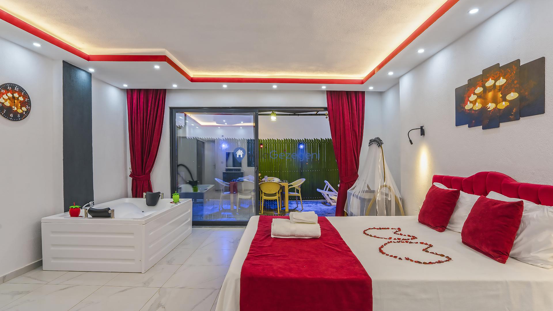 Kalkan Yeşilköy bölgesinde yer alan 2 yatak odalı,restaurantlara ve markete yakın, havuzu korunaklı, kapalı havuzlu,saunalı doğa içerisinde muhafazakar kiralık aile ve balayı villası.