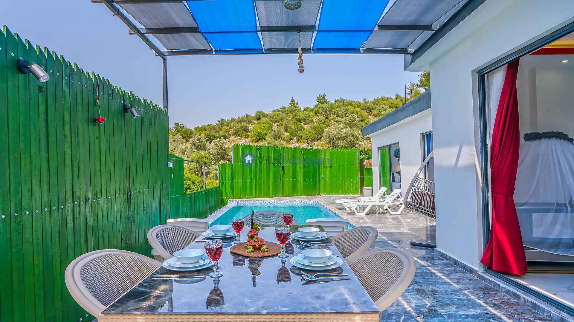 Kaş/Kalkan/Yeşilköy Bölgesinde yer alan 2 yatak odalı 4 kişi kapasiteli doğa içerisinde lüks tatil villasıdır.