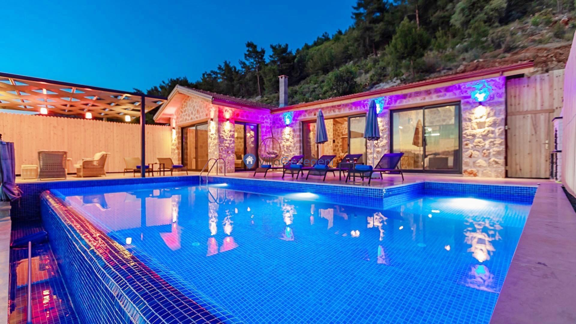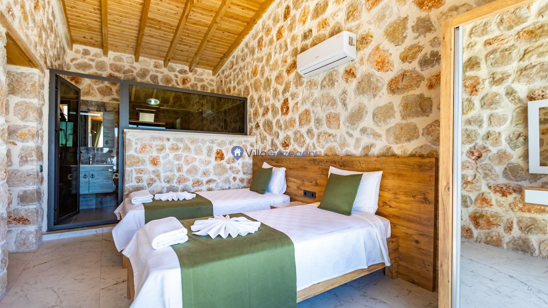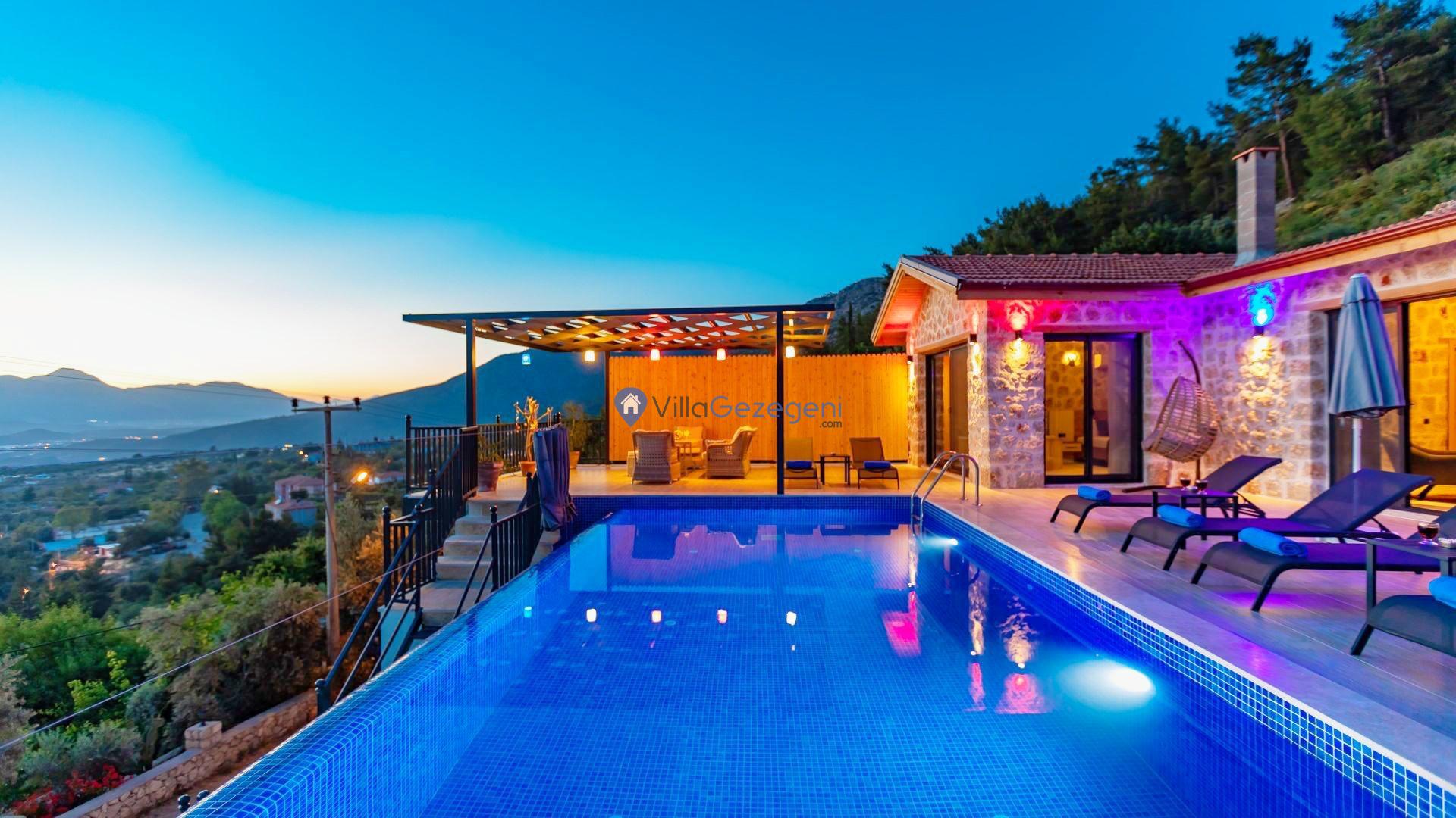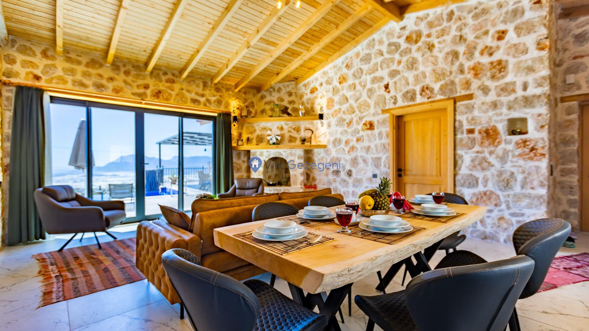 Kaş/Kalkan/Üzümlü Bölgesinde yer Alan 3 yatak odalı 6 kişi kapasiteli tatil villasıdır.