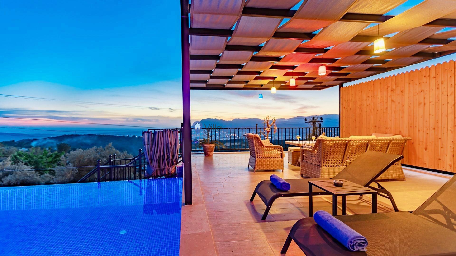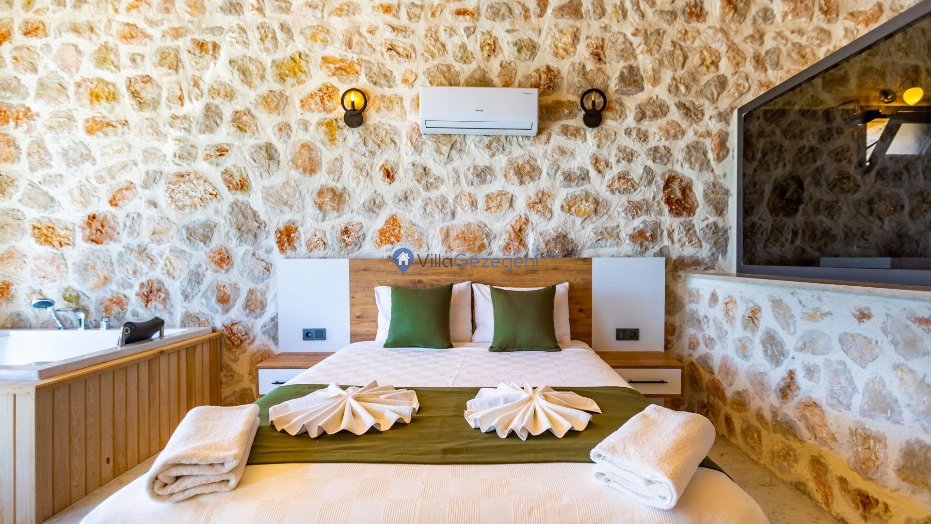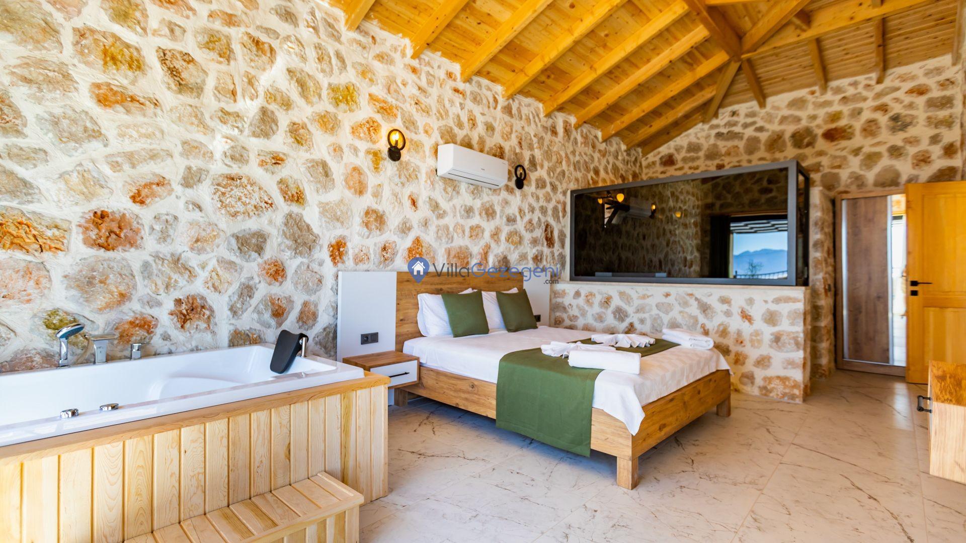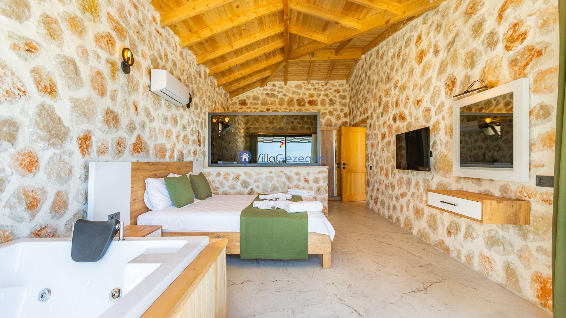 Kaş/Kalkan/Üzümlü Bölgesinde yer Alan 3 yatak odalı 6 kişi kapasiteli tatil villasıdır.