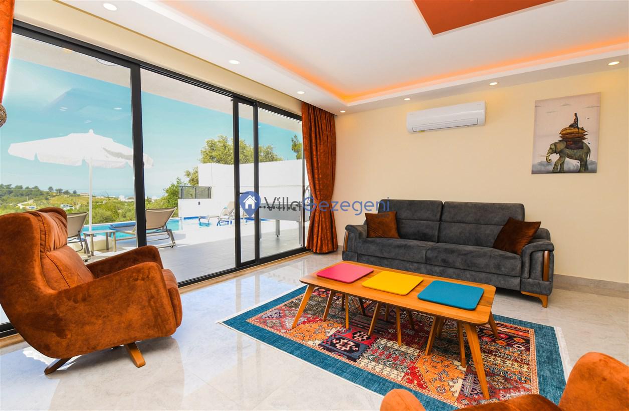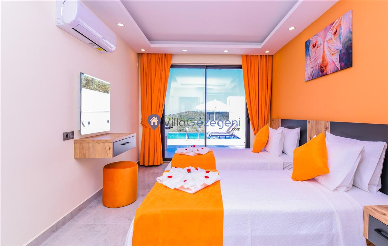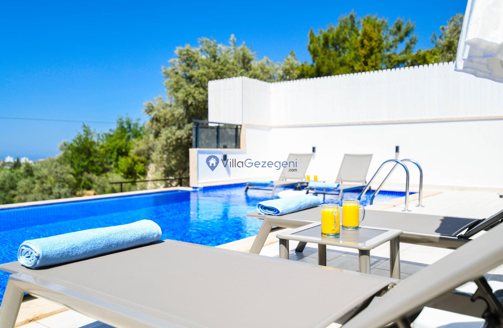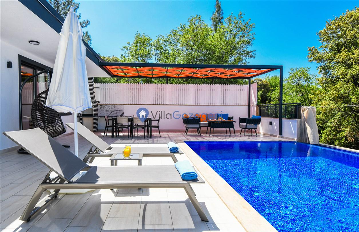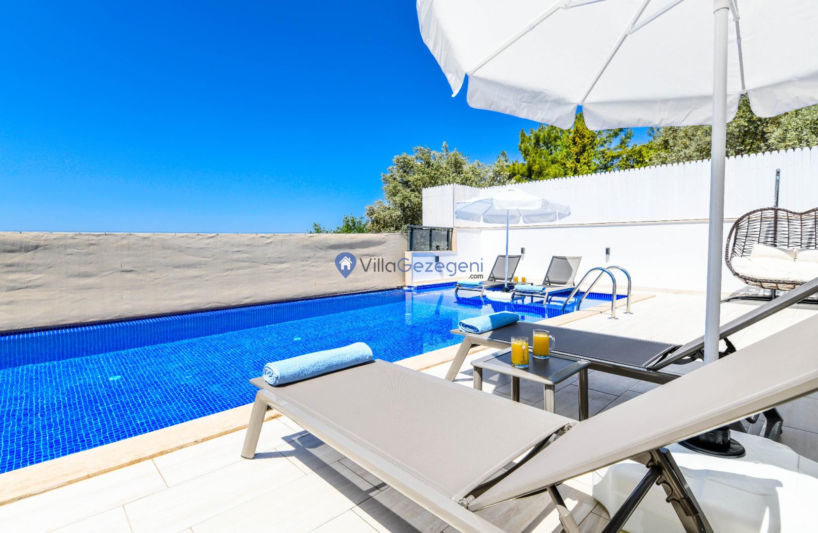 Kalkan Üzümlü' de bulunan, 2 yatak odalı 4 kişilik korunaklı kiralık tatil villası