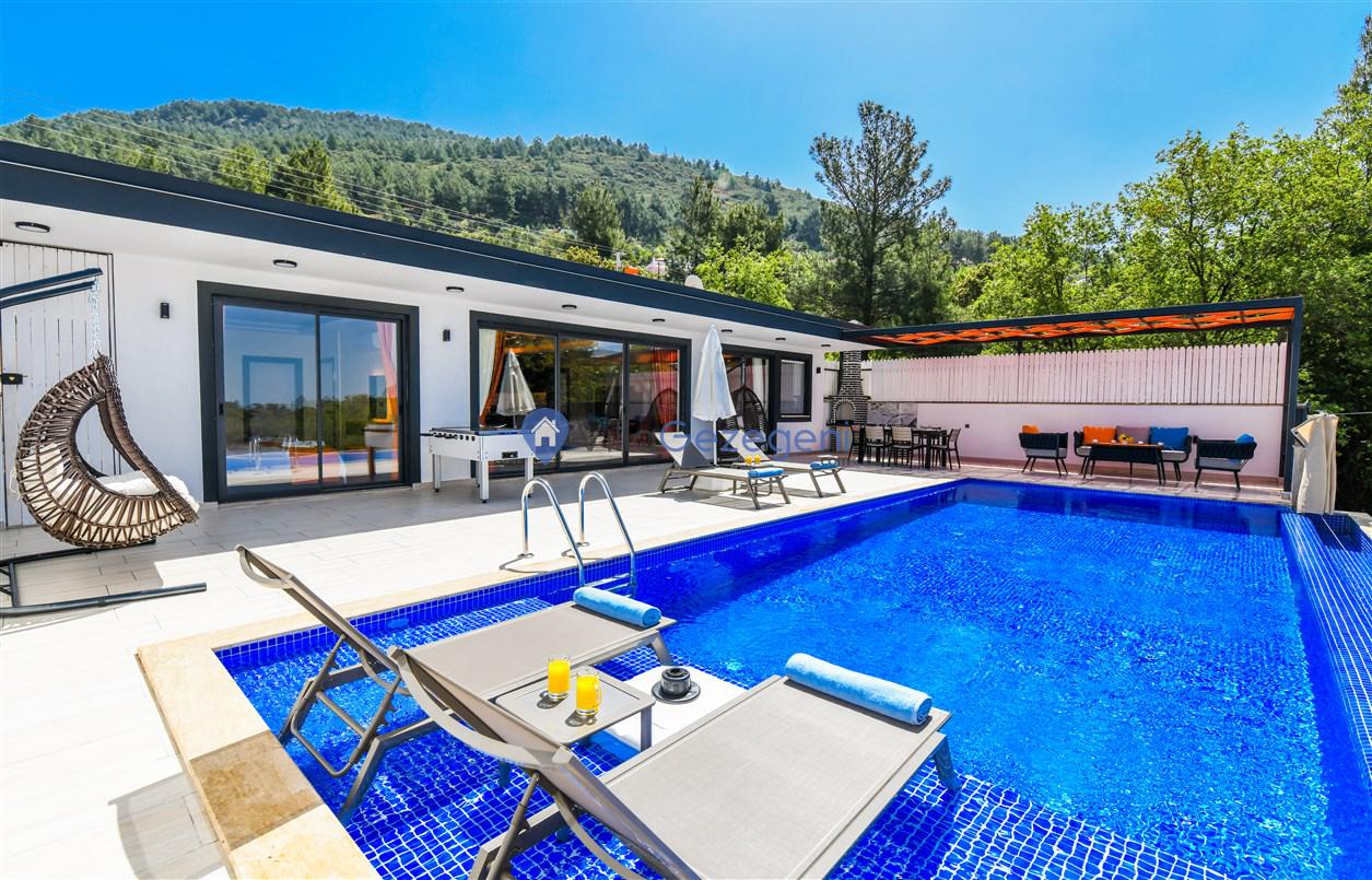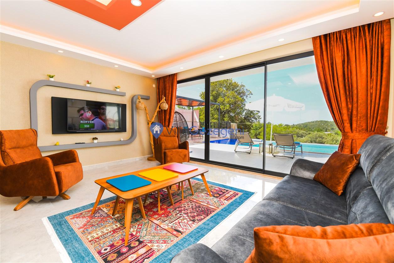Kalkan Üzümlü’de muhafazakar kiralık tatil villası Villa Atılgan; özel havuz, jakuzi ve doğa manzarası ile 6 kişilik huzurlu bir tatil sunuyor!