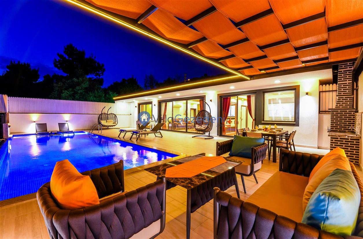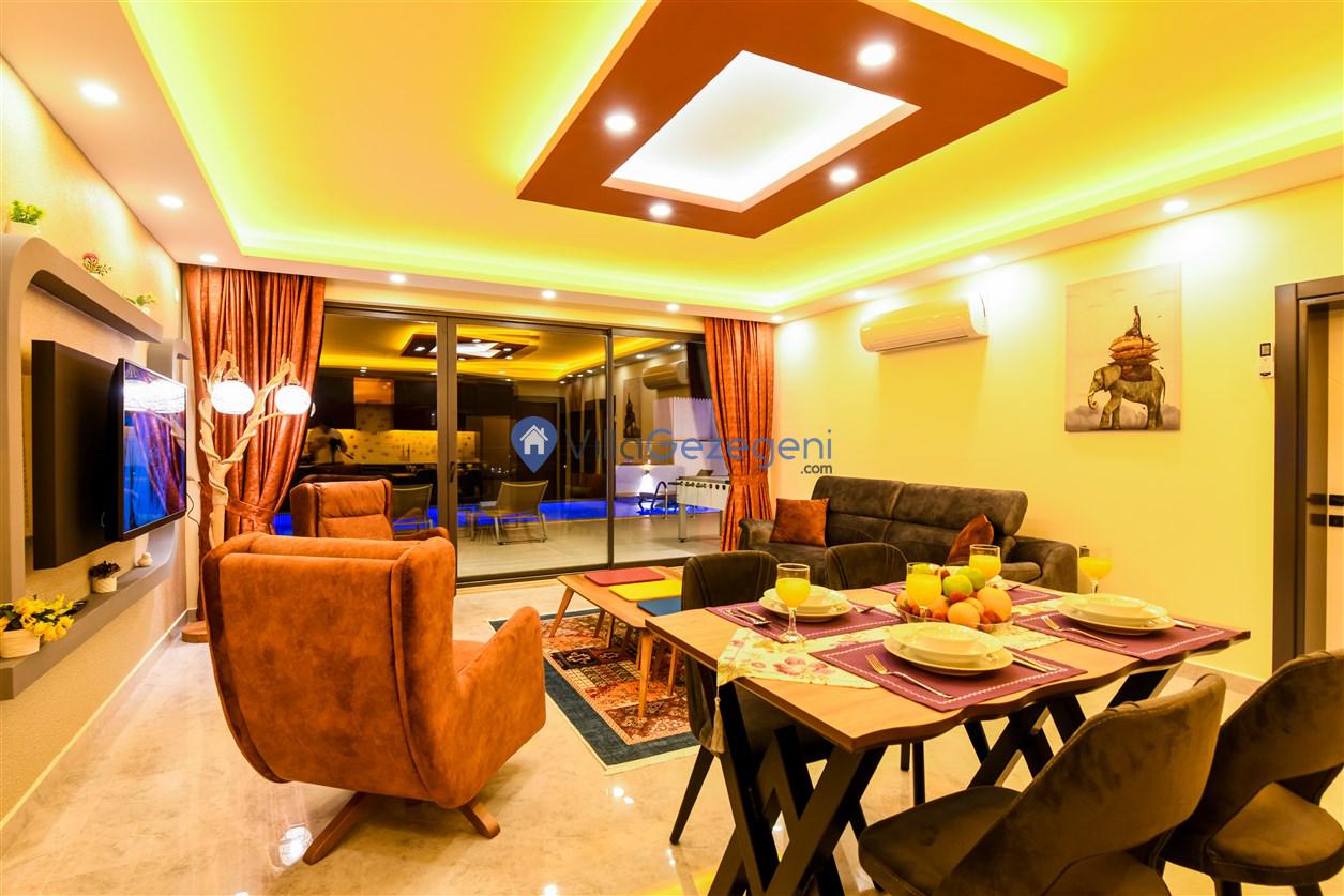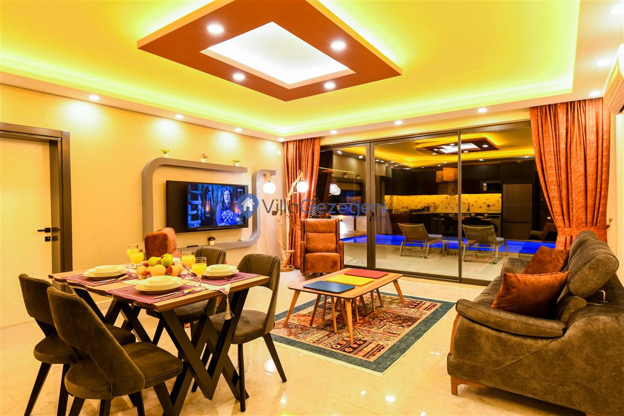 Villamızın genel konsept ve özelliklerinden tekrar bahsedecek olursak; villamızın 1 adet müstakil özel havuzu bulunmaktadır. Ortalama bir bahçeye sahip olan villamız rahatlığı ön planda tutan 2 adet yatak odası,3 yatak, 2 banyo, hareket alanı geniş bir mutfak ve 4 kişinin geniş aralıklarla rahatlıkla oturabileceği koltuklara sahip salonu bulunmaktadır.