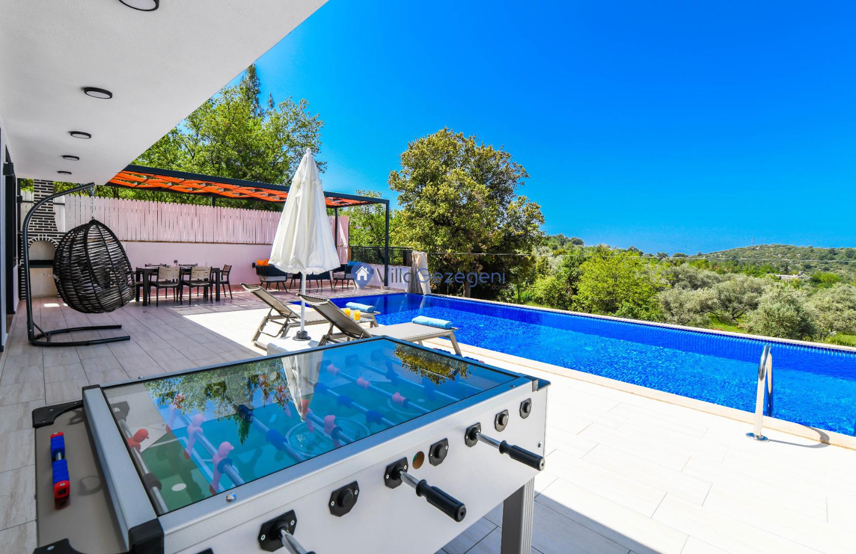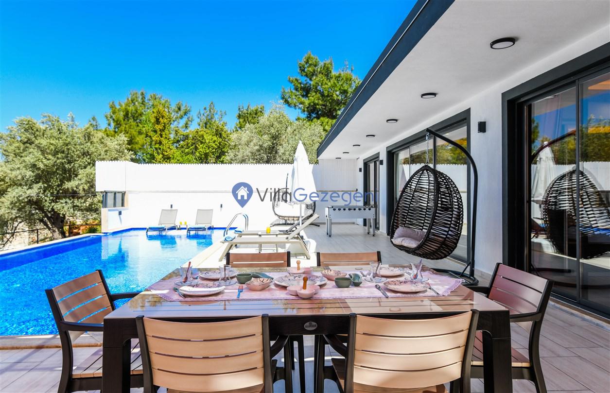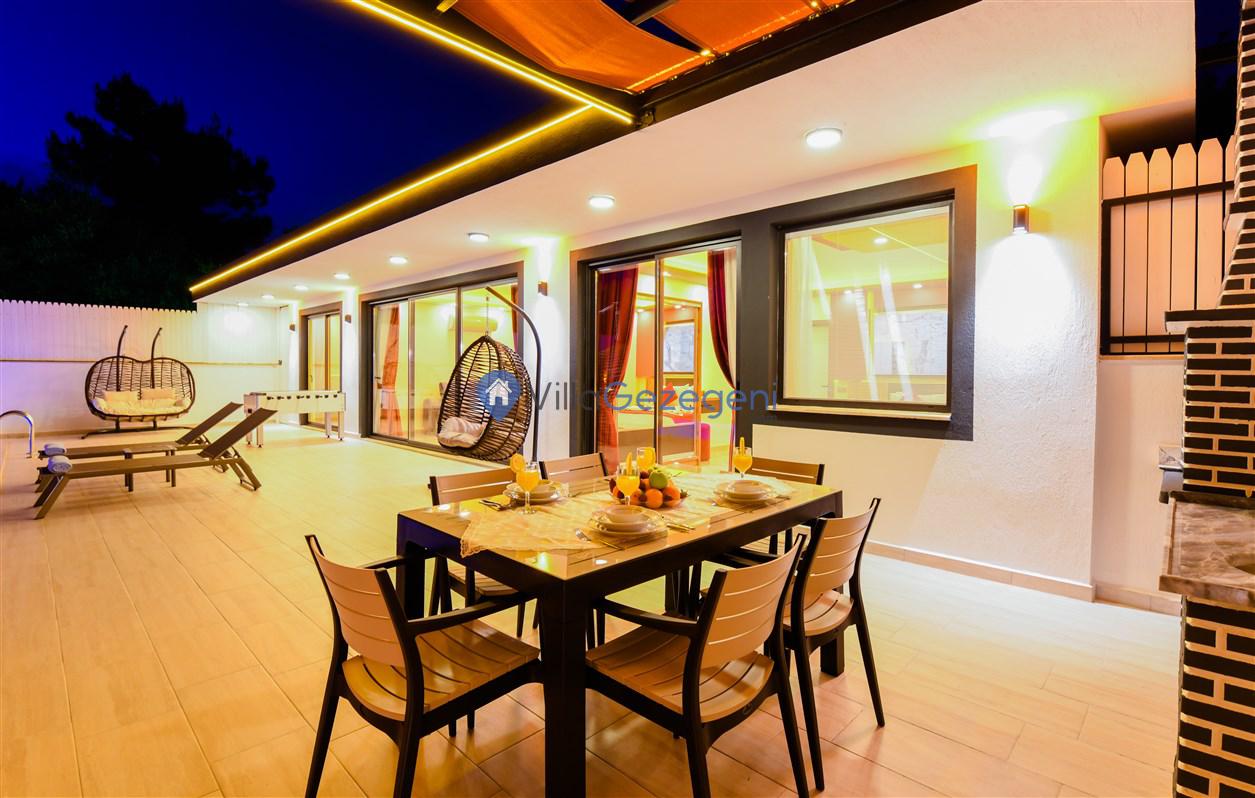 Yemek masası ve rahat bahçe mobilyaları, villamızın bahçesinde sizin için hazırlandı. Bu eşsiz ortamda sevdiklerinizle unutulmaz anlar yaşama fırsatını yakalayabilirsiniz.
