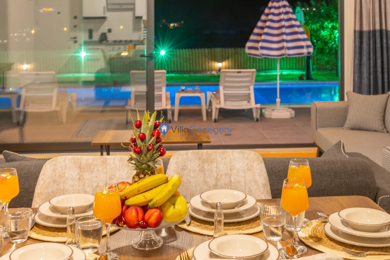 Yemek masası ve rahat bahçe mobilyaları, villamızın bahçesinde sizin için hazırlandı. Bu eşsiz ortamda sevdiklerinizle unutulmaz anlar yaşama fırsatını yakalayabilirsiniz.