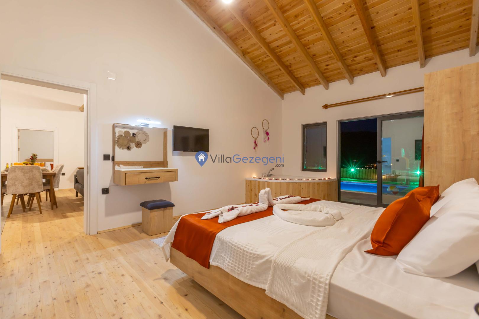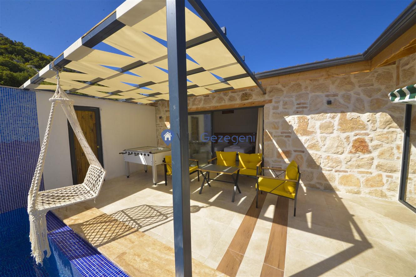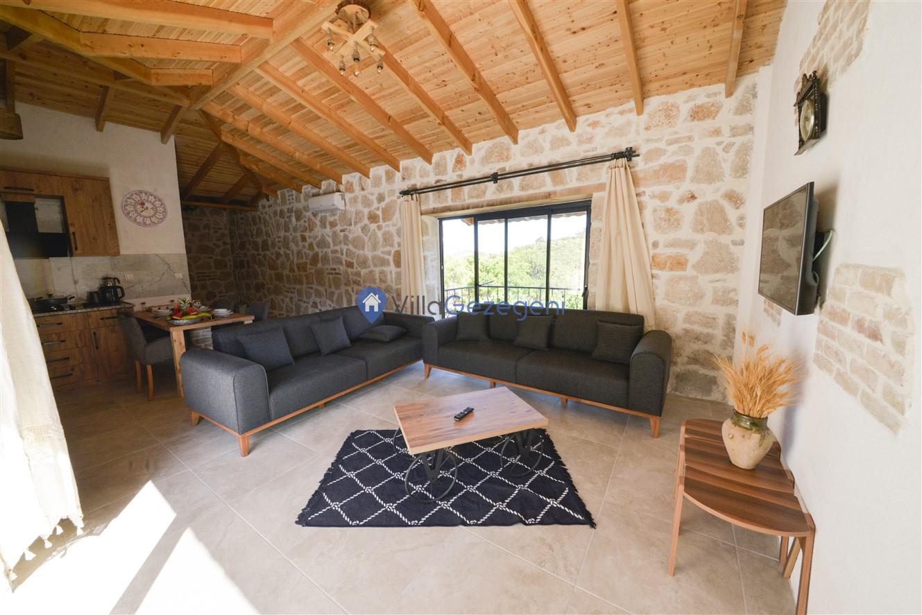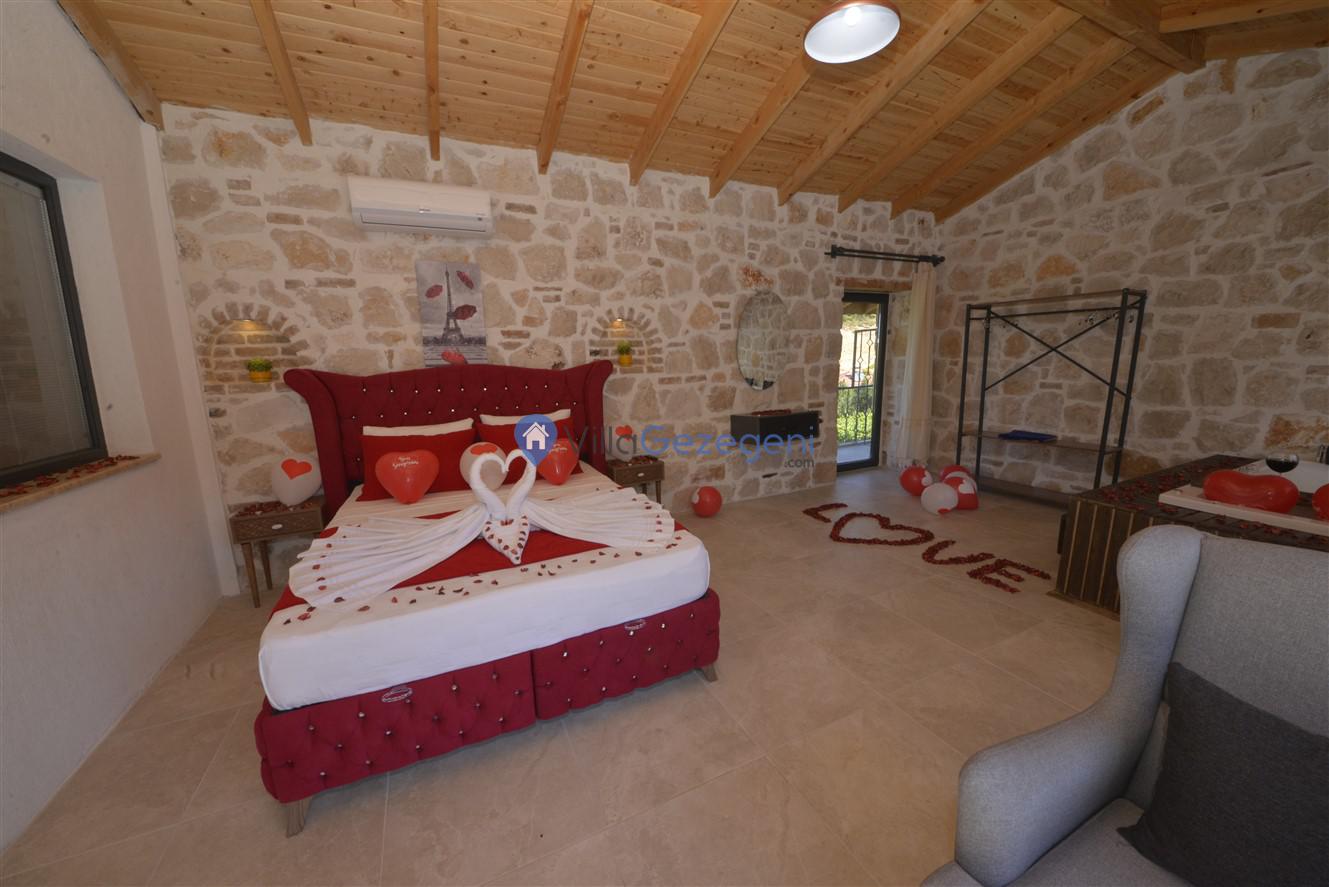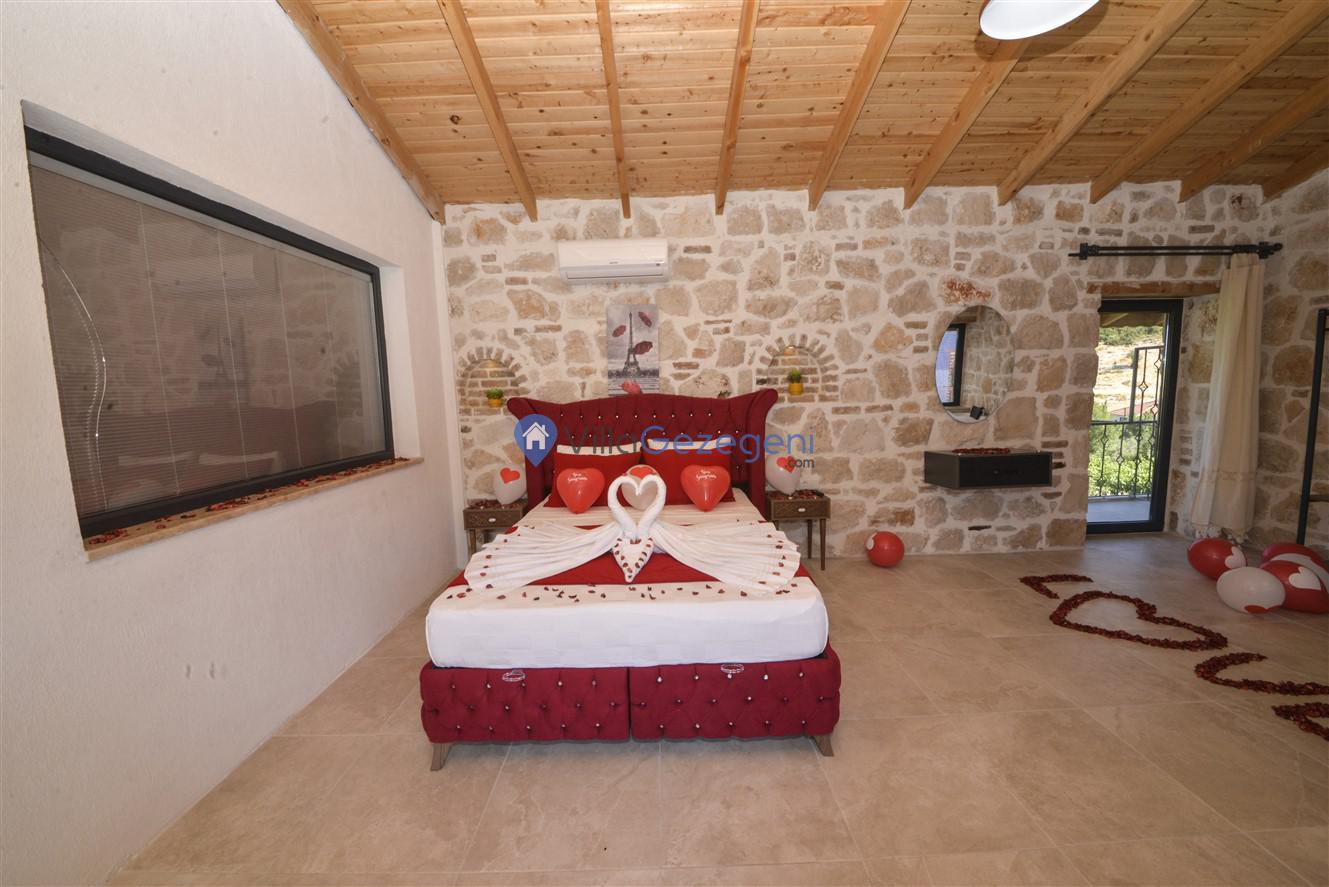 Kalkan Sarıbelen Mevkiinde yer alan tek yatak odalı 2 kişi kapasiteli Muhafazakar balayı villası.