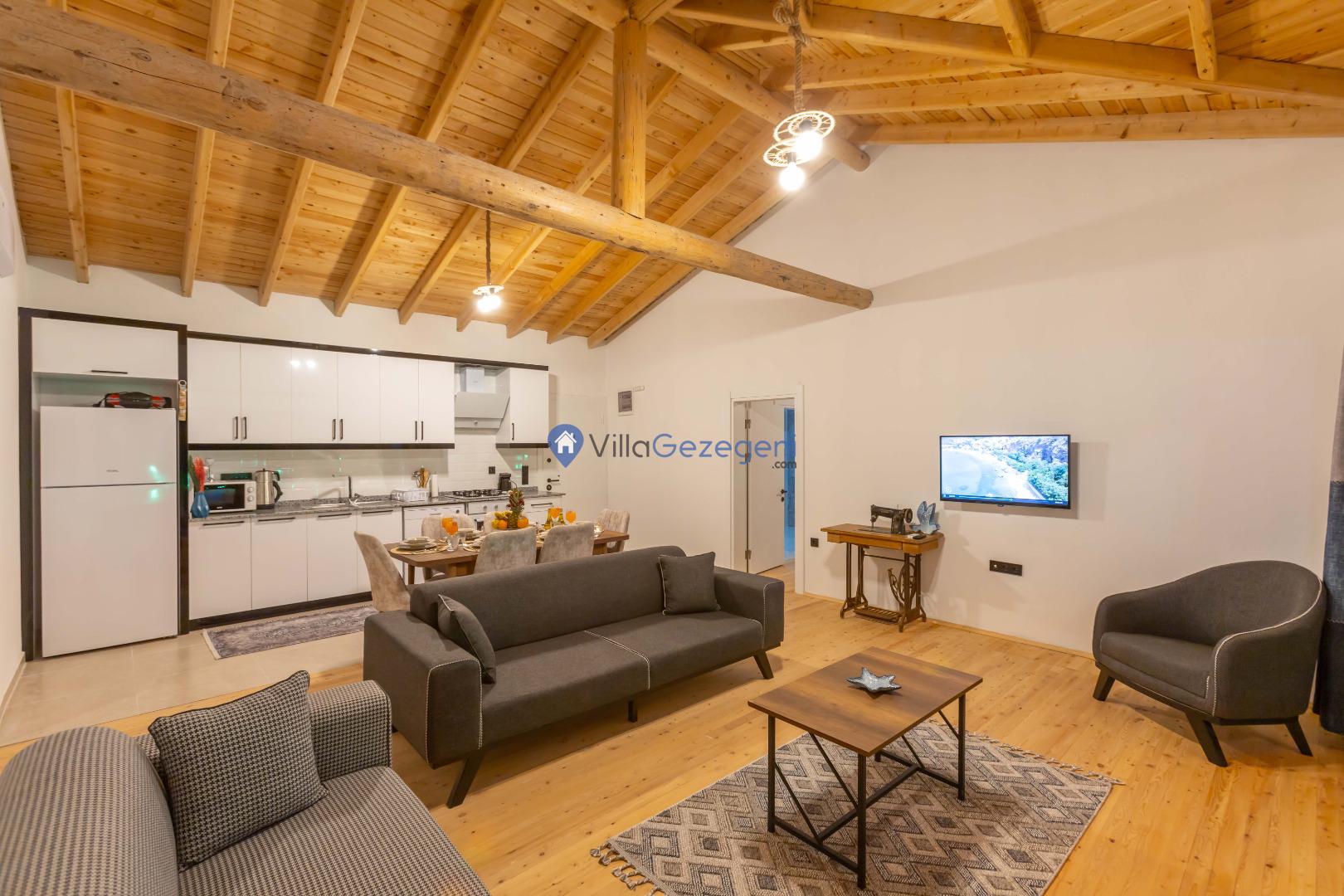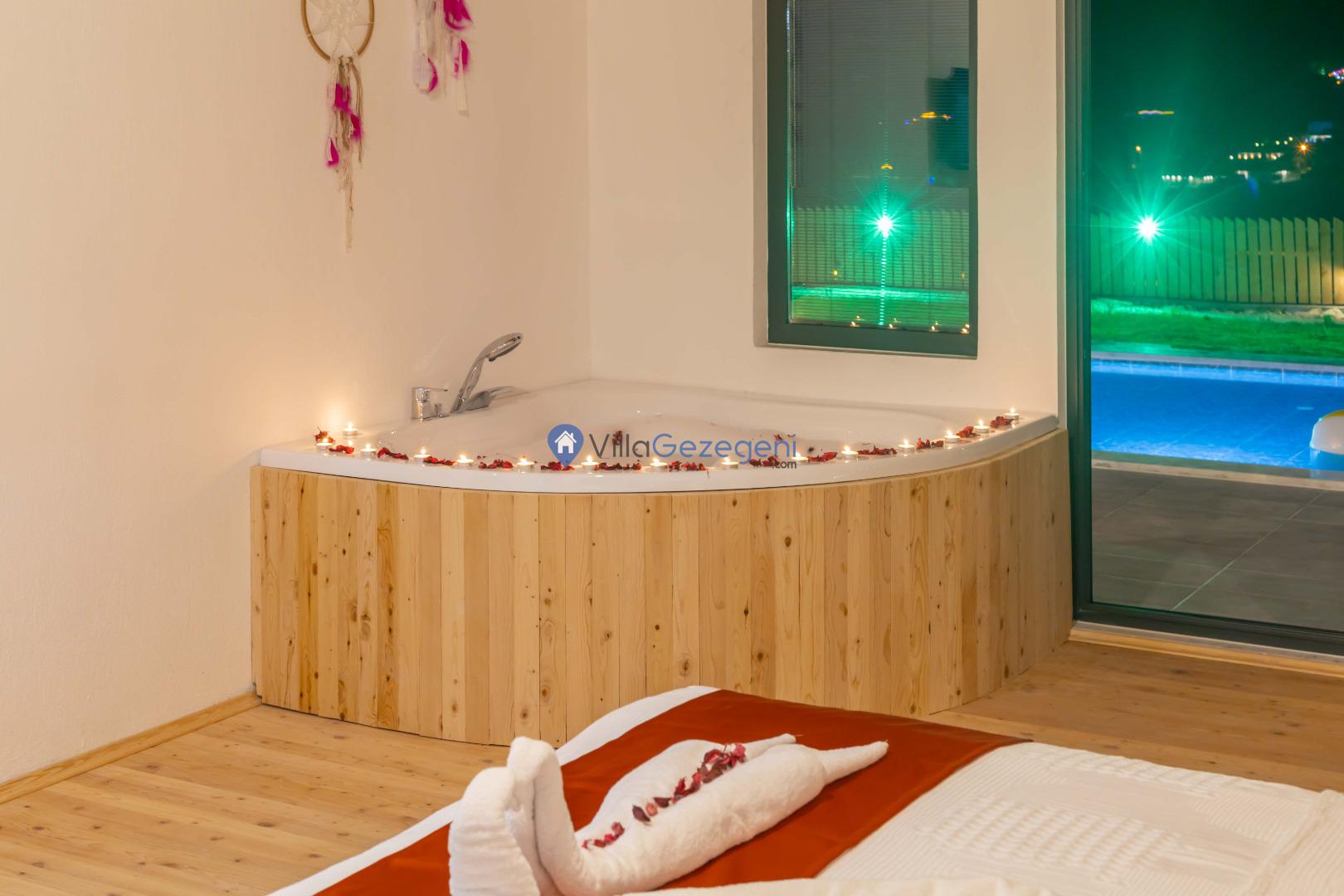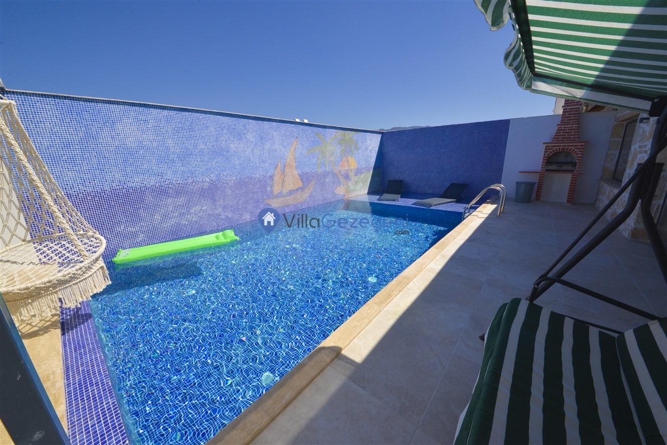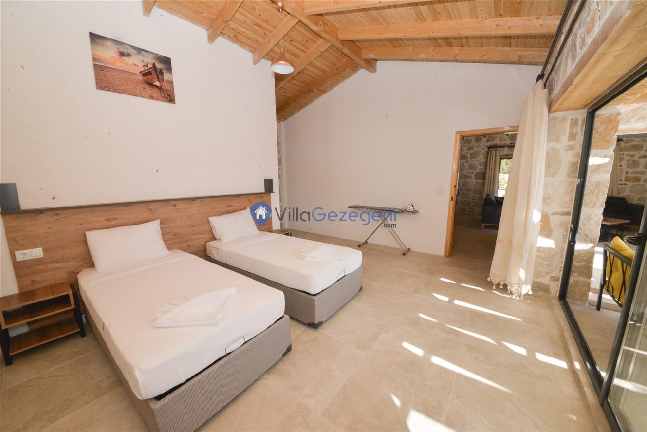 Kalkan Sarıbelen Mevkiinde yer alan tek yatak odalı 2 kişi kapasiteli Muhafazakar balayı villası.