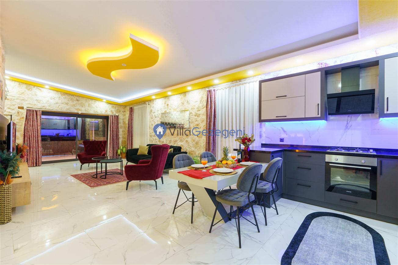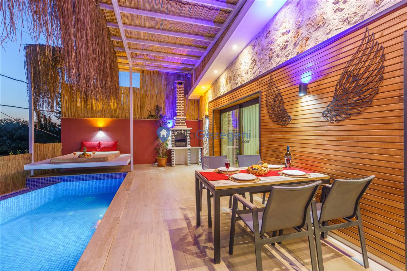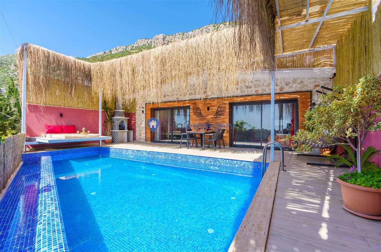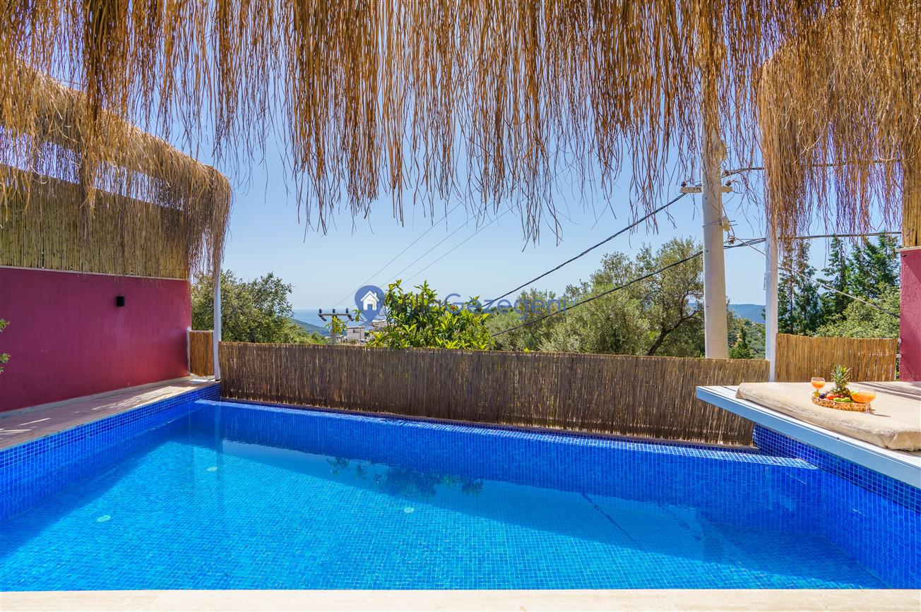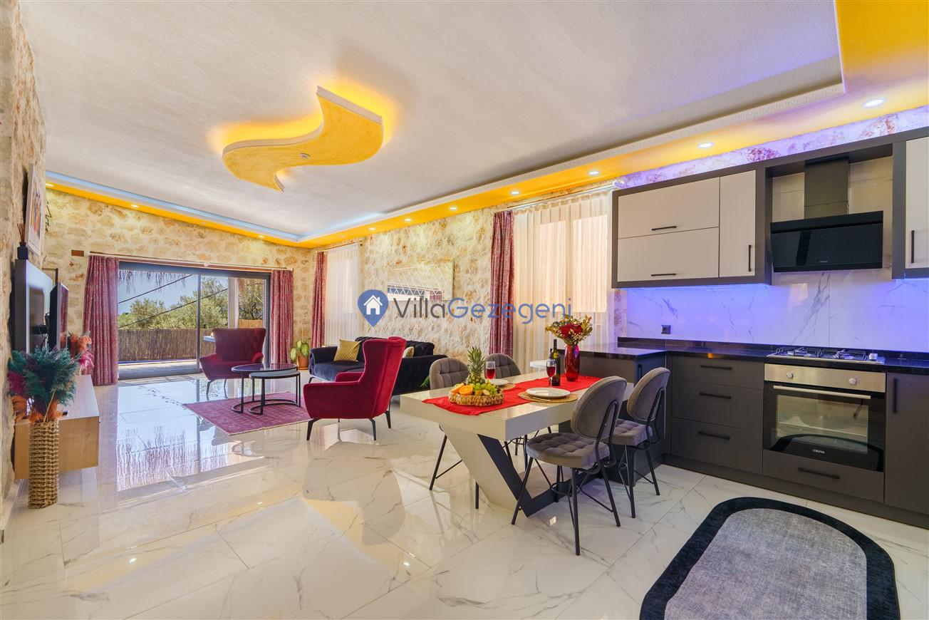 Kalkan Kördere mevkiinde bulunan tek yatak odalı 2 kişilik merkeze yakın muhafazakar balayı villası