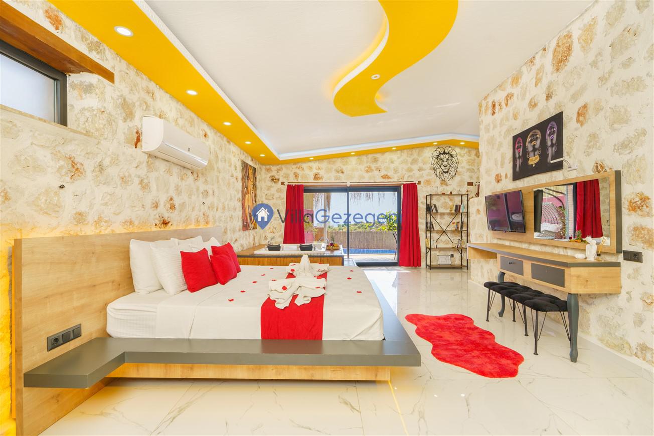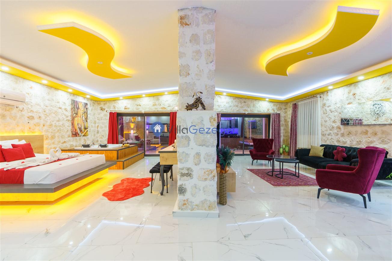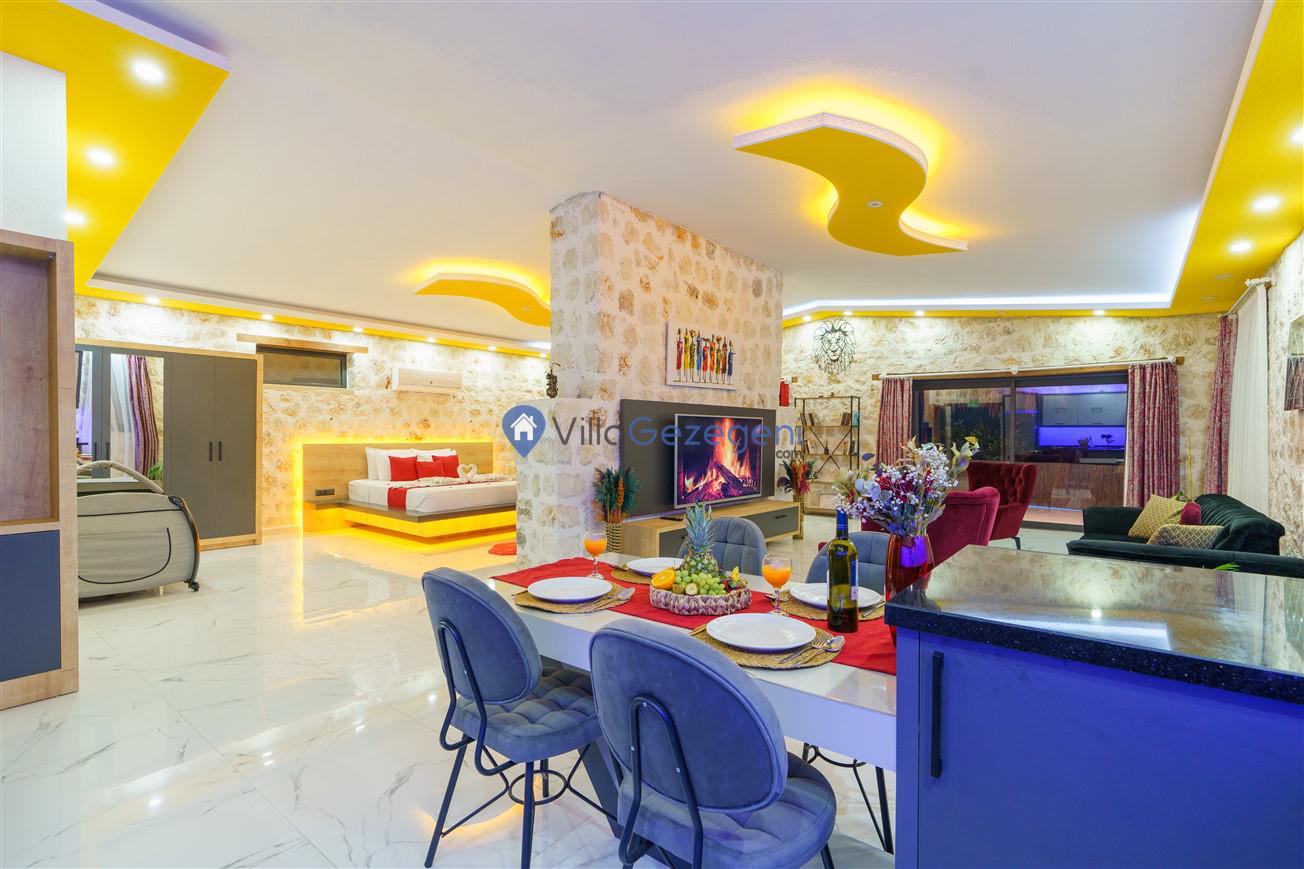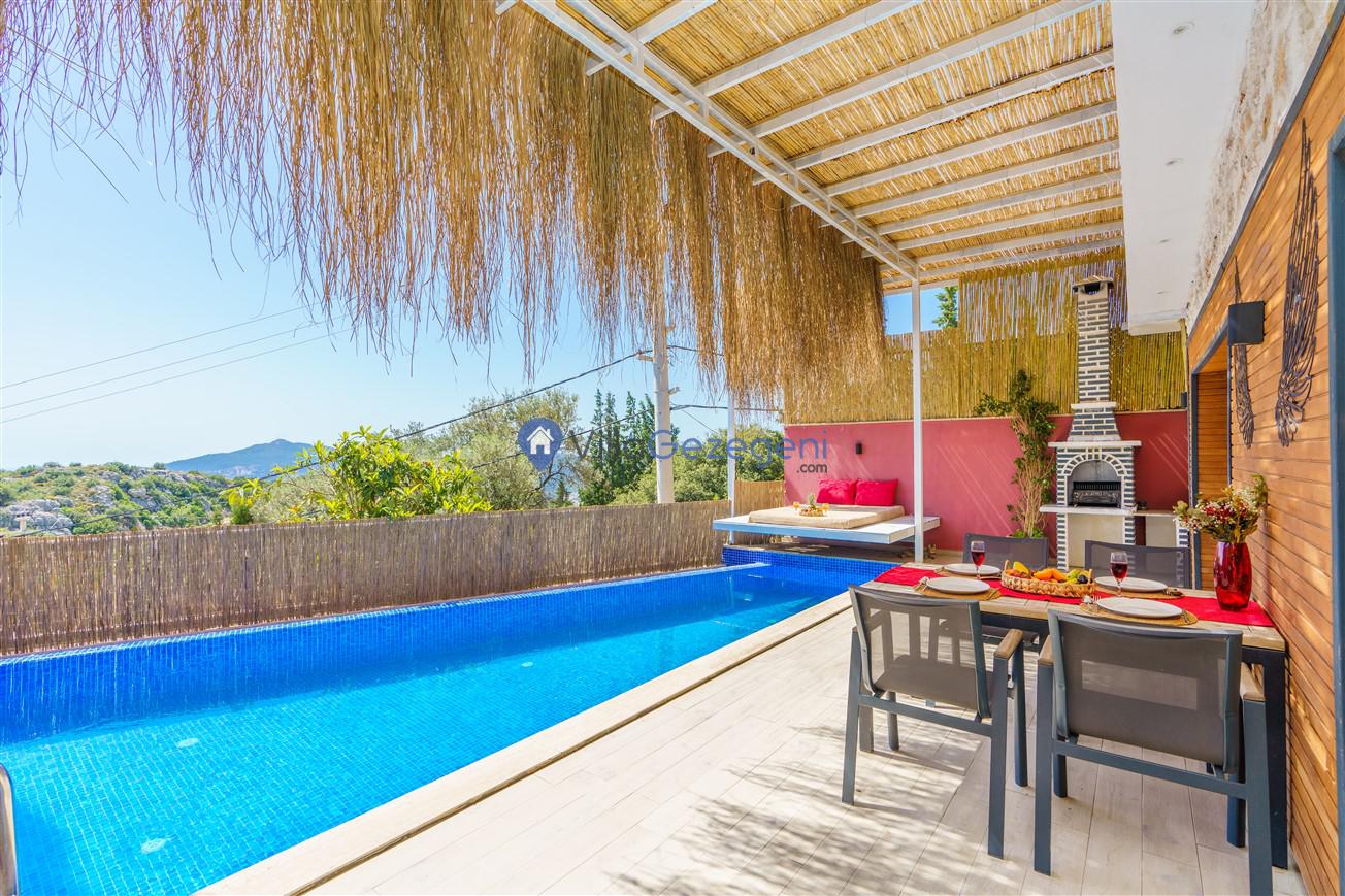 Kalkan Kördere mevkiinde bulunan tek yatak odalı 2 kişilik merkeze yakın muhafazakar balayı villası