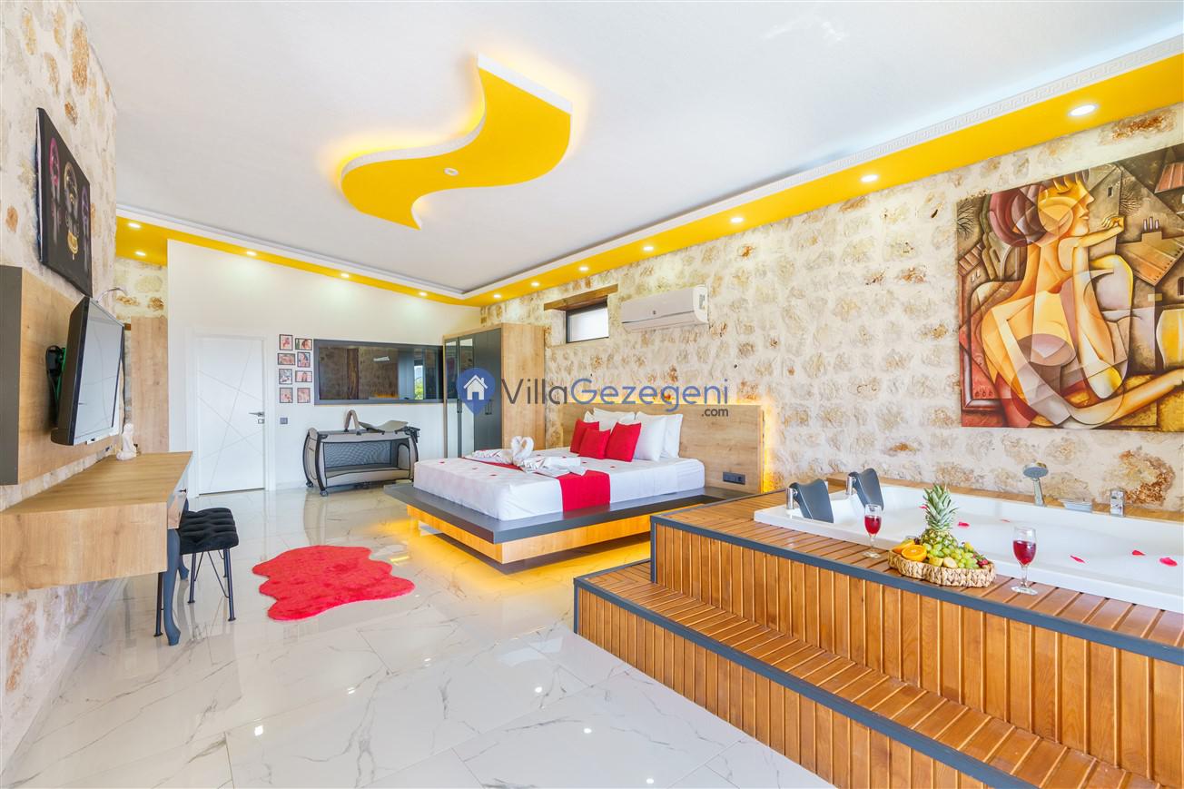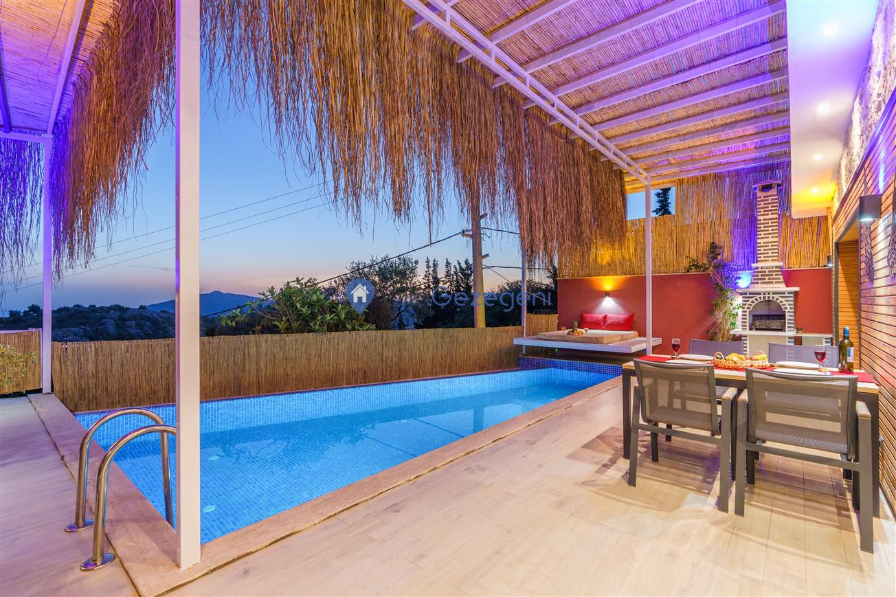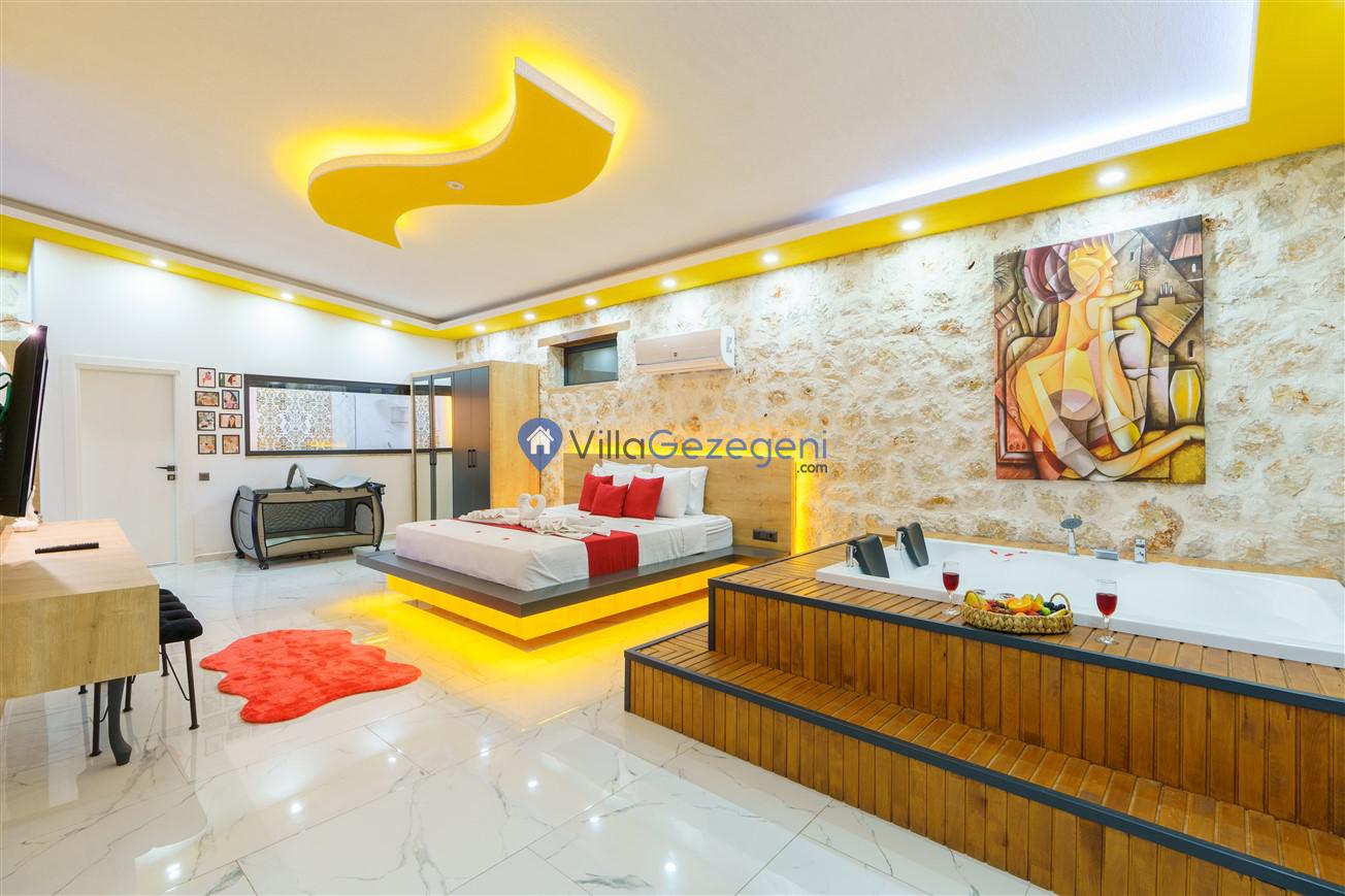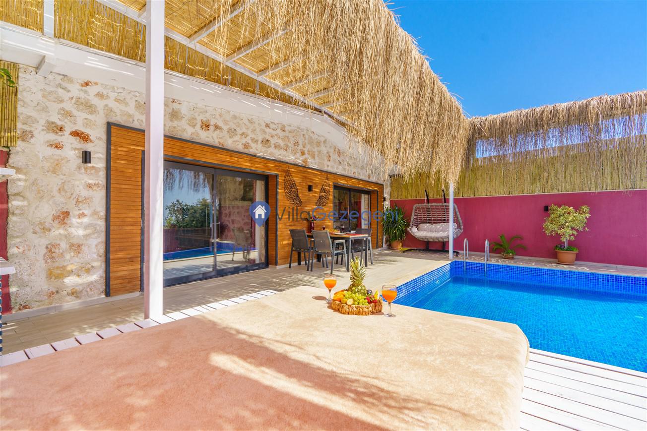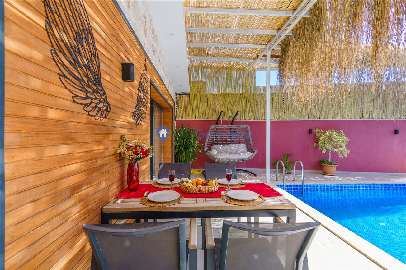 Kalkan Kördere mevkiinde bulunan tek yatak odalı 2 kişilik merkeze yakın muhafazakar balayı villası