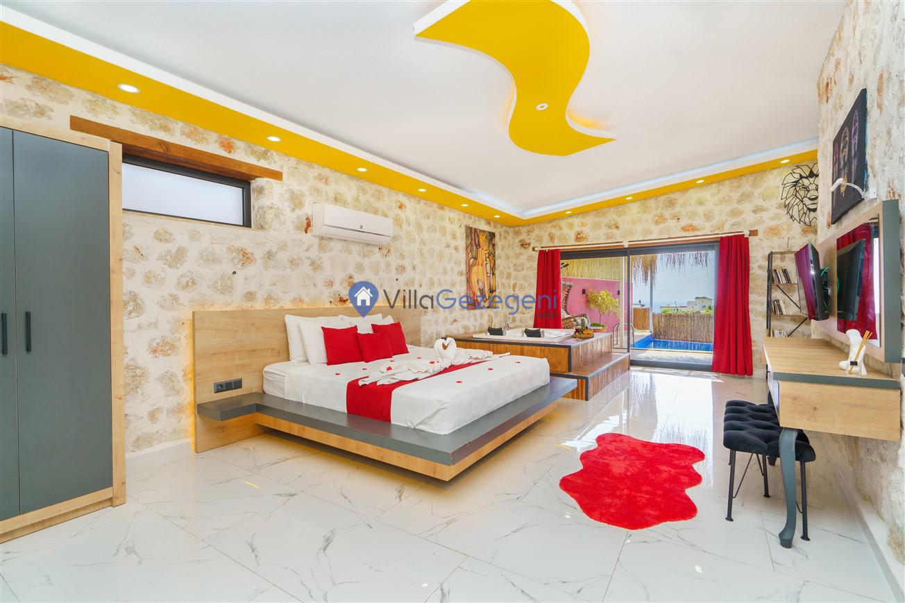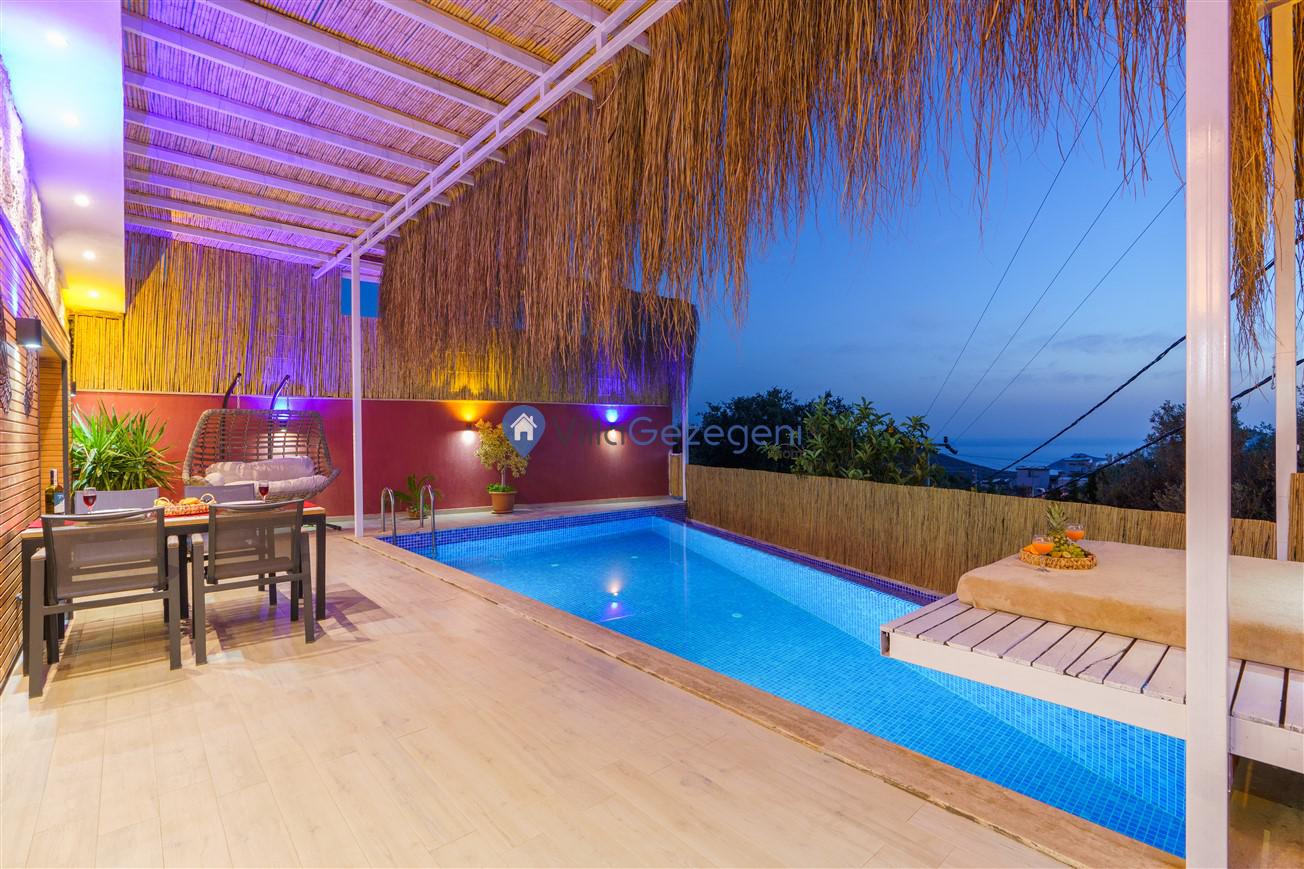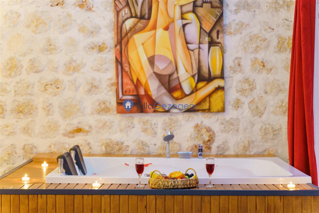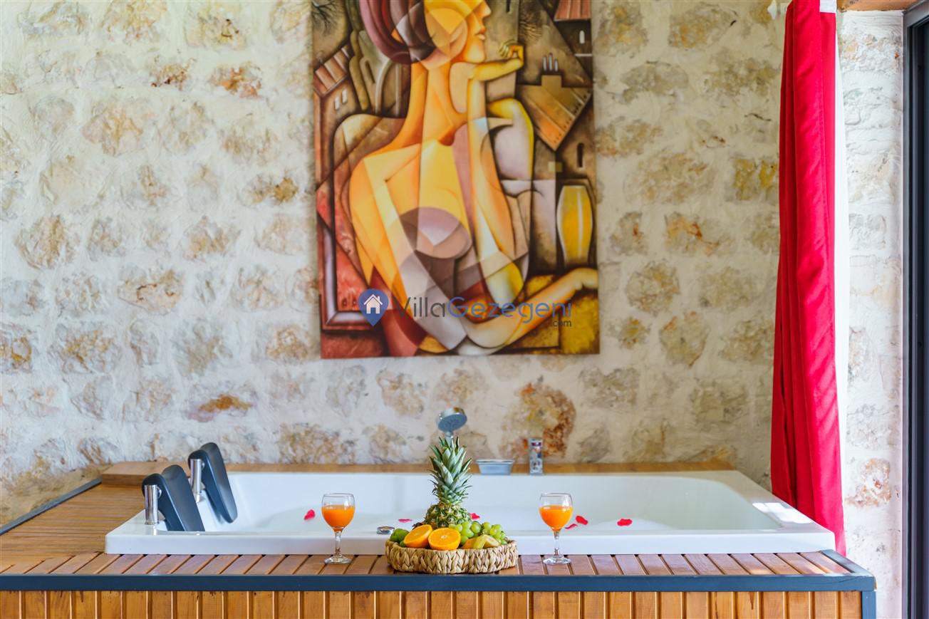Kalkan Kördere mevkiinde bulunan tek yatak odalı 2 kişilik merkeze yakın muhafazakar balayı villası