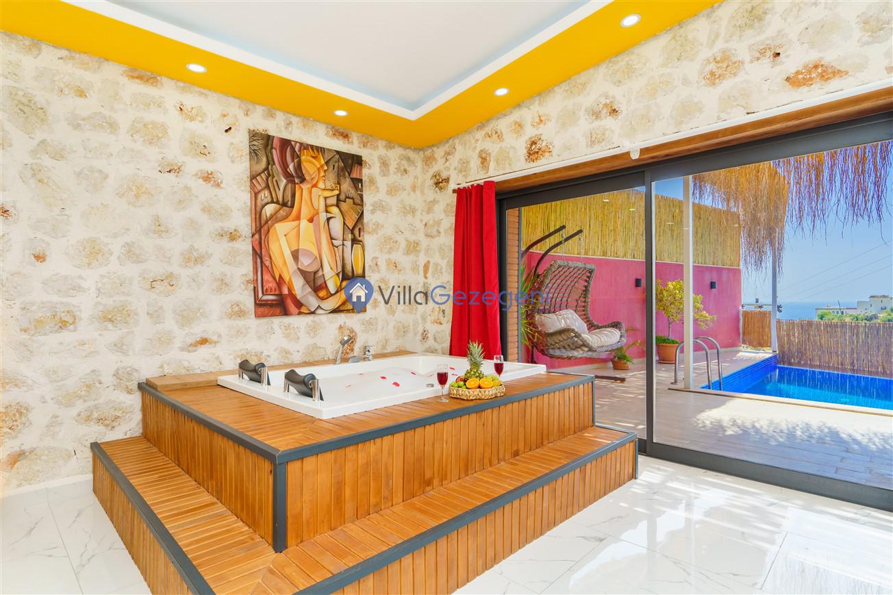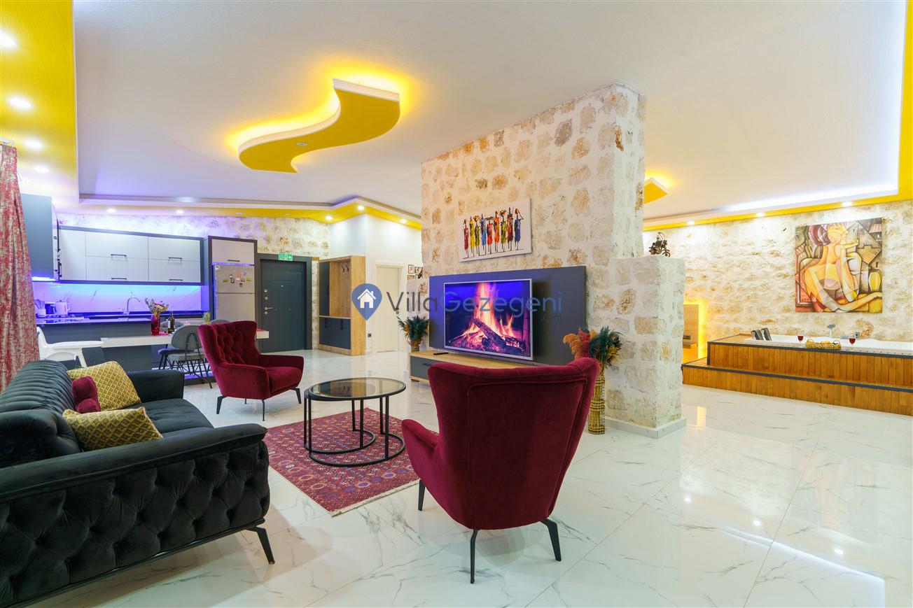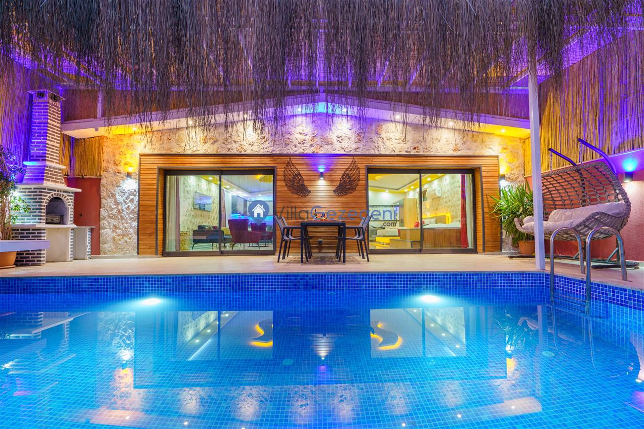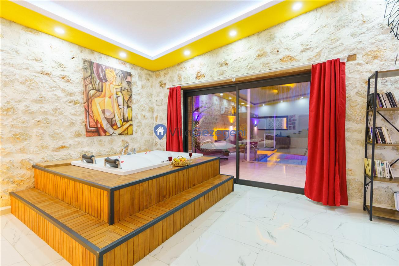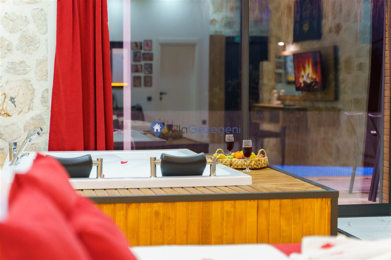 Kalkan Kördere mevkiinde bulunan tek yatak odalı 2 kişilik merkeze yakın muhafazakar balayı villası