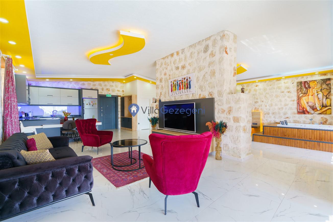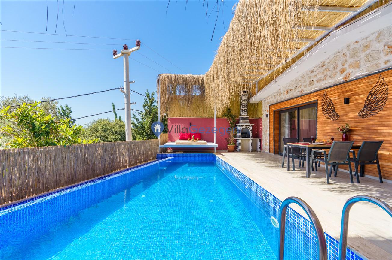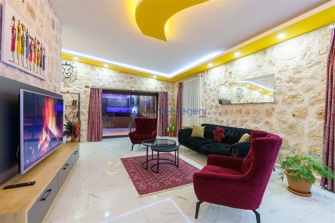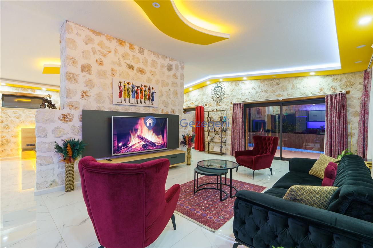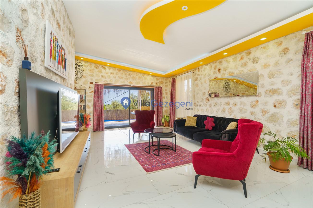 Kalkan Kördere bölgesinde bulunan 3 yatak odalı, 6 kişilik kiralık lüks villa