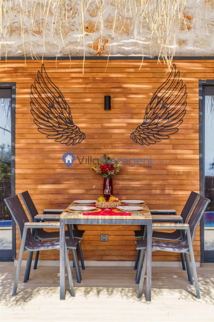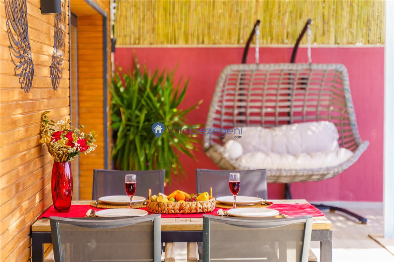 Yemek Masası ve bahçe mobilyaları kullanımınız için hazır bulunmaktadır sevdikleriniz ile beraber yemekler yiyip sohbetin dibine vurabilirsiniz. Villanın bahçesindeki salıncak ile keyifli vakitler geçirebilirsiniz.