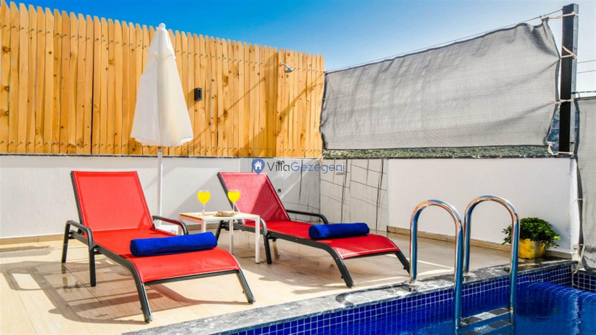Villamızın genel konsept ve özelliklerinden tekrar bahsedecek olursak; villamızın 1 adet müstakil özel havuzu bulunmaktadır. Ortalama bir bahçeye sahip olan villamız rahatlığı ön planda tutan 2 adet yatak odası, 3 yatak, 2 banyo, hareket alanı geniş bir mutfak ve 4 kişinin geniş aralıklarla rahatlıkla oturabileceği koltuklara sahip salonu bulunmaktadır.