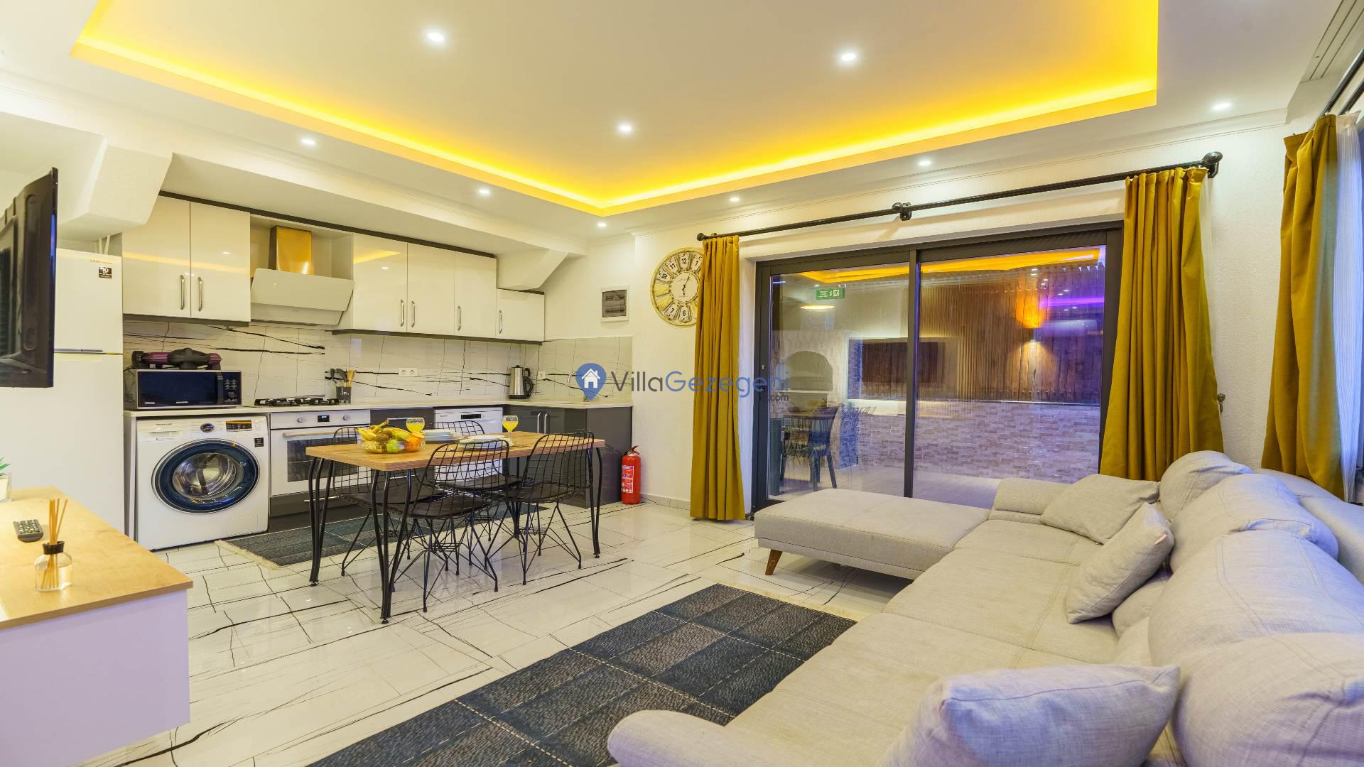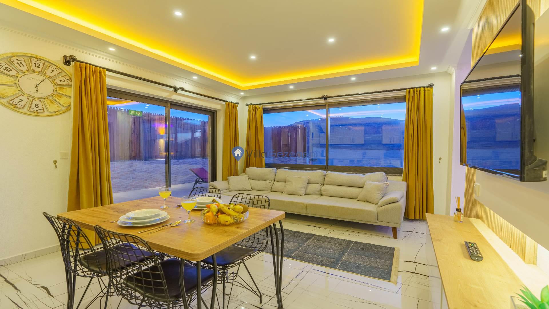 İçeriği estetik ve zarafetle bezenmiş olan Villa Gıbrıs, 2 yatak odası, konforlu 3 yatak ve 2 banyo ile minimalist ve fonksiyonel bir yaşam alanı sunuyor.