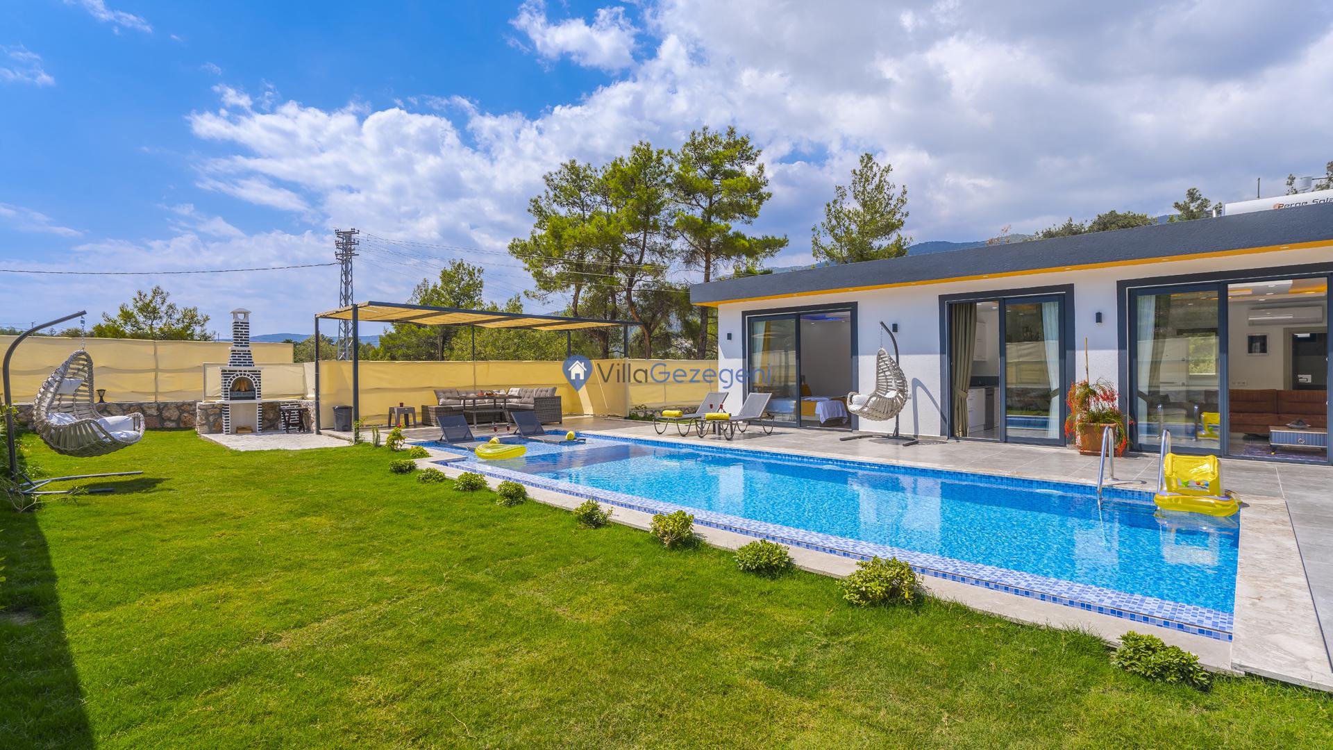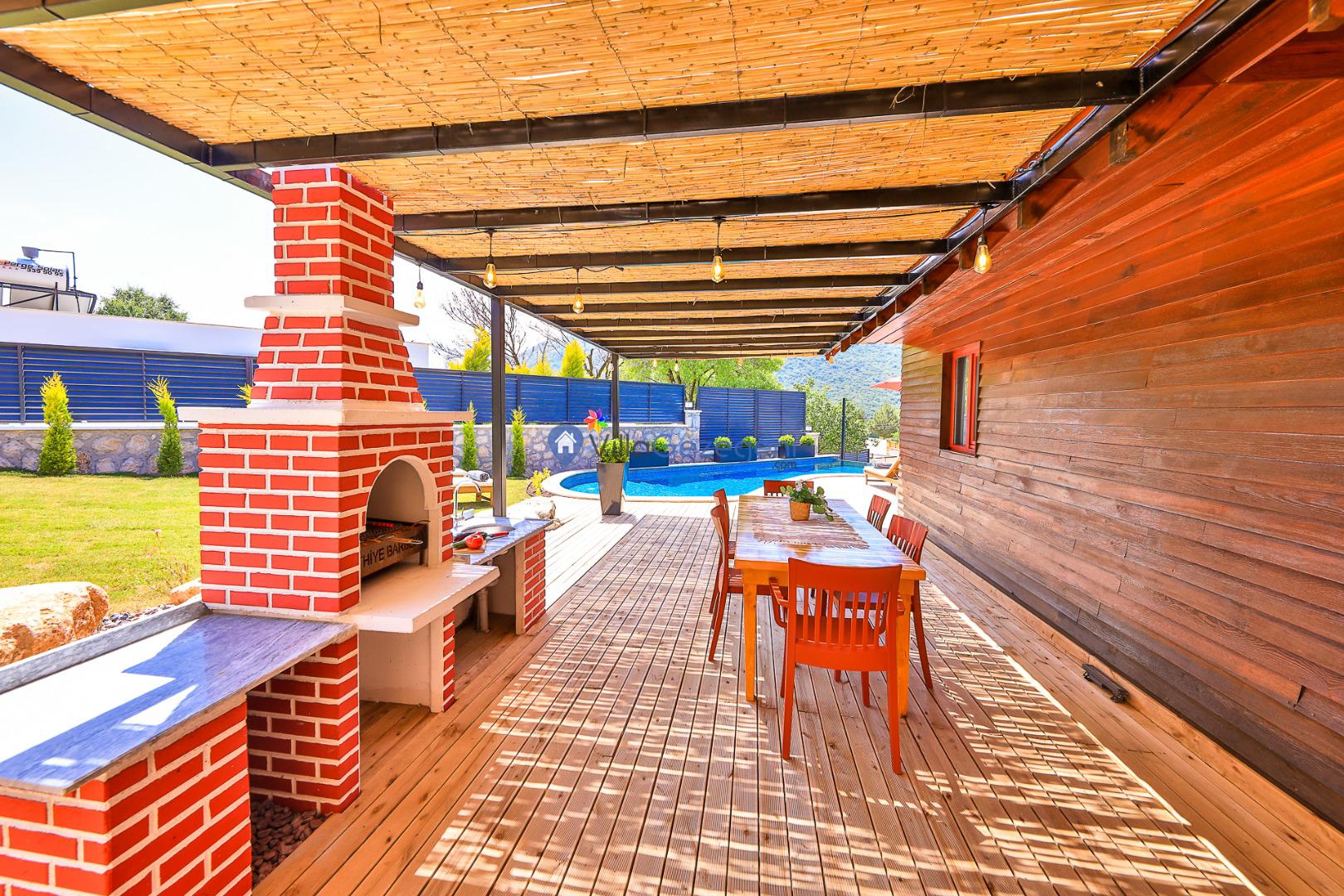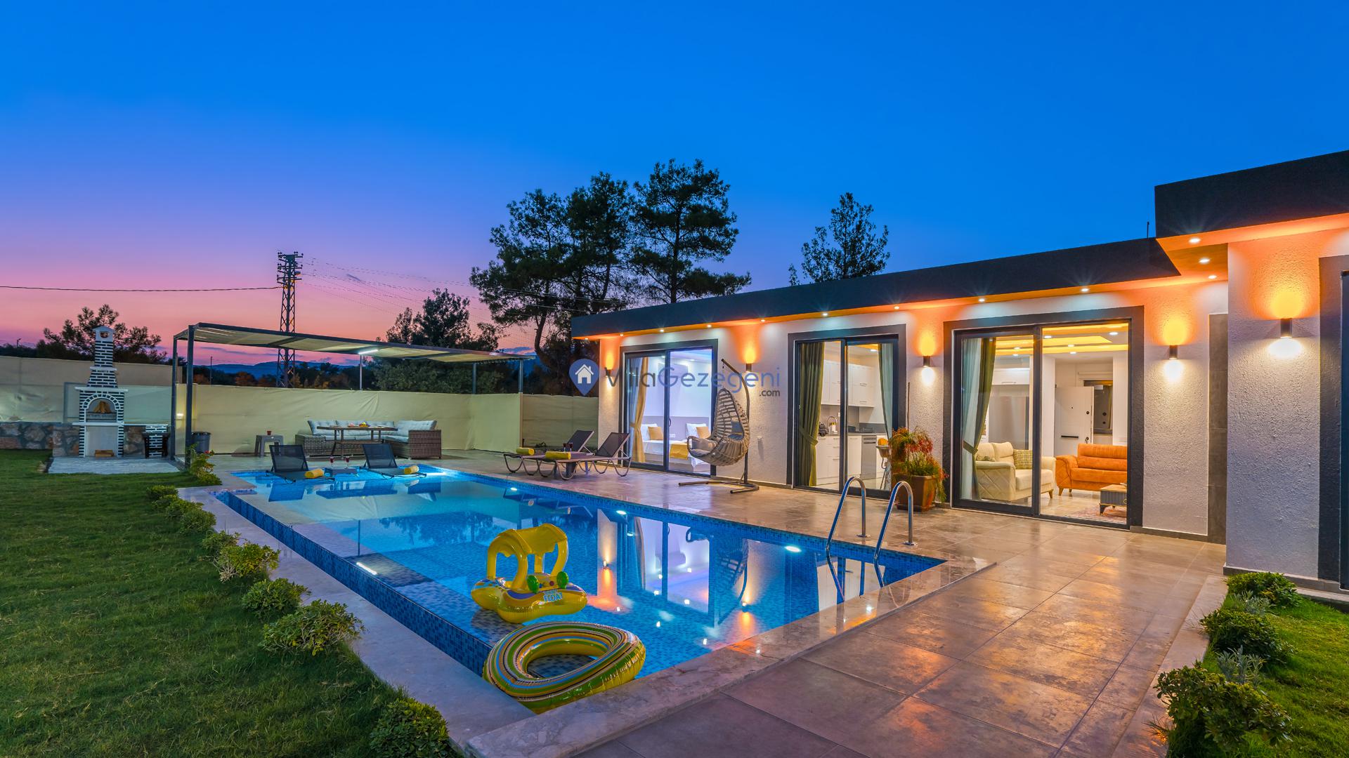 Ek olarak villamızın bahçe ve teras alanında tatilinize renk ve keyif katması için kullanımınıza sunulan çok sayıda alan ve eşya yer almaktadır. Bu alanları konaklamanız boyunca dilediğiniz gibi kullanabilir, tatilin keyfini en iyi şekilde yaşayabilirsiniz. Villamızın teras alanında kullanmanız üzere şezlong, şemsiye, oturma alanı, salıncak, yemek masası, hamak, oturma grubu ve barbekü yer almaktadır. Bu sayede villamızda güneşlenebilir, sevdiklerinizle baş başa yemek yiyebilir ve dilediğiniz gibi vakit geçirebilirsiniz. Villamız konaklamanız boyunca tüm ihtiyaçlarınız düşünelerek hazırlandığından dolayı villamızda kullandığınız elektrik, su ve internet kullanımlarınız için ekstra bir ücretlendirme oluşmamaktadır.