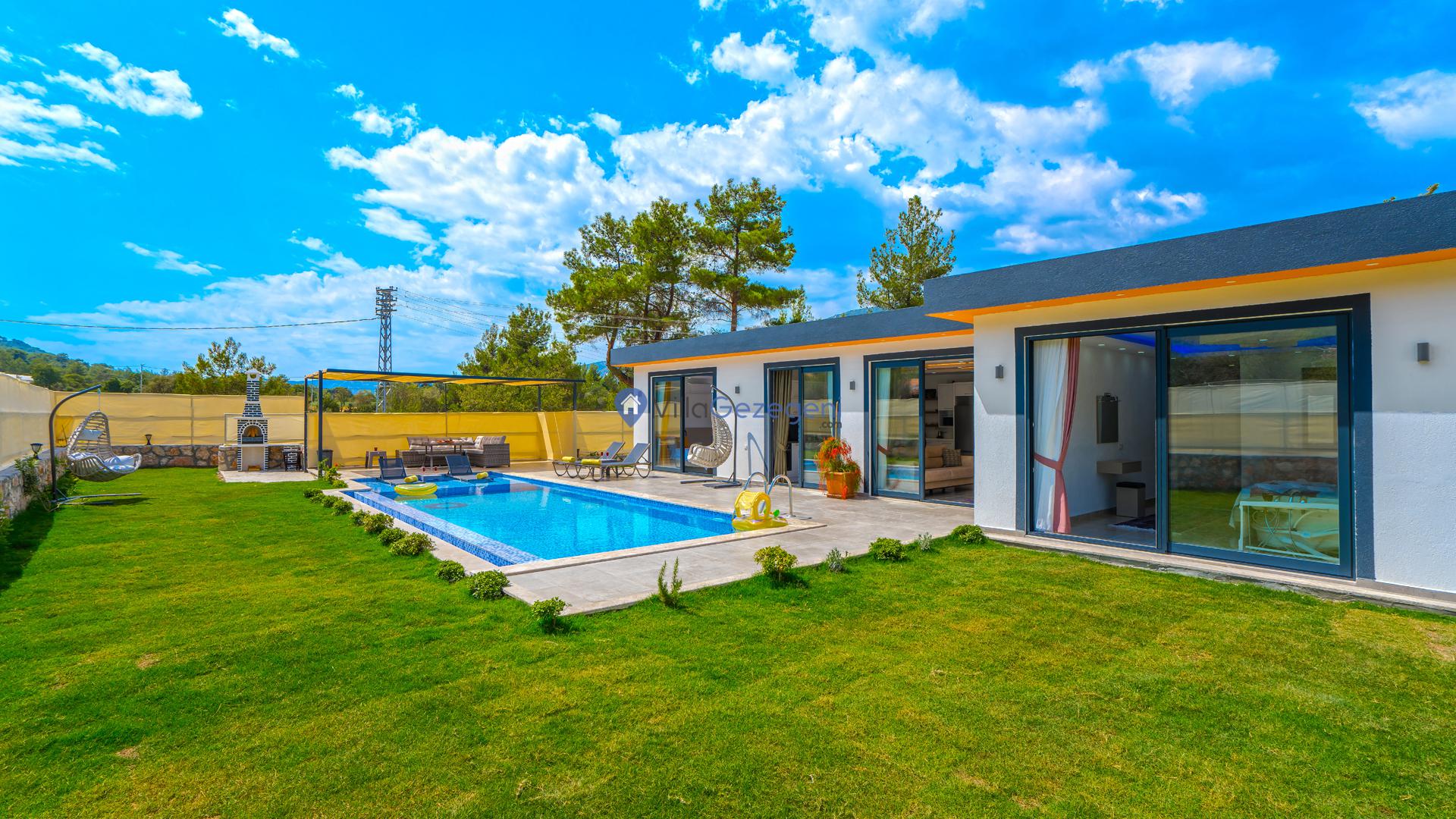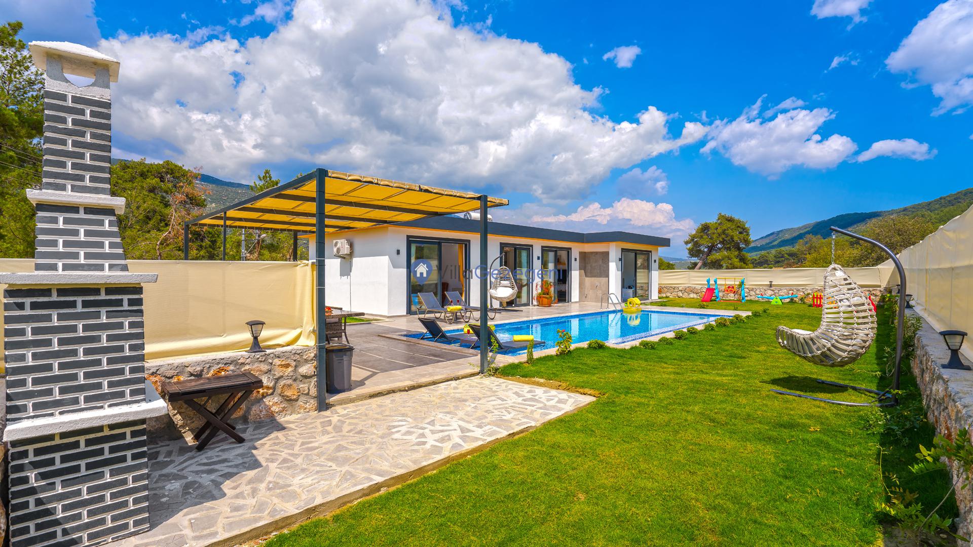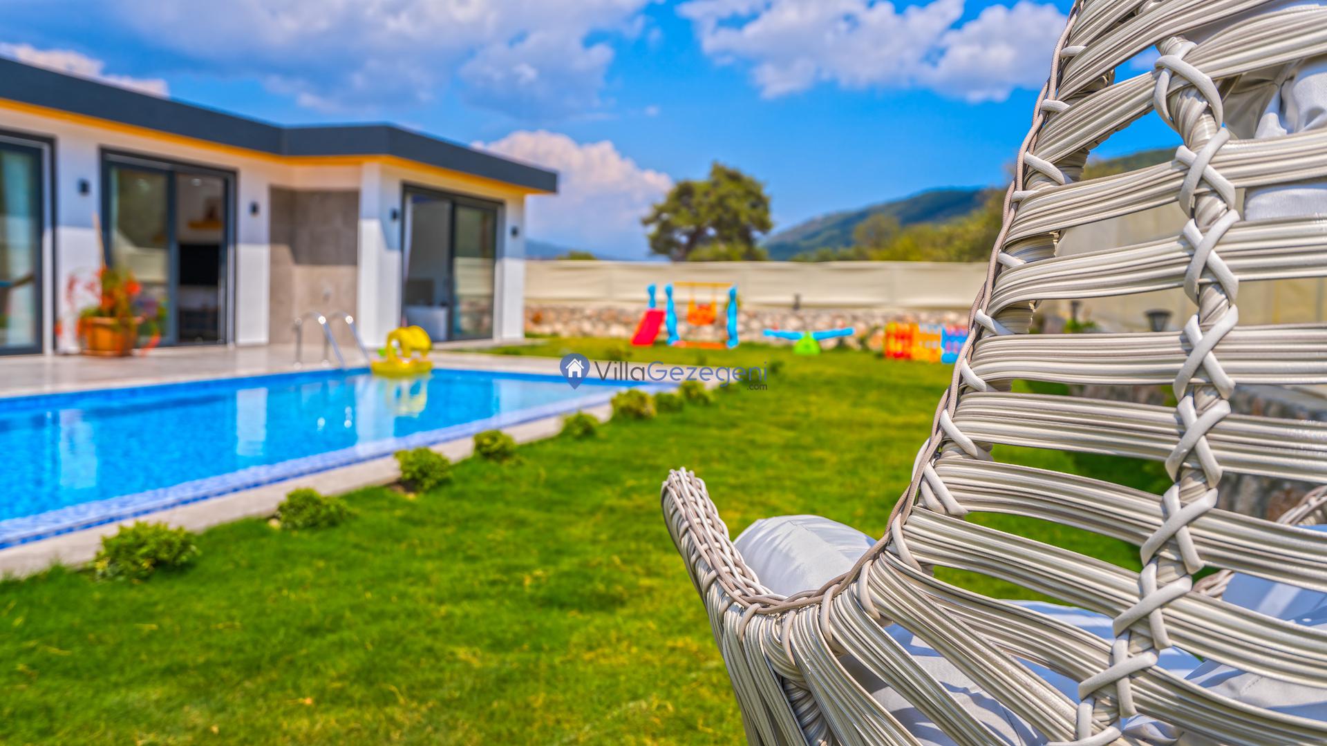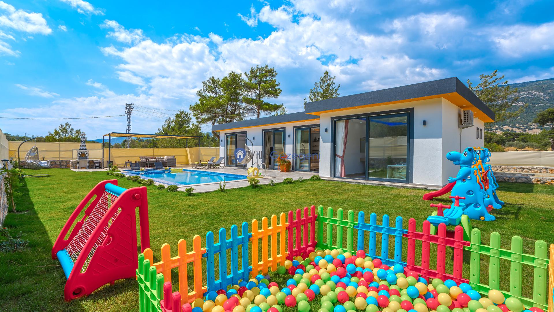 Ek olarak villamızın bahçe ve teras alanında tatilinize renk ve keyif katması için kullanımınıza sunulan çok sayıda alan ve eşya yer almaktadır. Bu alanları konaklamanız boyunca dilediğiniz gibi kullanabilir, tatilin keyfini en iyi şekilde yaşayabilirsiniz. Villamızın teras alanında kullanmanız üzere şezlong, şemsiye, oturma alanı, salıncak, yemek masası, hamak, oturma grubu ve barbekü yer almaktadır. Bu sayede villamızda güneşlenebilir, sevdiklerinizle baş başa yemek yiyebilir ve dilediğiniz gibi vakit geçirebilirsiniz. Villamız konaklamanız boyunca tüm ihtiyaçlarınız düşünelerek hazırlandığından dolayı villamızda kullandığınız elektrik, su ve internet kullanımlarınız için ekstra bir ücretlendirme oluşmamaktadır.