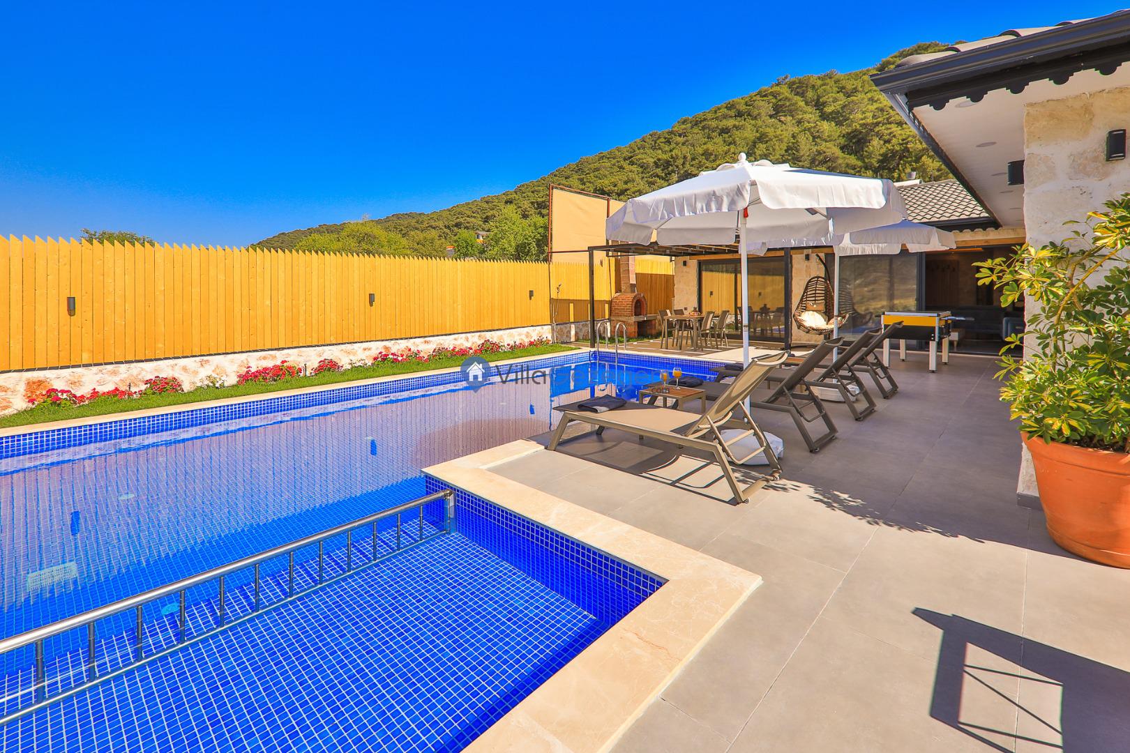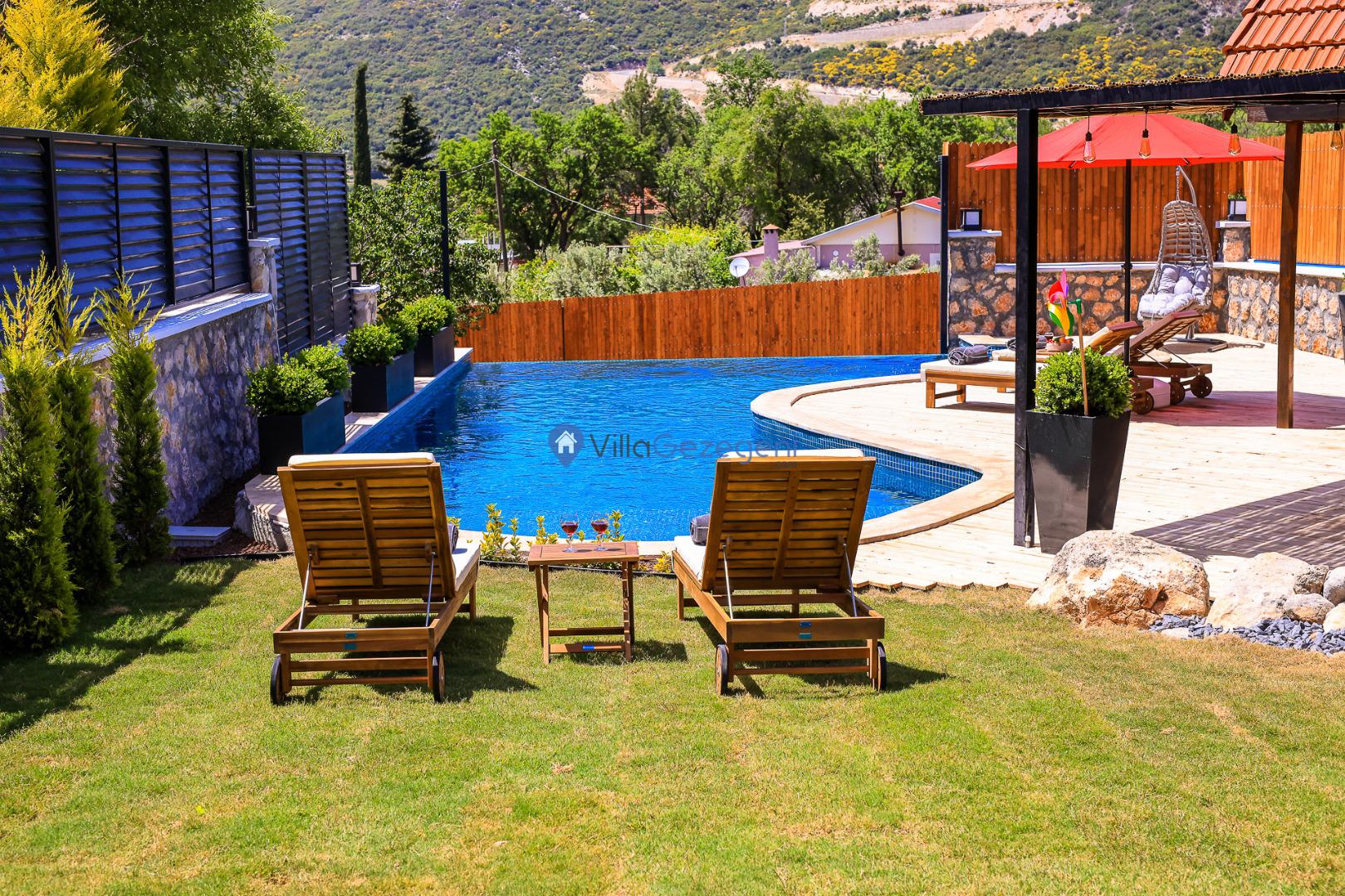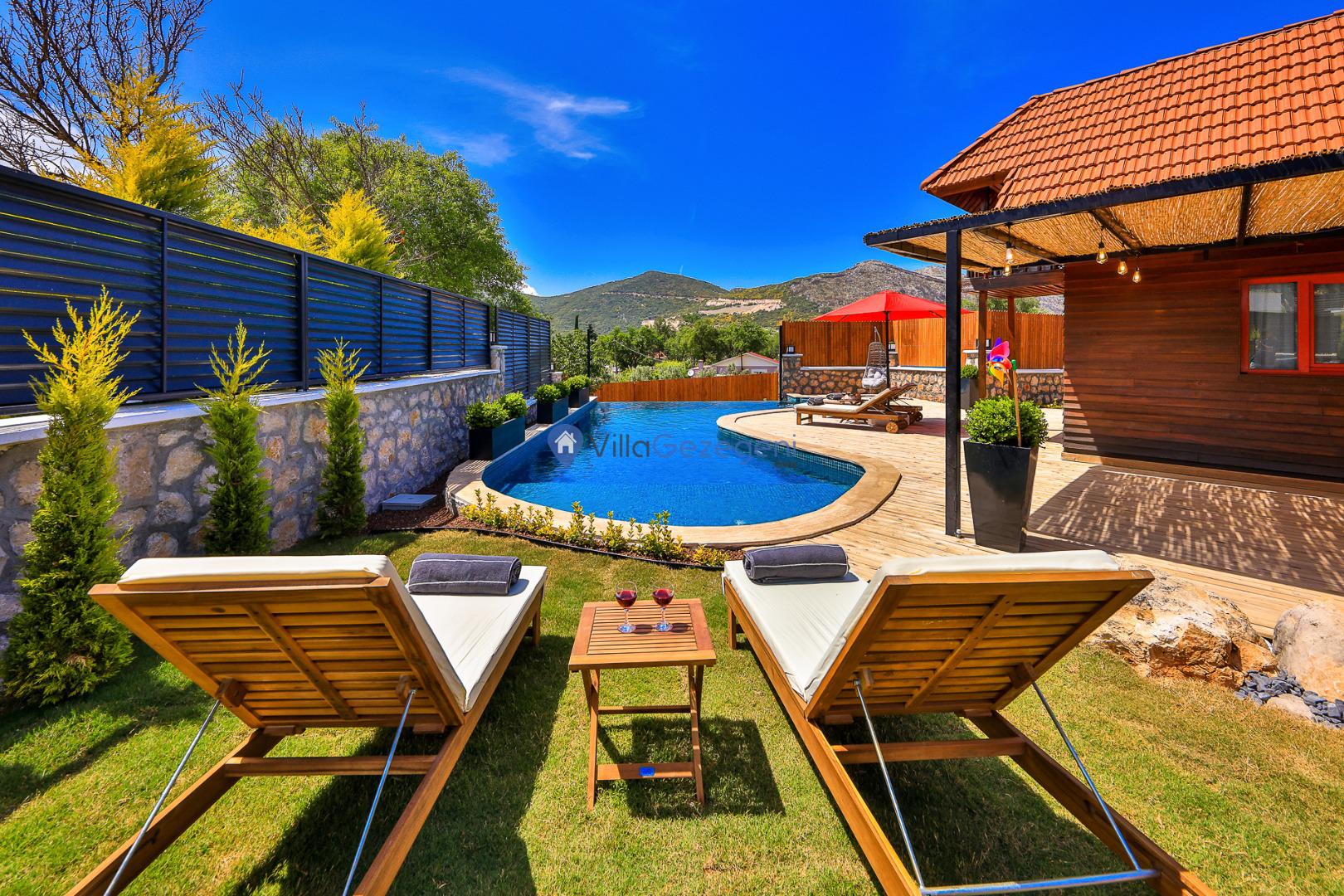 VİLLA GÖKALAN, Kalkan Sarıbelen bölgesinde yer alan, 4 kişi kapasiteli muhafazakar balayı villalarımız arasında yer almaktadır. Villamız 4 kişi kapasitesi ile genellikle balayı çiftleri ve muhafazakar aileleler tarafından tercih edilmektedir. Villamızın muhafazakar özelliklere sahip olması, havuz, teras ve bahçe alanının dışardan görünmesini engellemektedir. Bu sayede tatiliniz esnasında villanın havuz ve bahçe alanı dışarıdan görünmemektedir. Bu da ailenizle rahat bir tatil yapmanıza olanak sağlamaktadır. Villamız genel özellik ve konsept bakımından balayı misafirlerimizin ve muhafazakar ailelerimizin tatilini en iyi şekilde geçirmesi için özel olarak dizayn edilmiştir.
