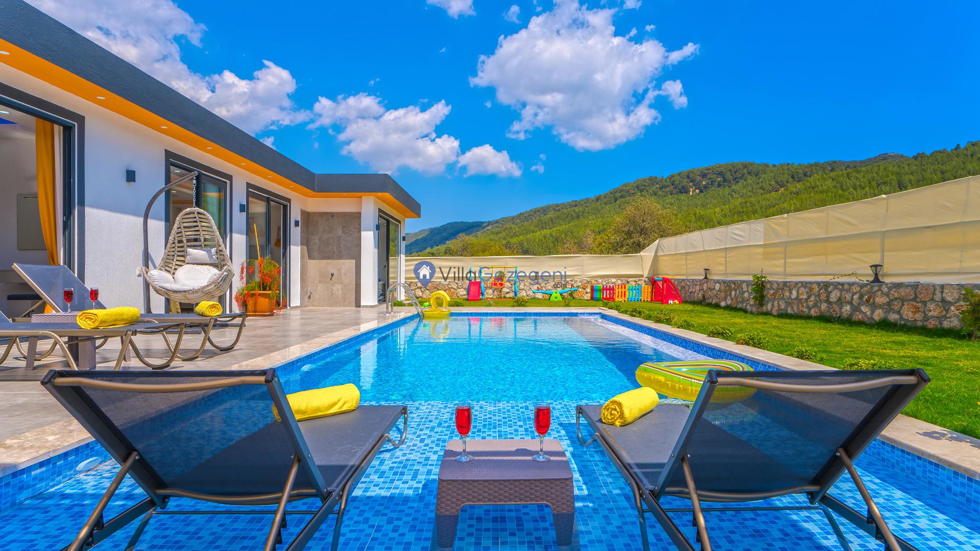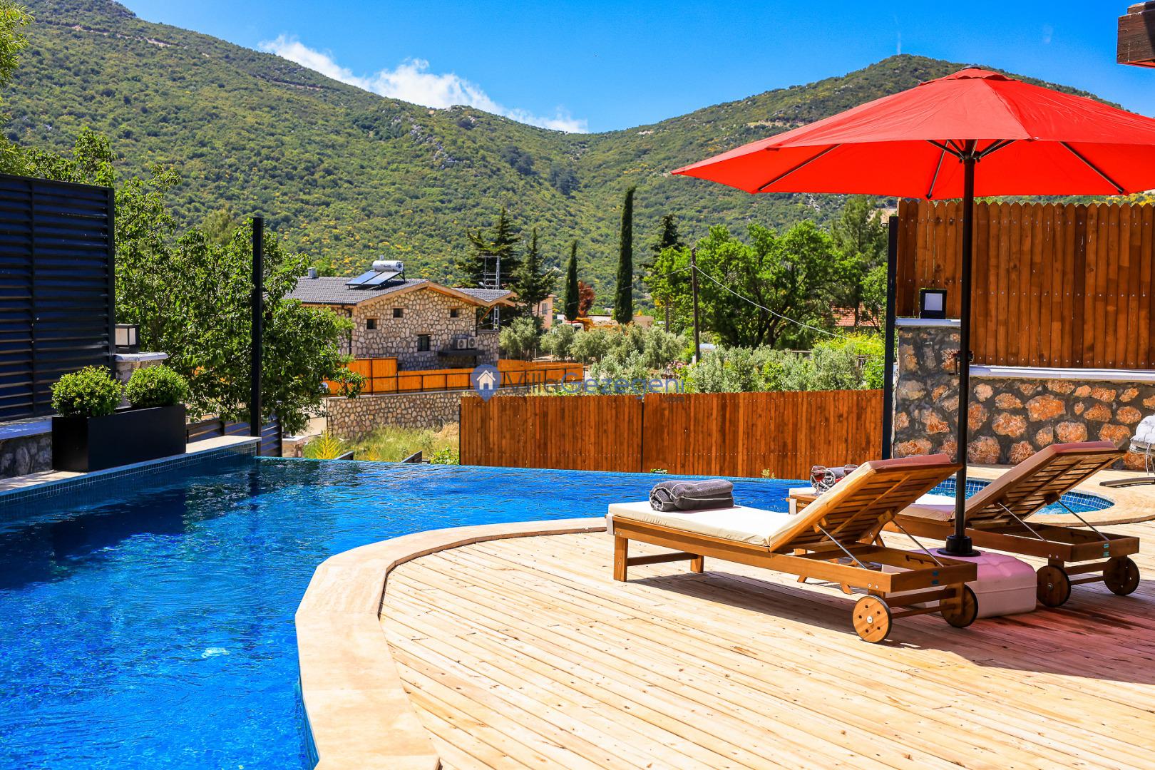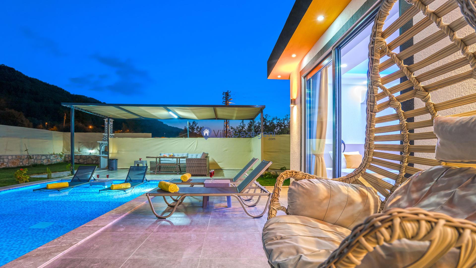 VİLLA GÖKALAN, Kalkan Sarıbelen bölgesinde yer alan, 4 kişi kapasiteli muhafazakar balayı villalarımız arasında yer almaktadır. Villamız 4 kişi kapasitesi ile genellikle balayı çiftleri ve muhafazakar aileleler tarafından tercih edilmektedir. Villamızın muhafazakar özelliklere sahip olması, havuz, teras ve bahçe alanının dışardan görünmesini engellemektedir. Bu sayede tatiliniz esnasında villanın havuz ve bahçe alanı dışarıdan görünmemektedir. Bu da ailenizle rahat bir tatil yapmanıza olanak sağlamaktadır. Villamız genel özellik ve konsept bakımından balayı misafirlerimizin ve muhafazakar ailelerimizin tatilini en iyi şekilde geçirmesi için özel olarak dizayn edilmiştir.