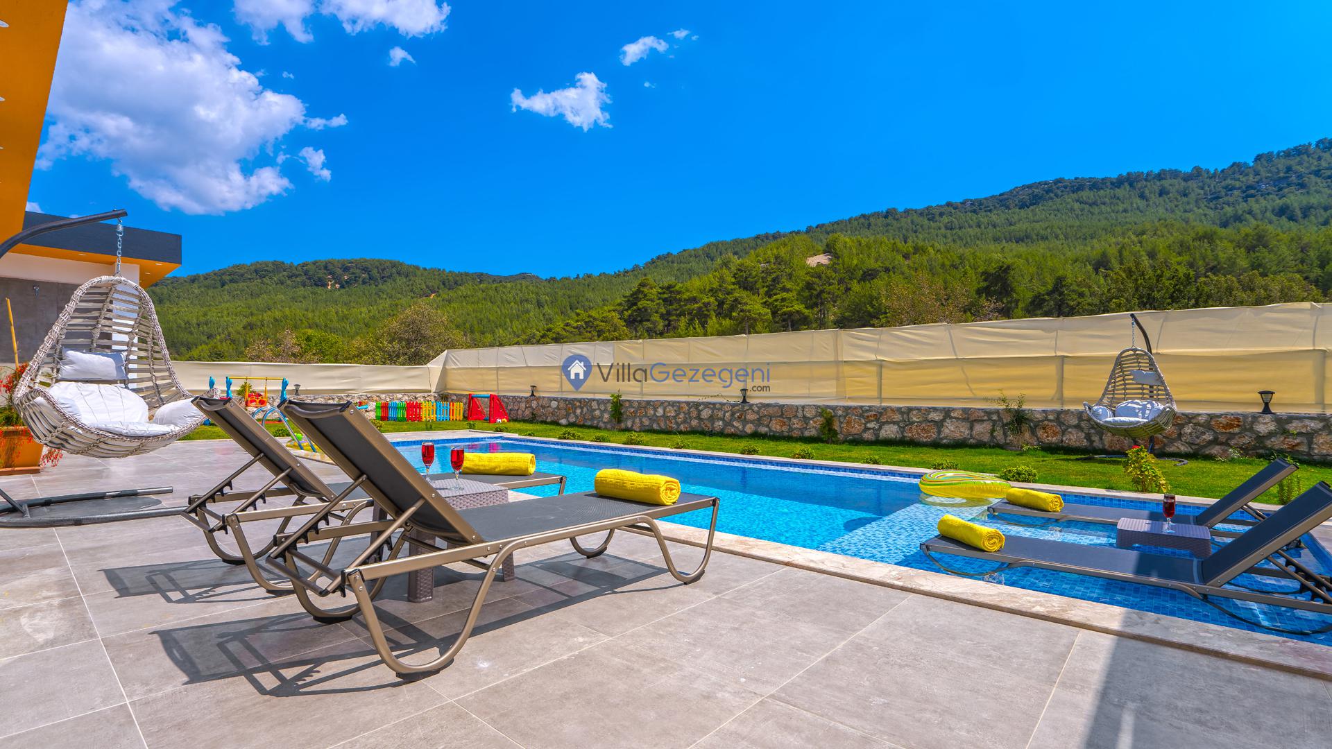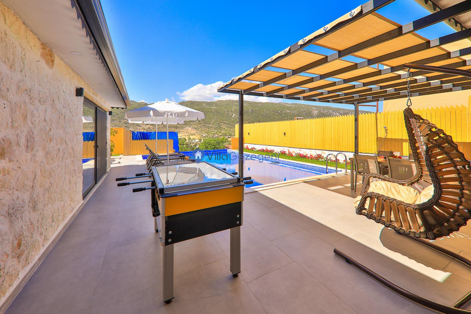 VİLLA GÖKALAN' de kaldığınız süre boyunca eşiniz ve arkadaşlarınızla beraber keyifli vakit geçirmeniz için özel olarak dizayn edilmiştir. Villamızın terasında şezlong, güneş şemsiyesi, oturma grubu, hamak, yemek masası ve barbekü bulunmaktadır. Bu sayede konaklamanız esnasında hem siz hem de sevdikleriniz birçok şey yapabilir, villanızda keyifli vakit geçirebilirsiniz.