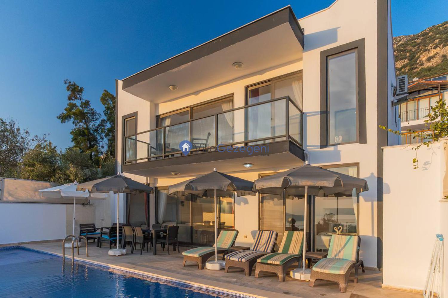 Kaş/Kalkan/Kördere Bölgesinde yer alan 3 yatak odalı 6 kişi kapasiteli deniz manzaralı tatil villasıdır.