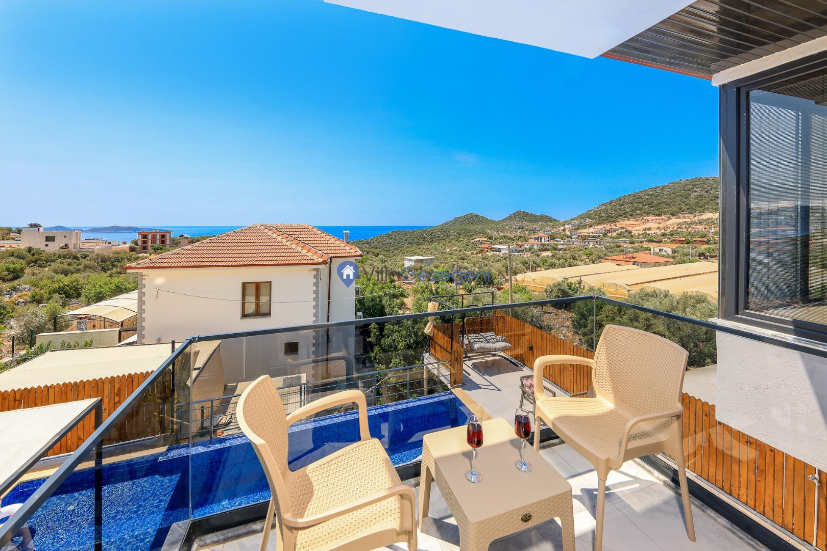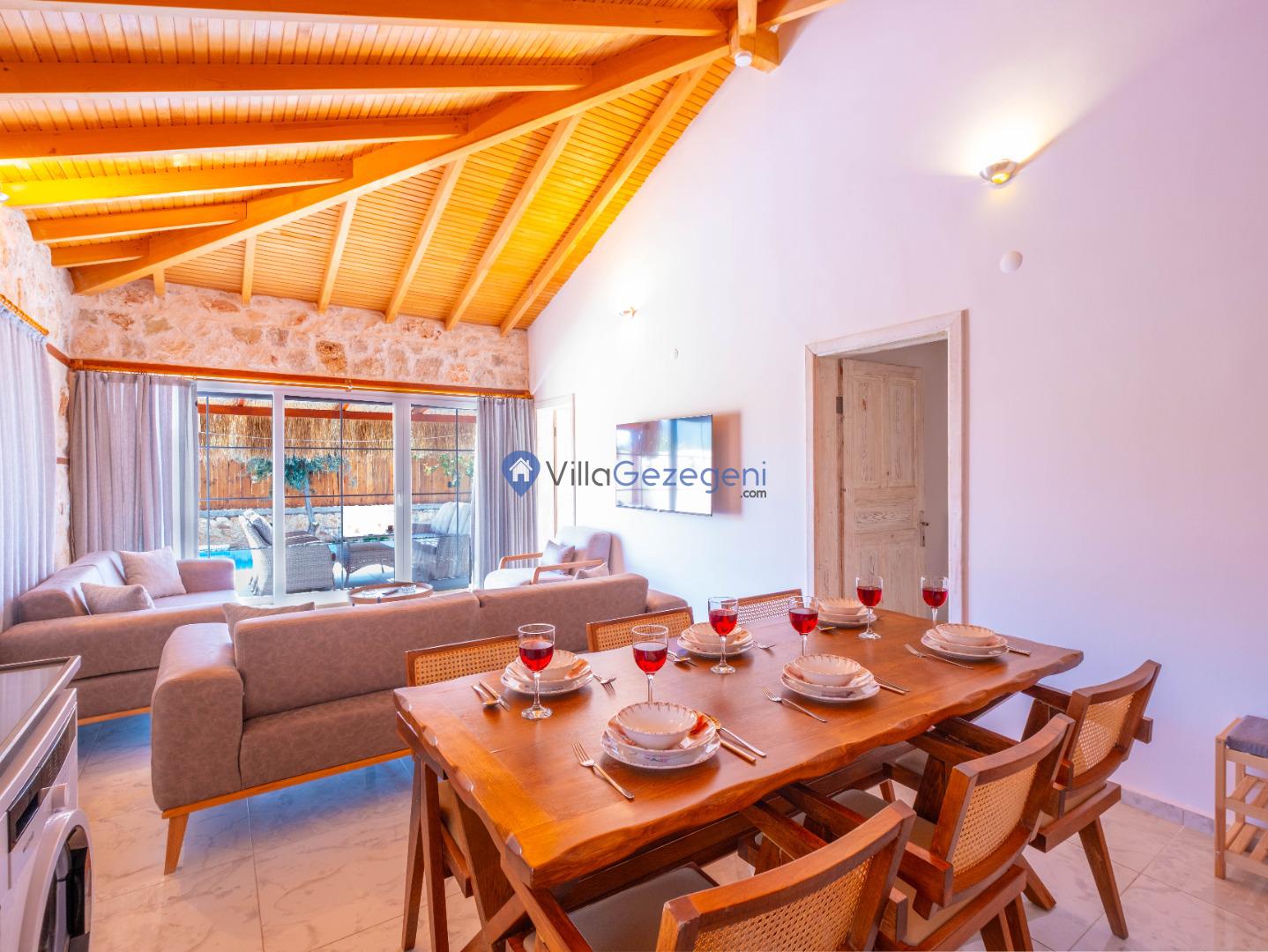Kaş Bayındır Bölgesinde yer alan 3 yatak odalı 6 kişilik deniz manzaralı kiralık villa