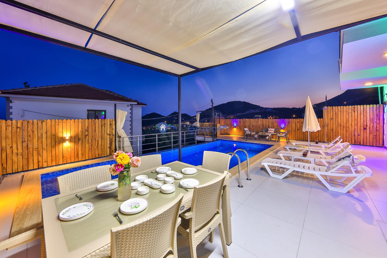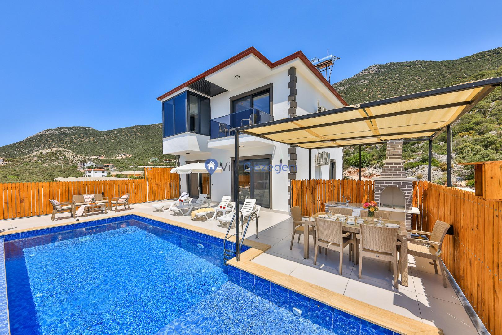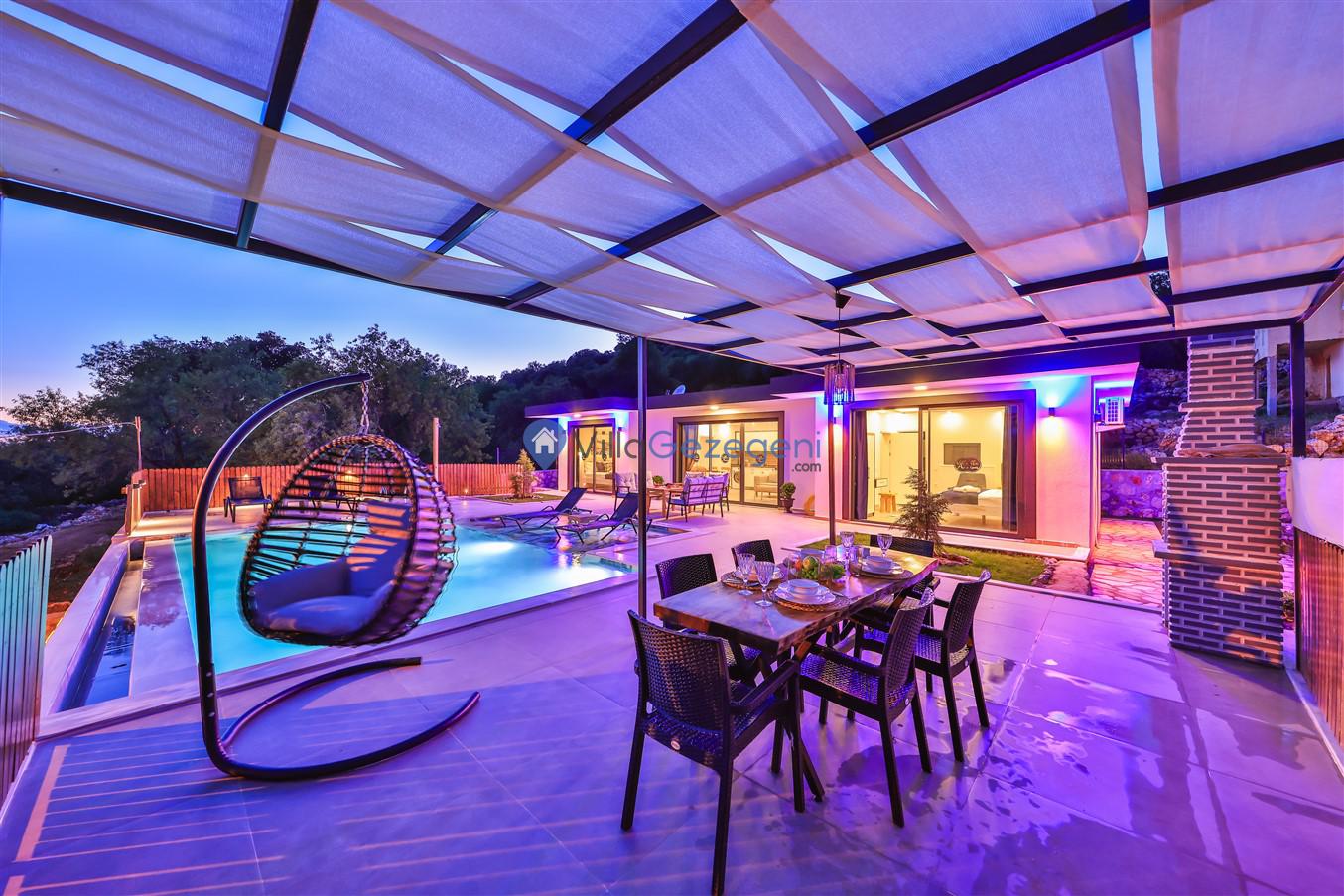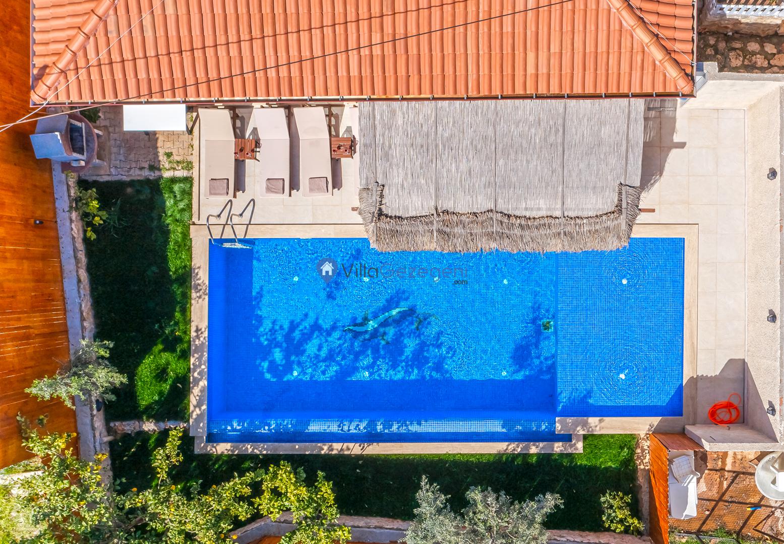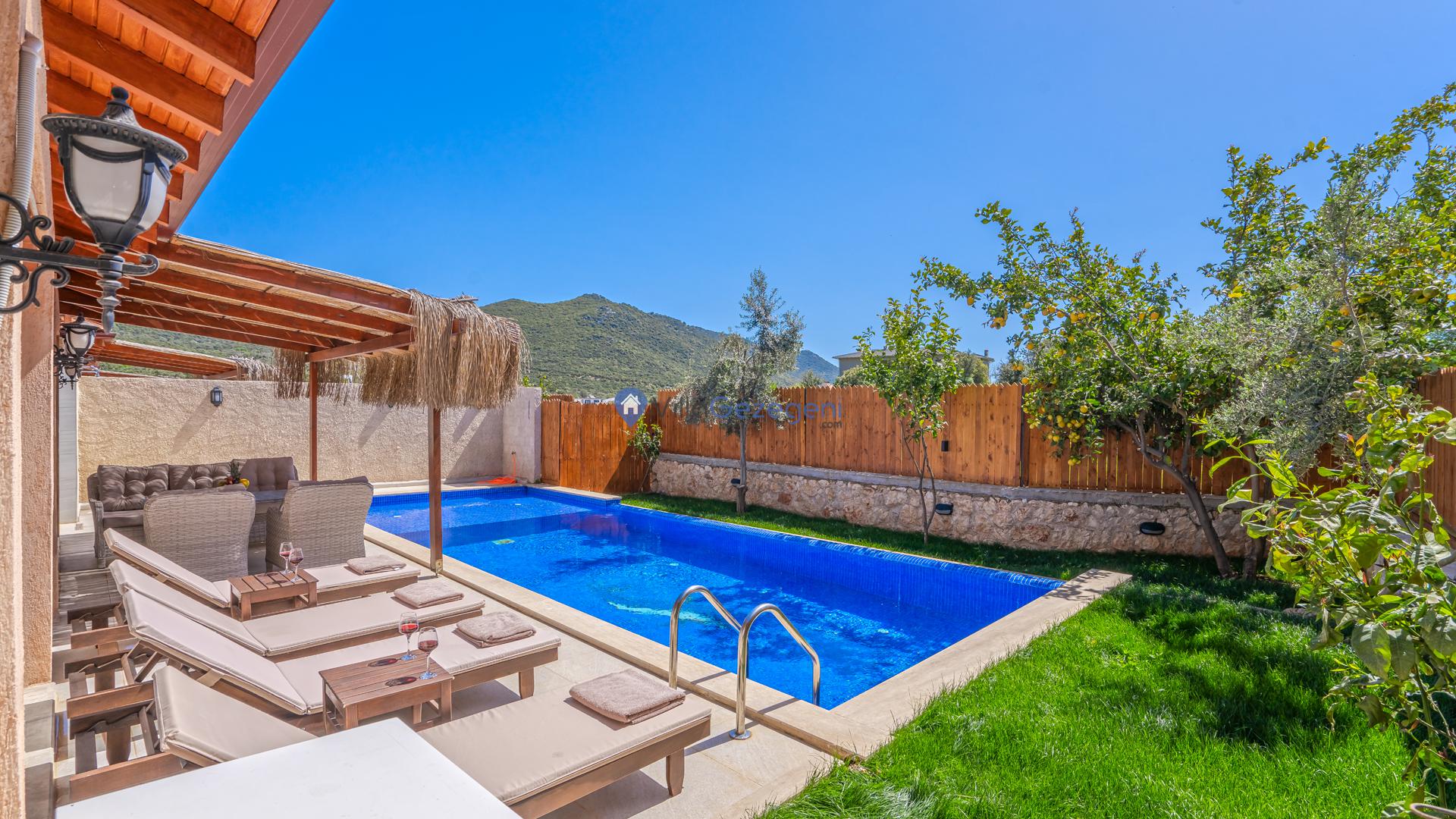 Kaş/Bayındır Bölgesinde yer alan 2 yatak odalı 4 kişi kapasiteli, doğa içerisinde havuzu korunaklı tatil villasıdır.