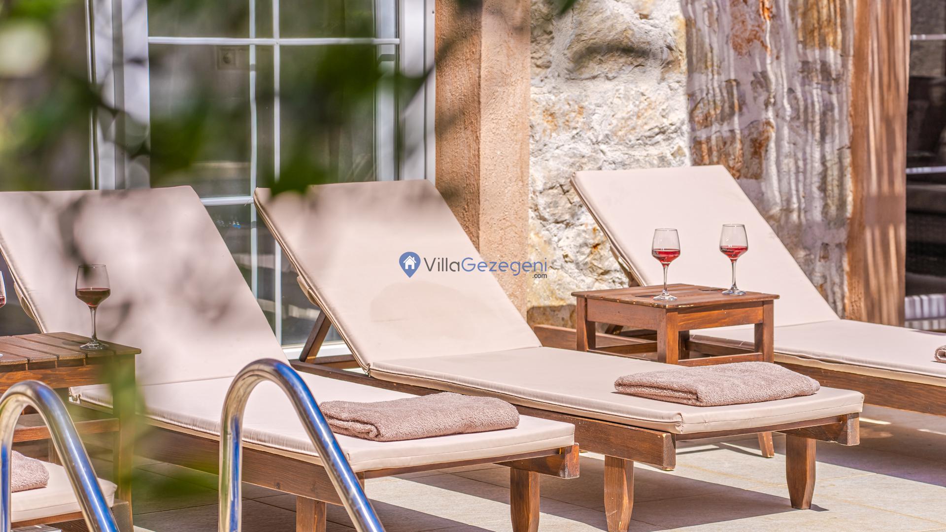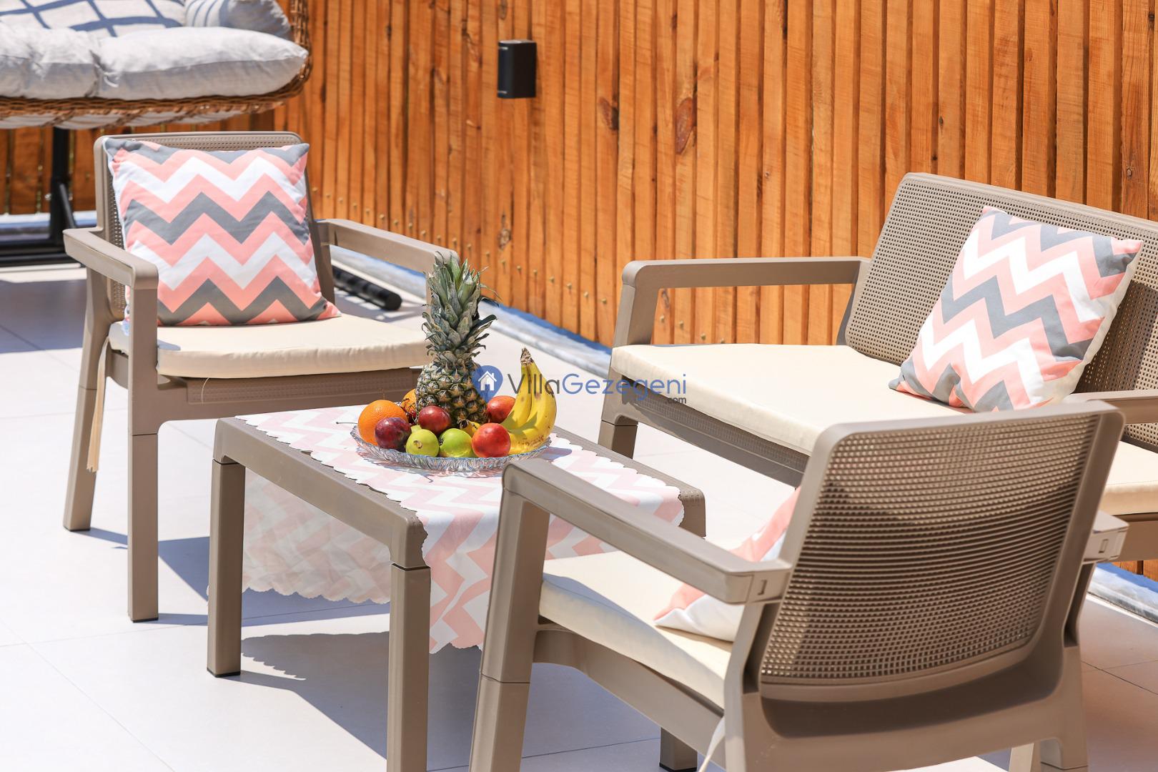 Villamızın bahçe ve teras alanında tatilinize ayrı bir hava katması için kullanımınıza sunulan çok sayıda alan ve eşya bulunmaktadır. Bu alanları konaklamanız boyunca dilediğiniz gibi kullanabilir, tatilin keyfini en iyi şekilde yaşayabilirsiniz. Villamızın bahçe ve teras alanında kullanmanız için oturma grubu, şezlong, şemsiye, salıncak, jakuzi ve barbekü yer almaktadır. Bu sayede villamızın teras alanında güneşlenebilir,aileniz ve arkadaşlarınızla keyifli yemekler yiyebilir ve dilediğiniz gibi vakit geçirebilirsiniz.