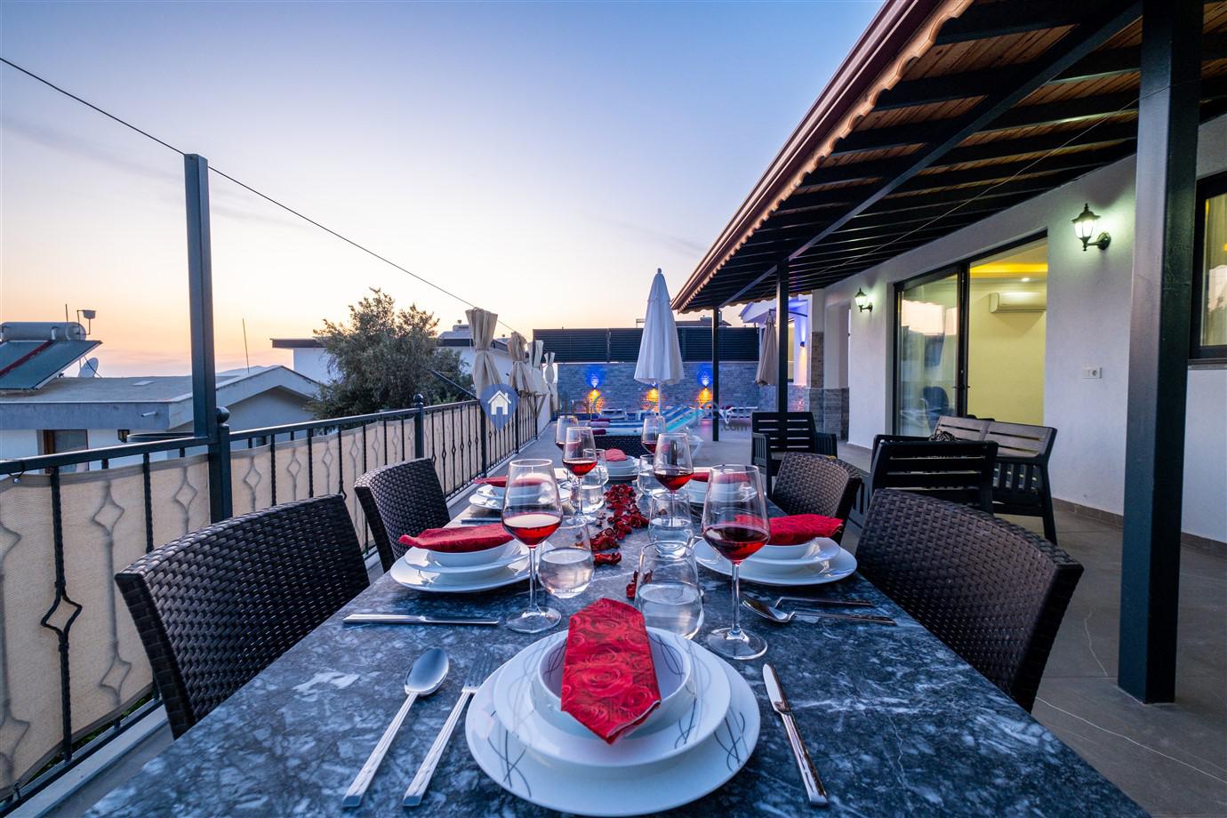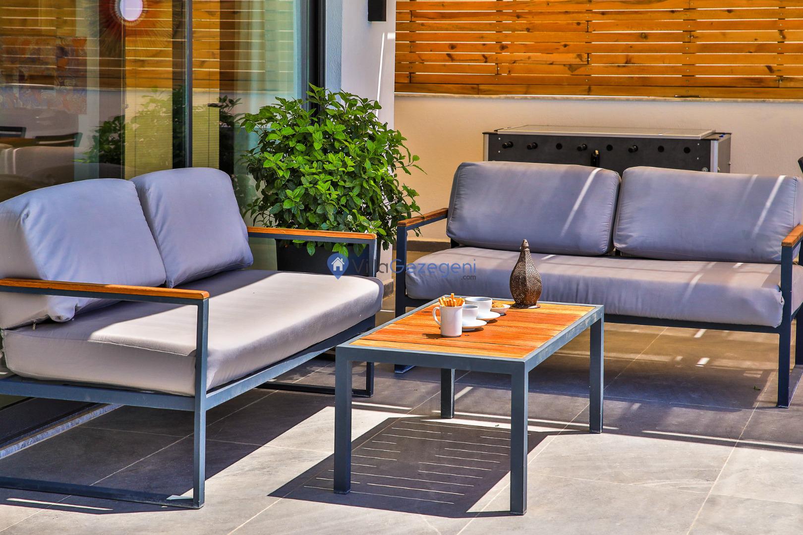 Yemek Masası ve bahçe mobilyaları kullanımınız için hazır bulunmaktadır sevdikleriniz ile beraber yemekler yiyip sohbetin dibine vurabilirsiniz. Villanın bahçesindeki salıncak ile keyifli vakitler geçirebilirsiniz.