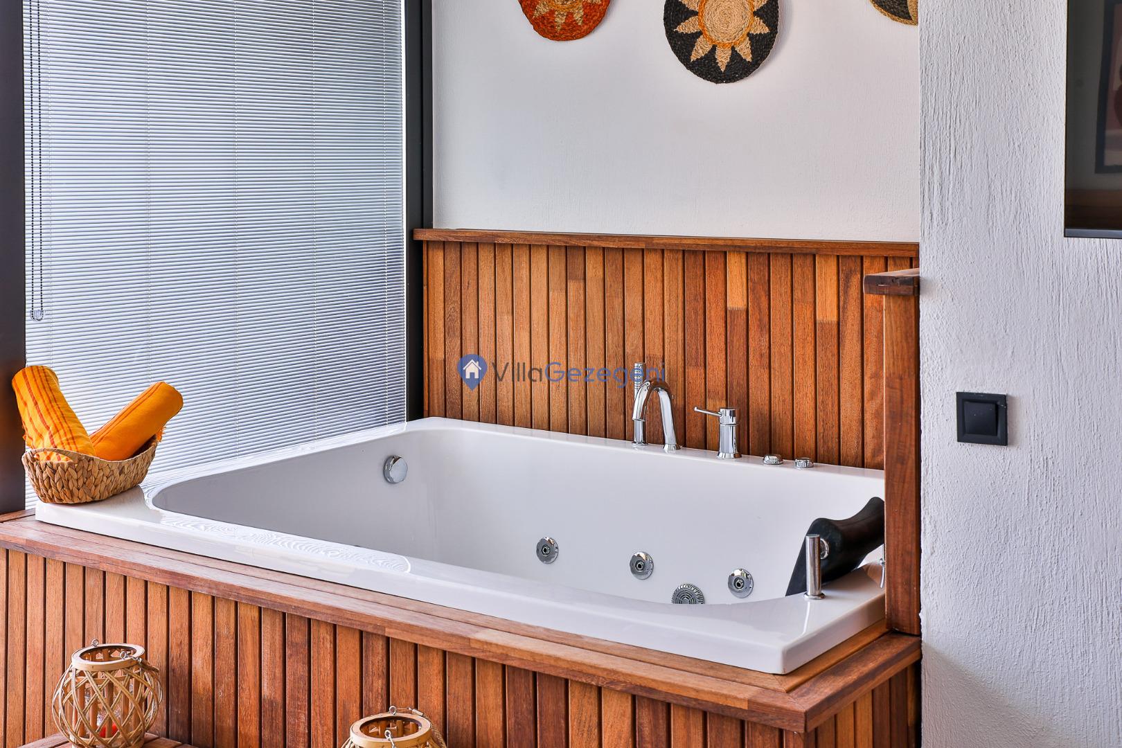 Villa Gülsüm, 6 kişilik konaklama kapasitesine sahiptir. 3 yatak odası,4 yatak ve 3 banyosuyla, misafirlerine geniş ve konforlu bir yaşam alanı sunar. Modern ve şık bir dekorasyonla donatılmış olan Villa Gülsüm, tatiliniz boyunca evinizin rahatlığını aratmayacak.