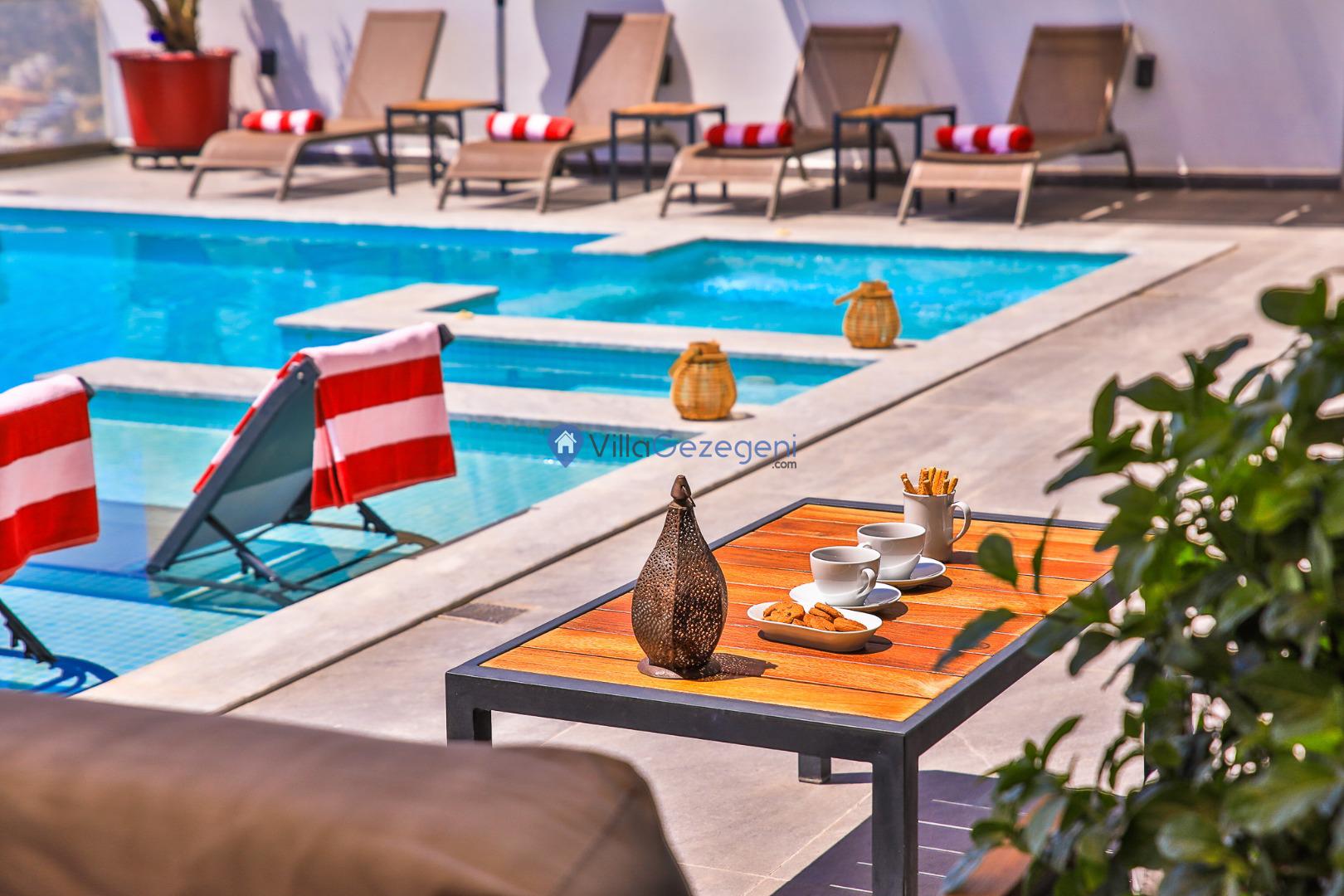 Villamızın genel konsept ve özelliklerinden tekrar bahsedecek olursak; villamızın 1 adet müstakil özel havuzu bulunmaktadır. Ortalama bir bahçeye sahip olan villamız rahatlığı ön planda tutan 3 adet yatak odası,4 yatak,3 banyo, hareket alanı geniş bir mutfak ve 6 kişinin geniş aralıklarla rahatlıkla oturabileceği koltuklara sahip salonu bulunmaktadır.
